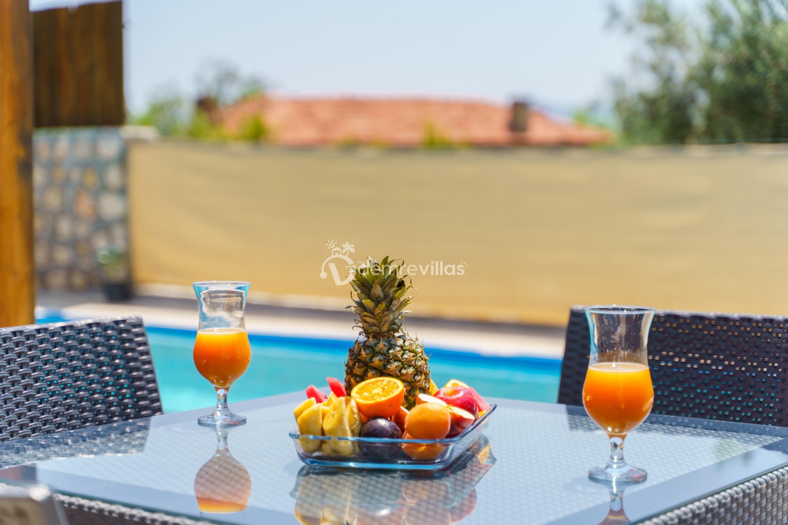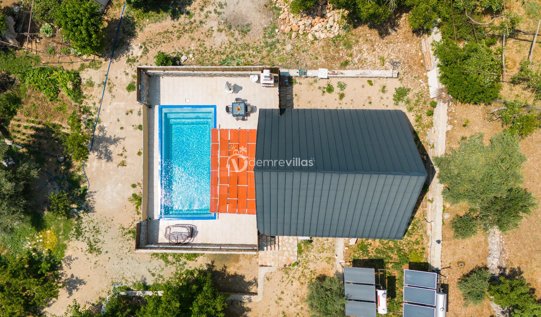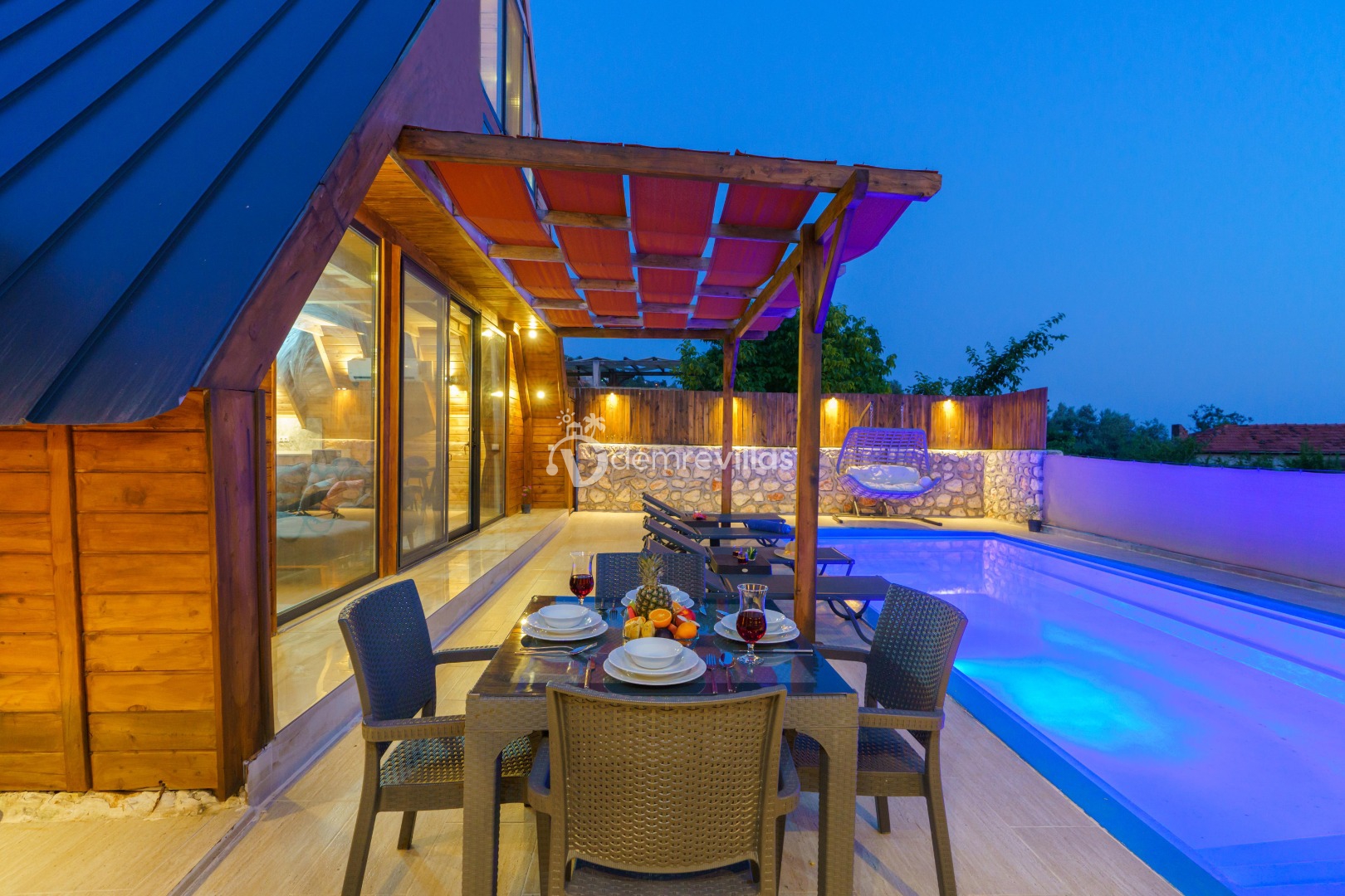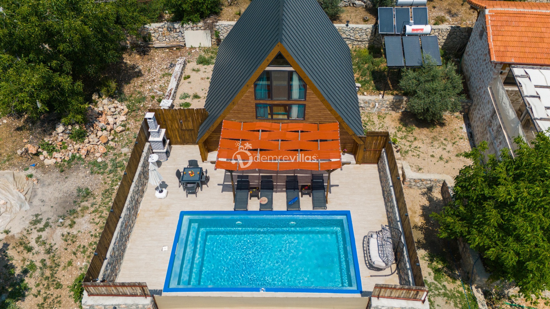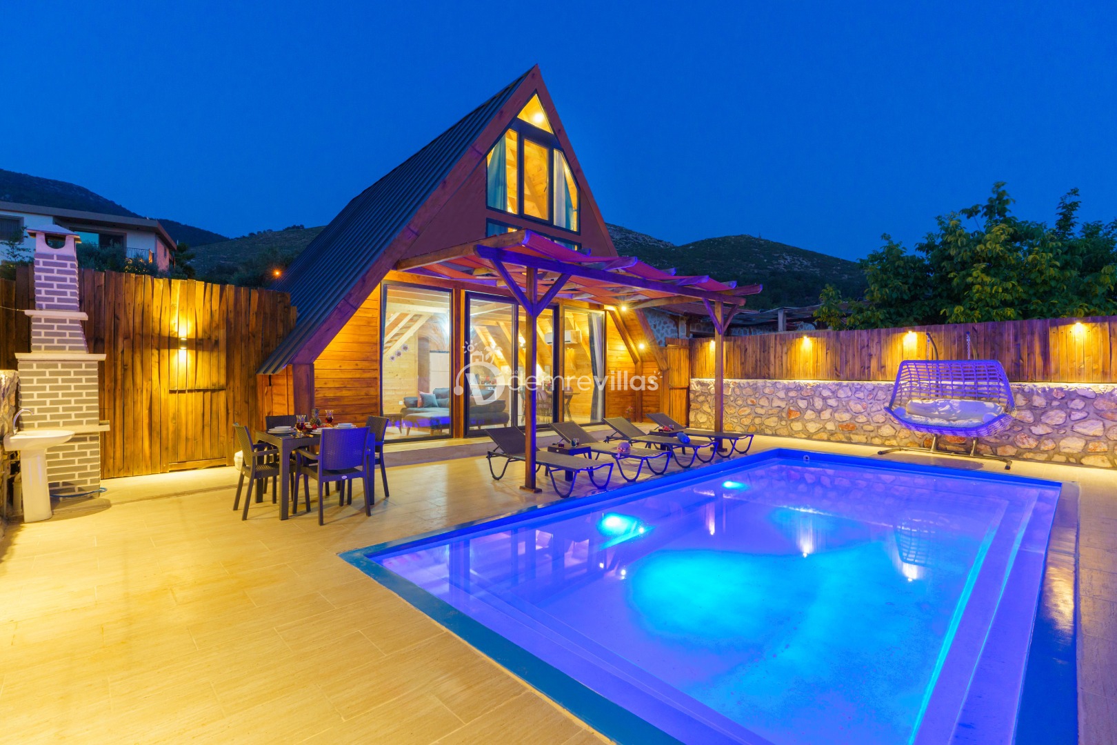 Doğa içerisinde konumlandırılmış olan villamızın aynı zamanda havuz alanı da korunaklıdır.