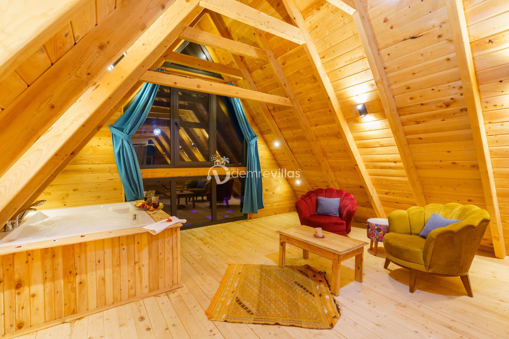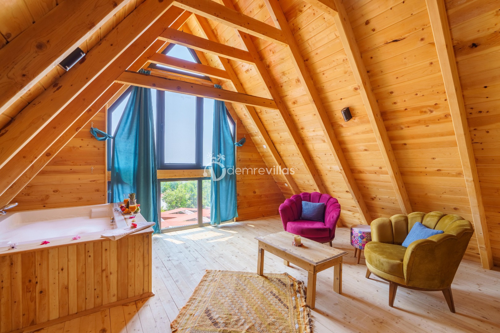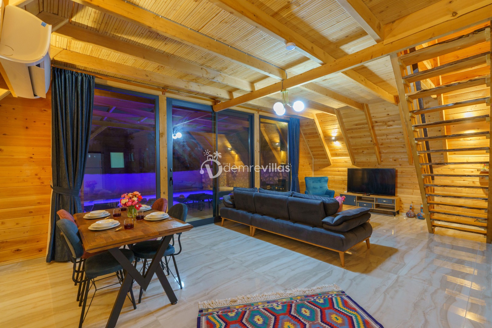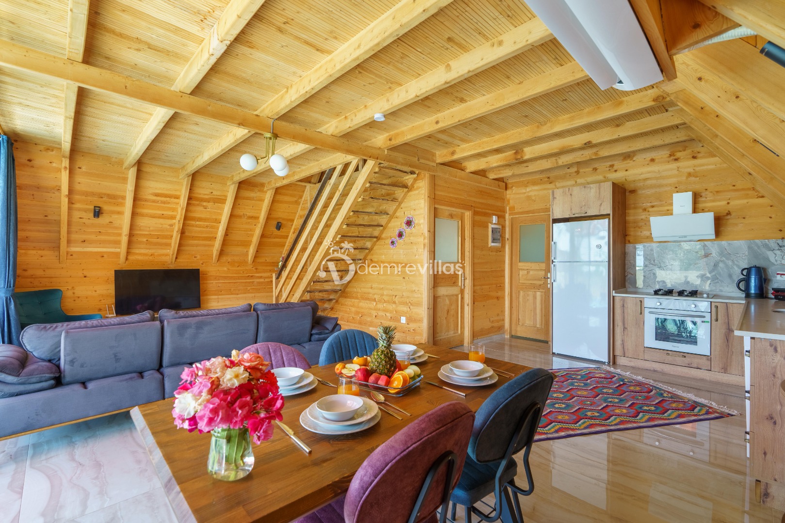Kalkan Üzümlü Köyü'nde bulunan 2 yatak odası ile 4 kişi konaklama kapasiteli tatil villamız.