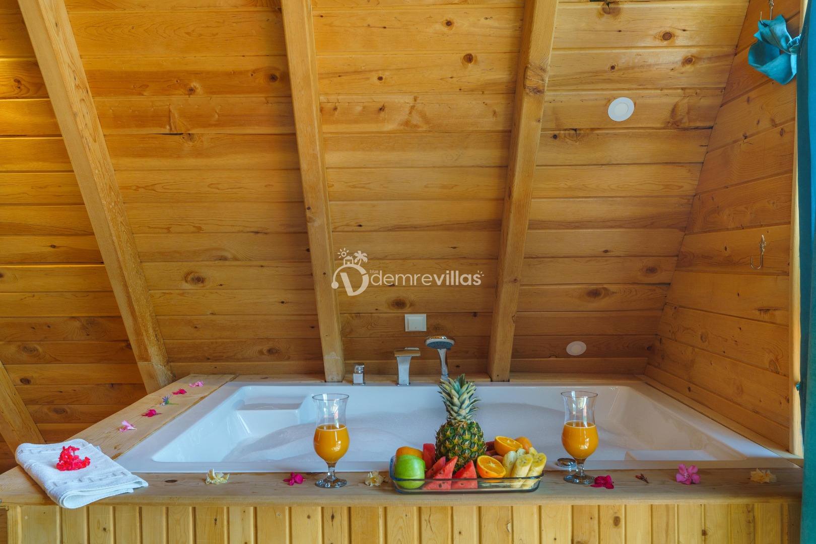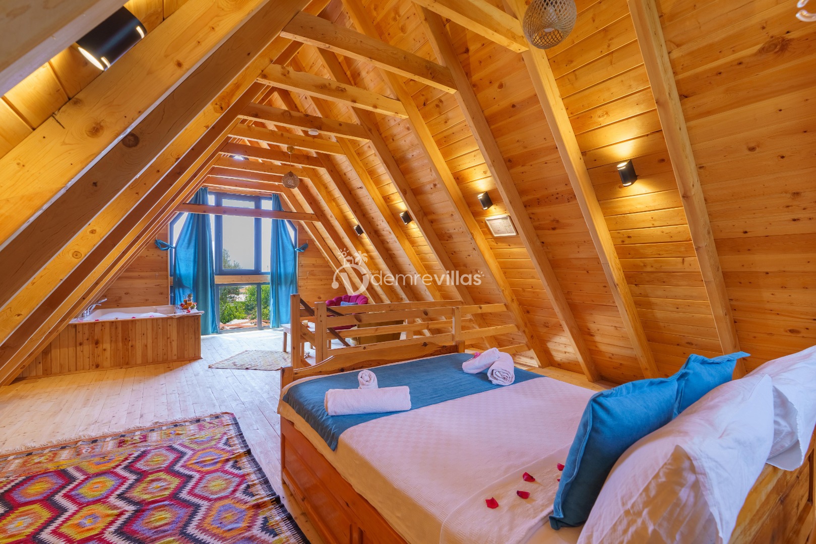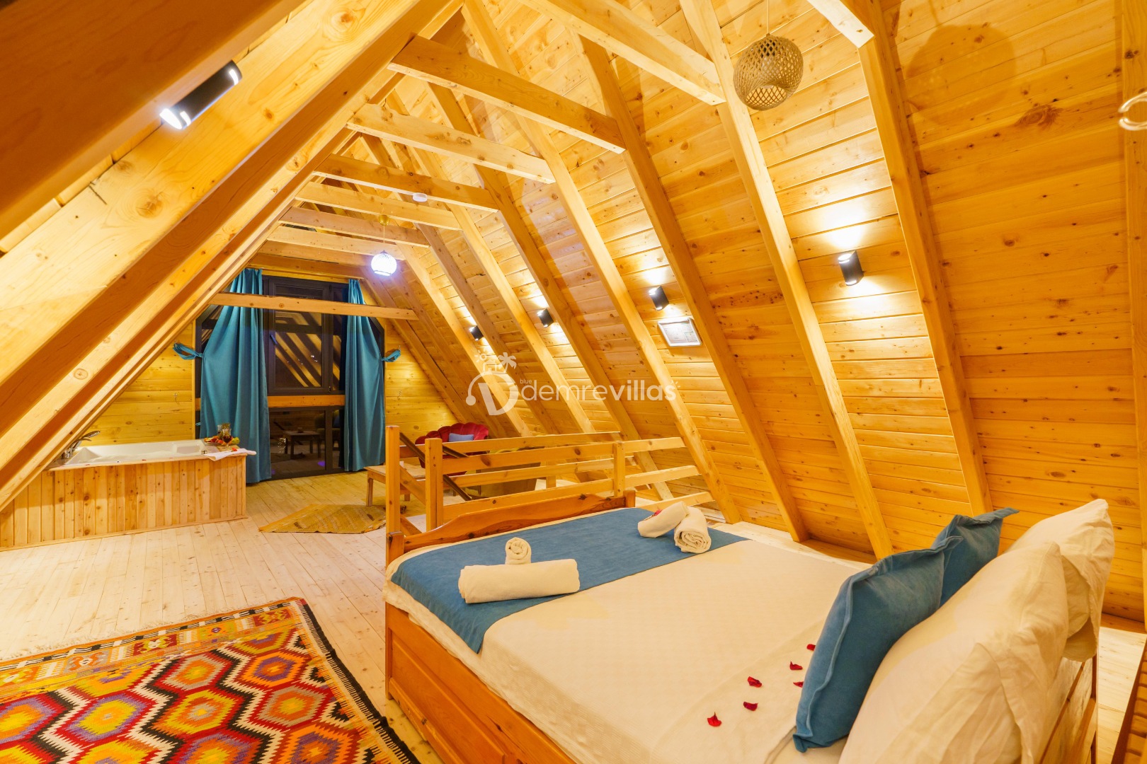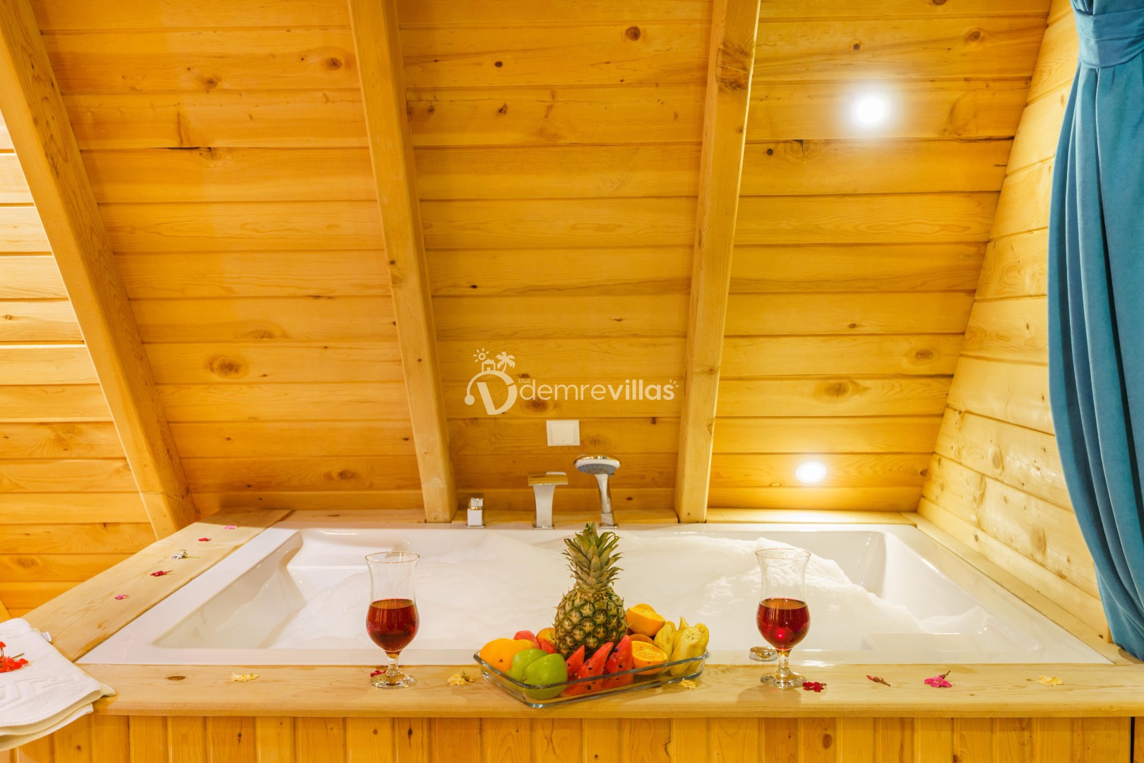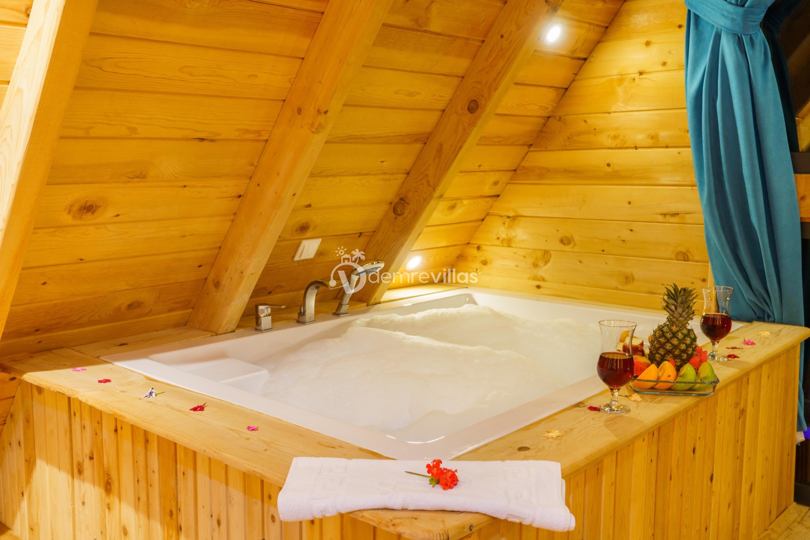 Geniş bahçe alanına sahip villamızın aynı zamanda ana yatak odasında jakuzisi de mevcuttur.