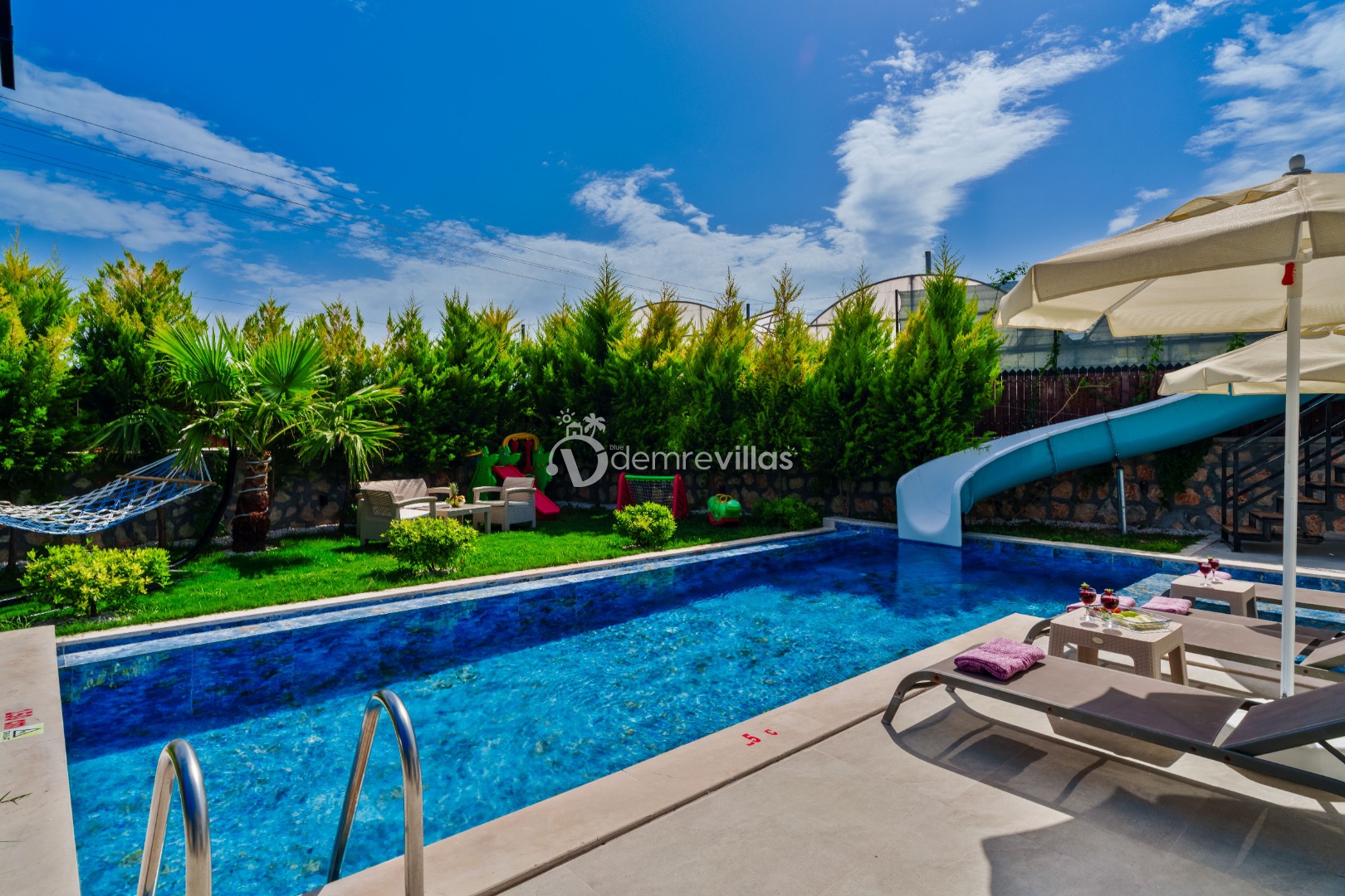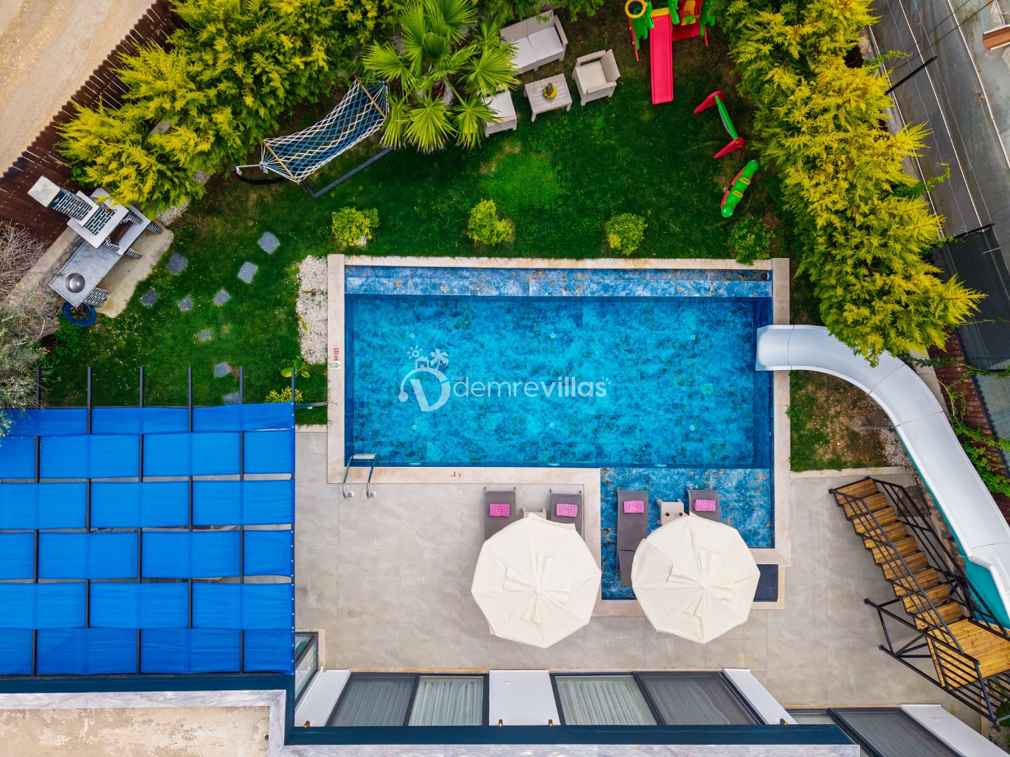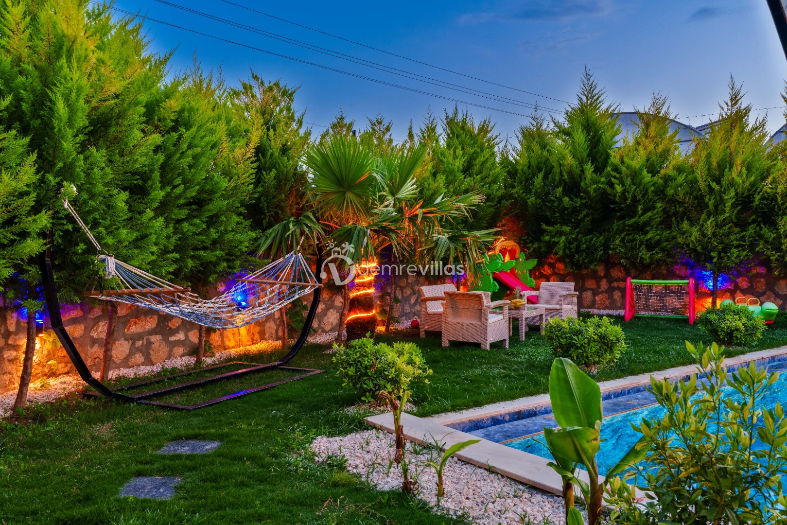 Renkli bir havuz terasına sahip olup bahçesinde langırt ve minik misafirlerimiz için çocuk oyun parkı bulunmaktadır.