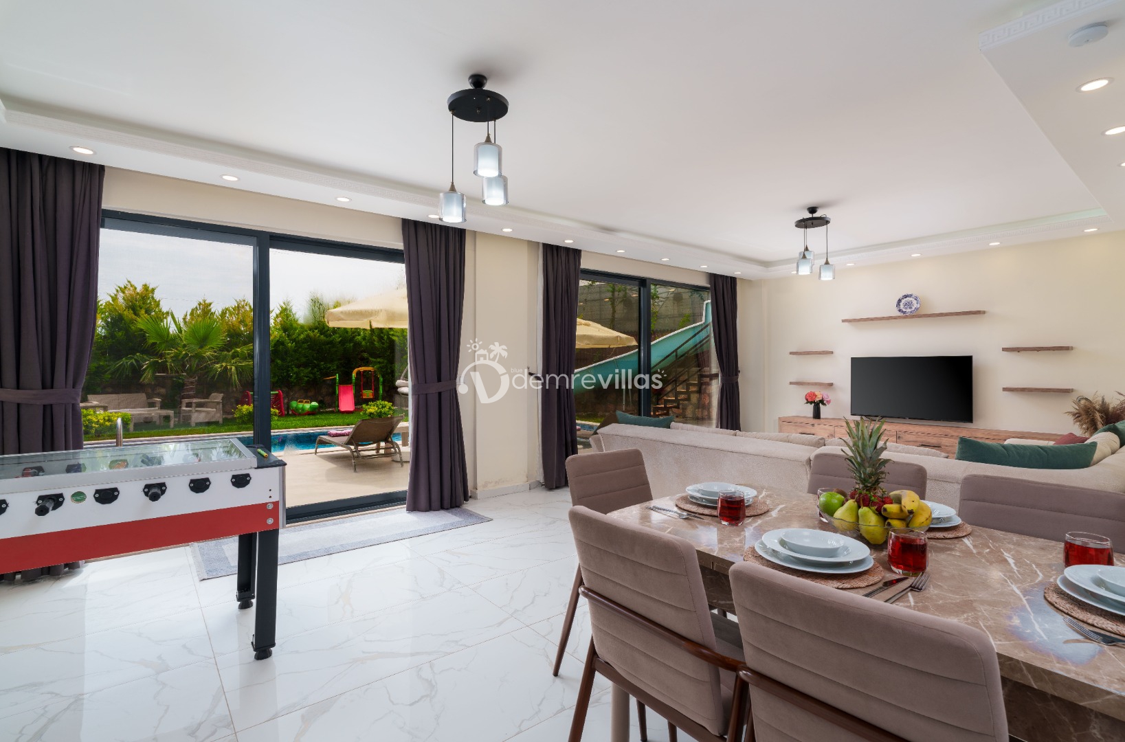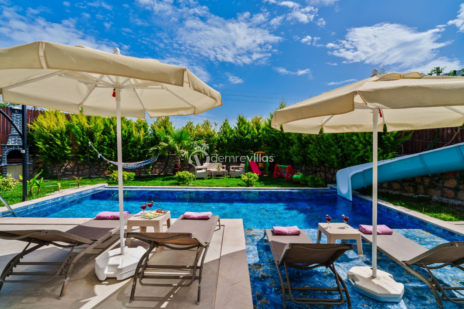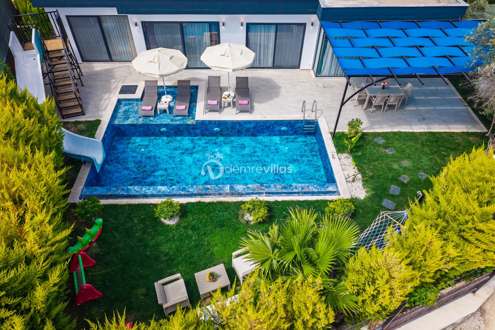 Renkli bir havuz terasına sahip olup bahçesinde langırt ve minik misafirlerimiz için çocuk oyun parkı bulunmaktadır.