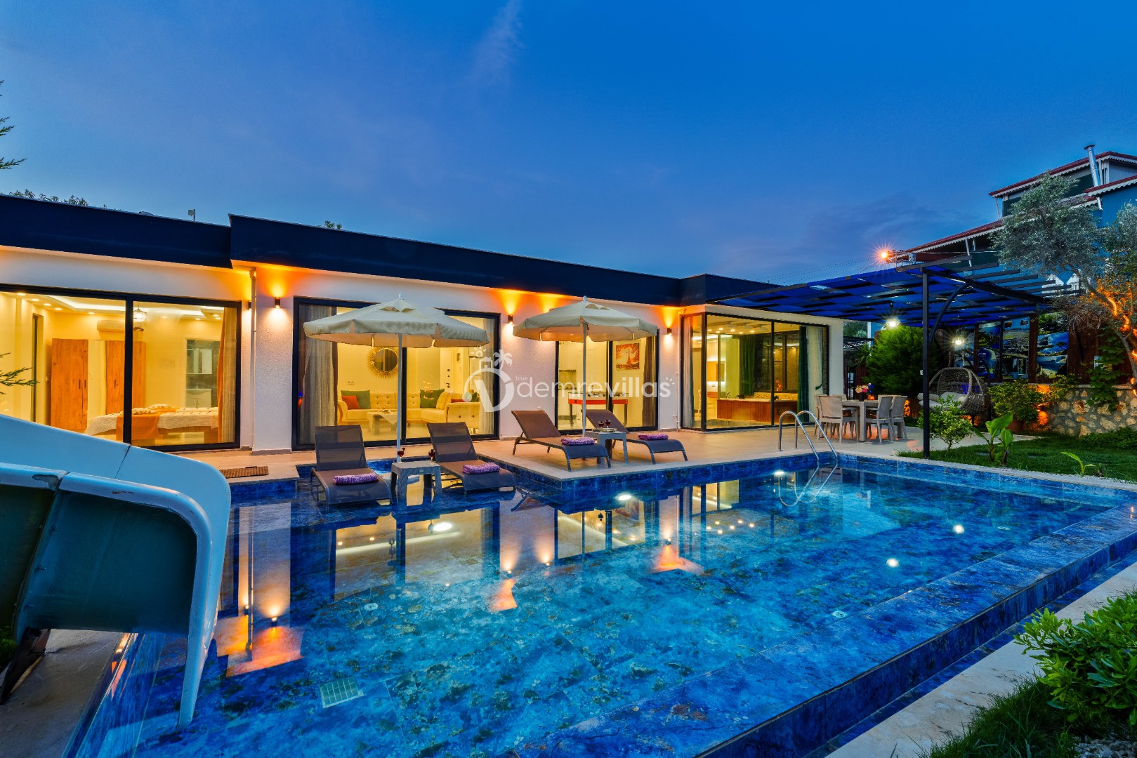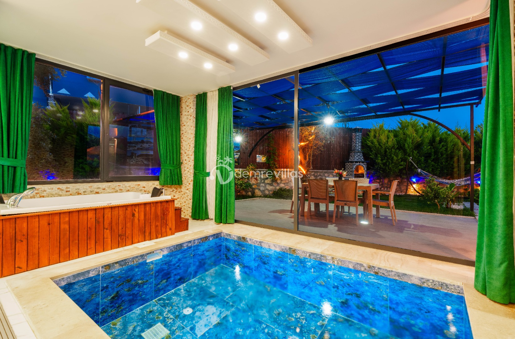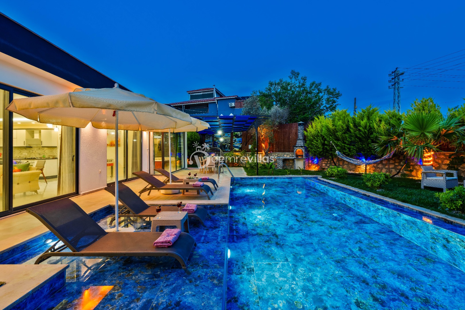 Villamız, Kalkan Çavdır mevkiinde bulunan, özel havuzlu bahçeli bir villamızdır. Şık ve keyifli bir iç dizayna sahip villamız 4 kişilik kapasiteye sahiptir ve havuz terası korunaklı olup muhafazakar aileler için oldukça uygundur. Villamızda sauna, hamam ve iç havuz mevcuttur.