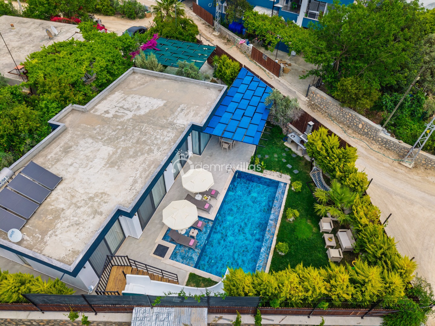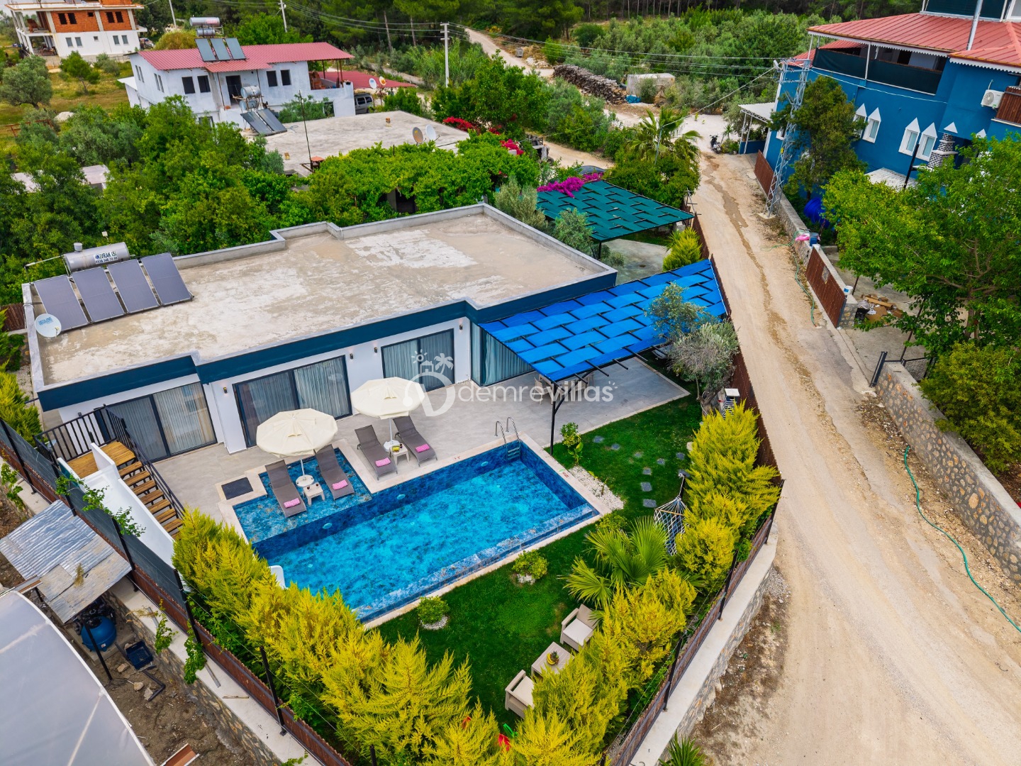 Coğrafi yapısı bakımında dağlık bir alana sahip olan bölgemizdeki villalarımız genel olarak yamaç üzerine kuruludur. Bu nedenle villalarımıza giderken yokuş yukarı çıkılmaktadır. Bu not sadece bu villa ile ilgili değildir. Tüm villalarımızda yazmaktadır.