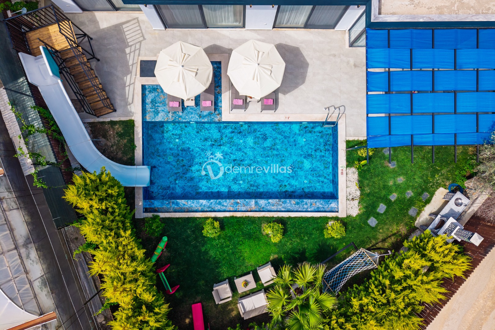 - Korunaklı havuz bahçe