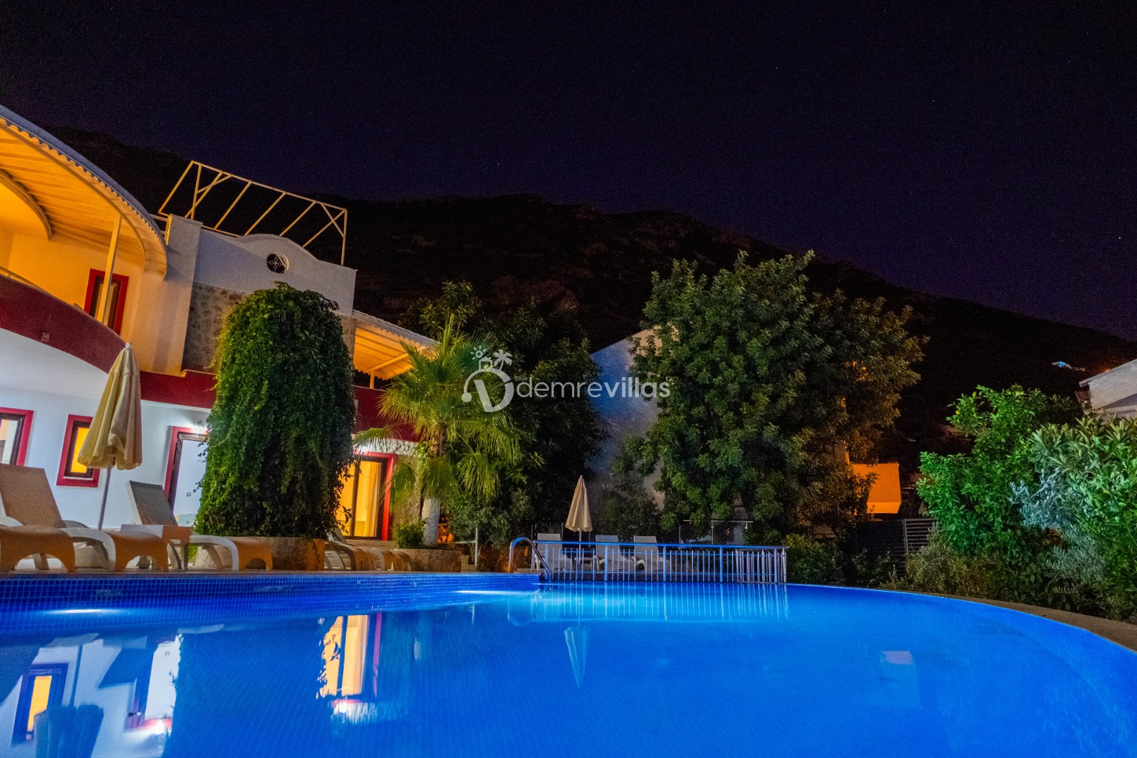 Antalya,Kaş,Kalkan bölgesi, Kızıltaş mevkkinde yer alır. Kalabalık arkadaş grupları ve kalabalık aileler için uygun villalar arasındadır. Geniş havuz terasına sahip villamızda çocuk havuzu da bulunmaktadır. Konumu itibarı ile merkeze ve denize yakın villalar arasındadır.