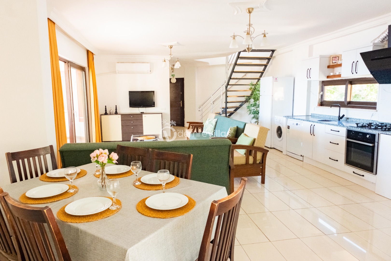 1. Kat ve Teras: 1.Katta Tüm aileyi ağırlayabilecek nitelikte mutfak ve salon bulunmakta olup ayrıca biri suit olmak üzere iki adet çift kişilik yatak odası ve bir tane tek kişilik yatak odası, bebek yatağı bulunmaktadır. Teras katta iki adet tek kişilik yatak ve harika deniz ve doğa manzarasına sahip teras bulunmaktadır.