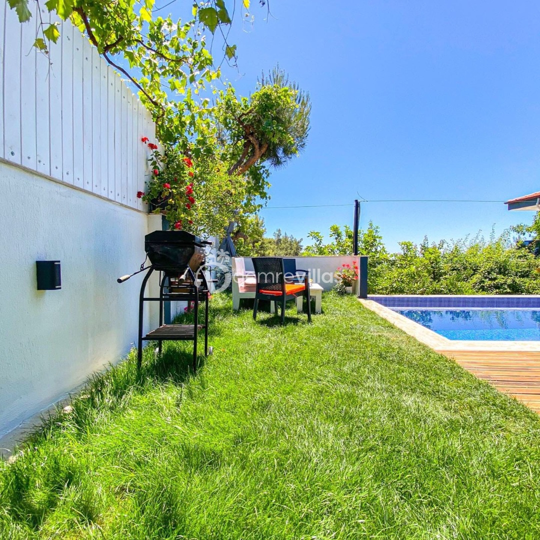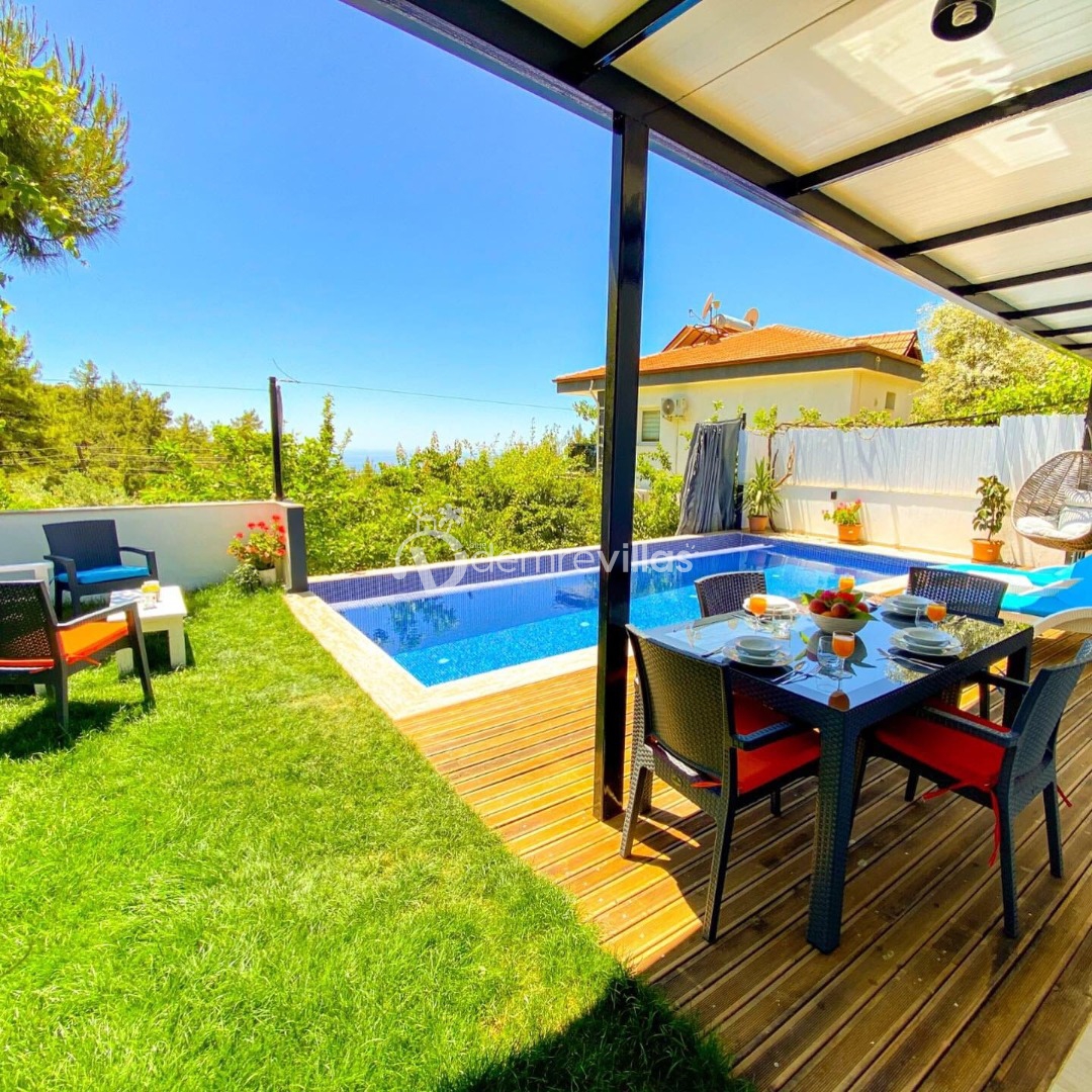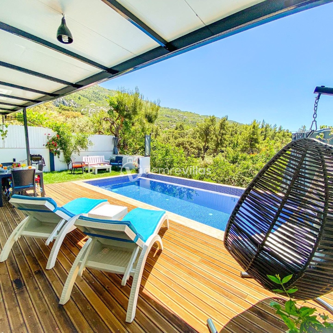 Villamızın havuzu korunaklıdır ve bu sayede dış gözlerden uzak rahat bir tatil düşleyen balayı misafirleri ve çiftler için çok uygun bir kiralık villa olacaktır.