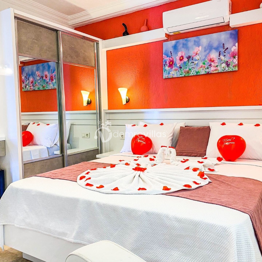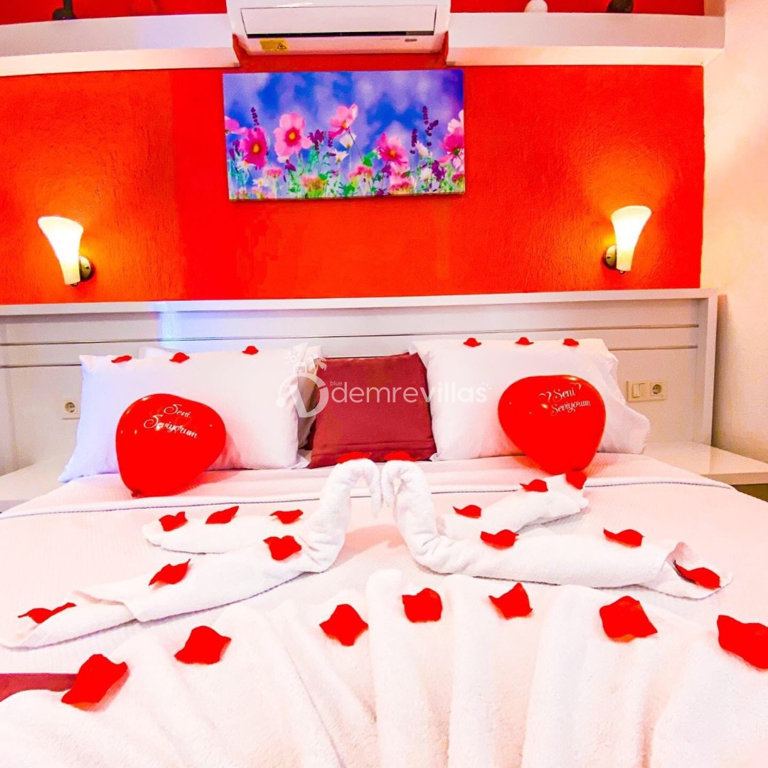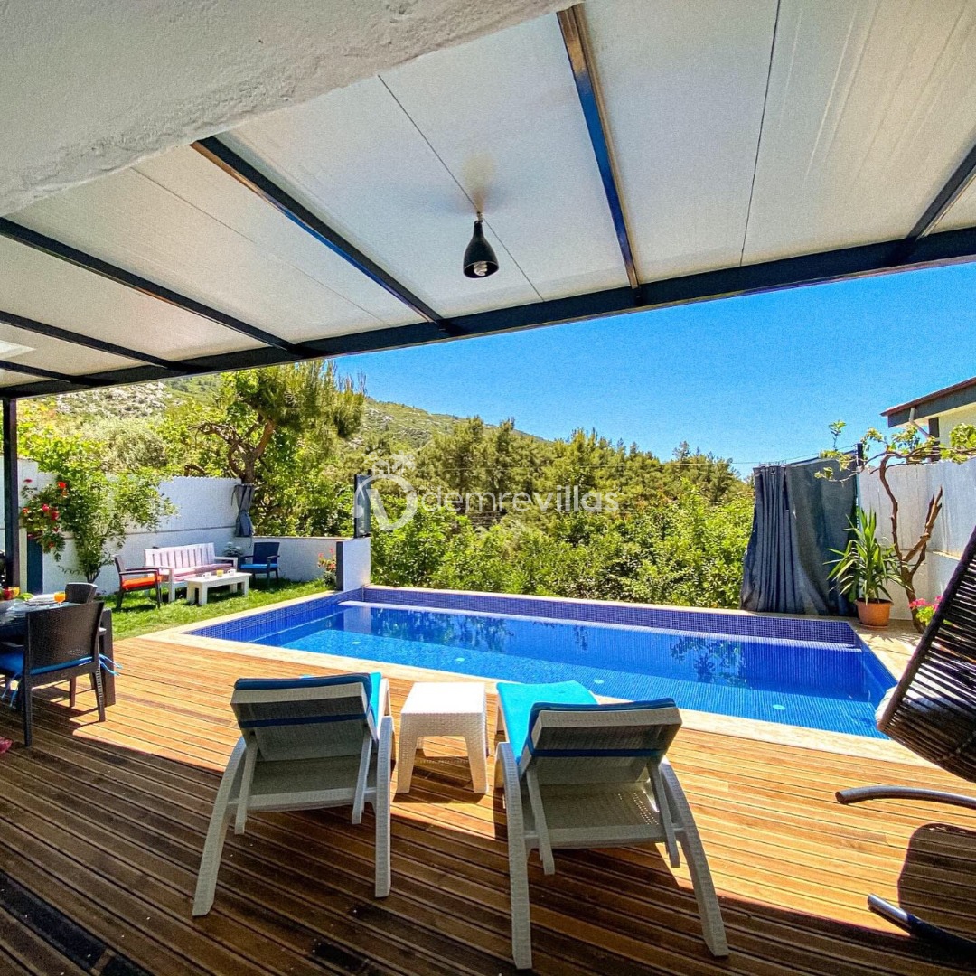 Villamızın havuzu korunaklıdır ve bu sayede dış gözlerden uzak rahat bir tatil düşleyen balayı misafirleri ve çiftler için çok uygun bir kiralık villa olacaktır.