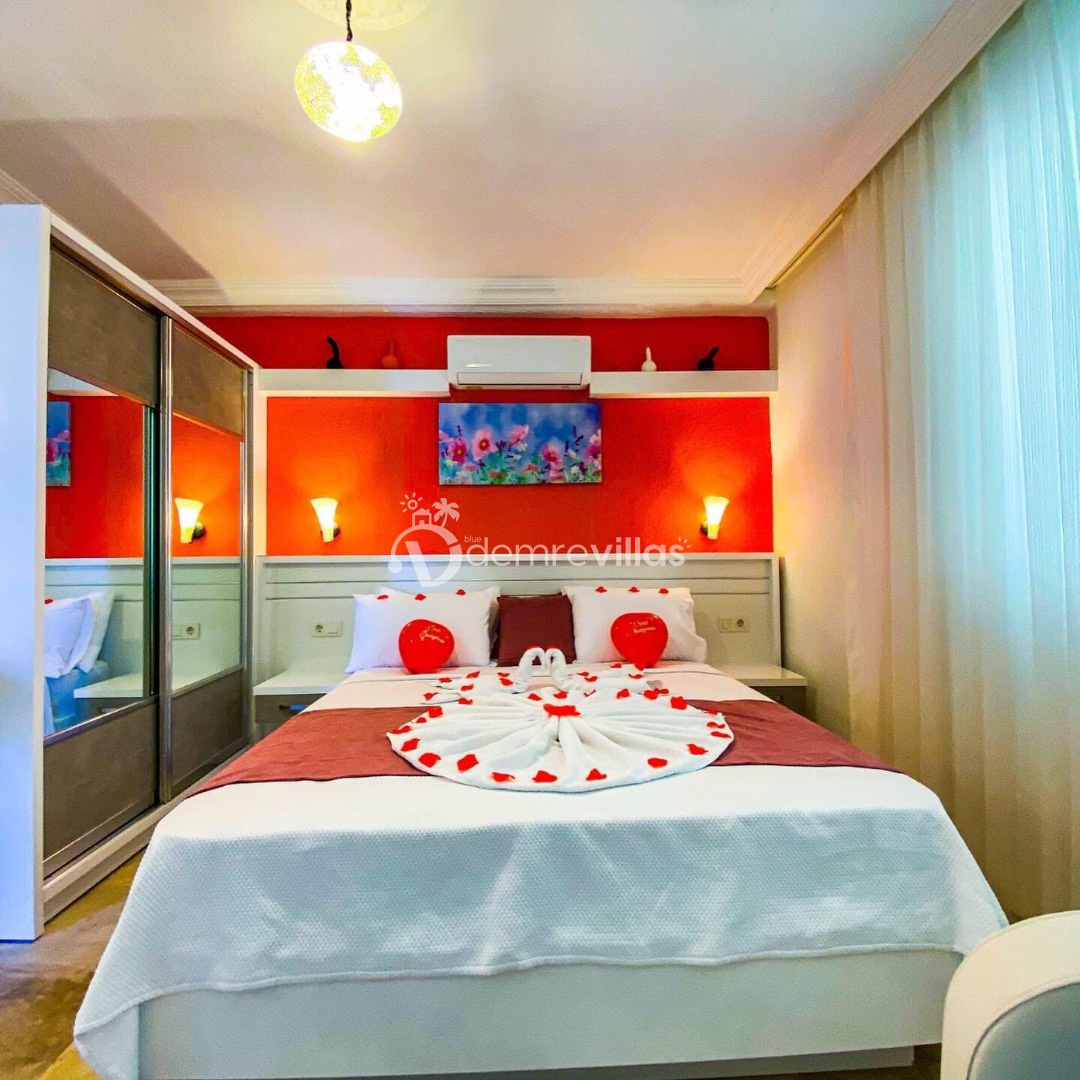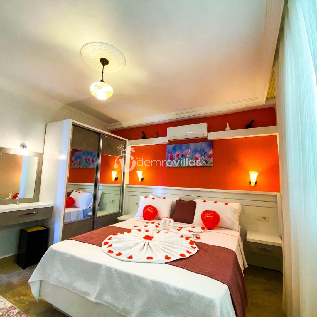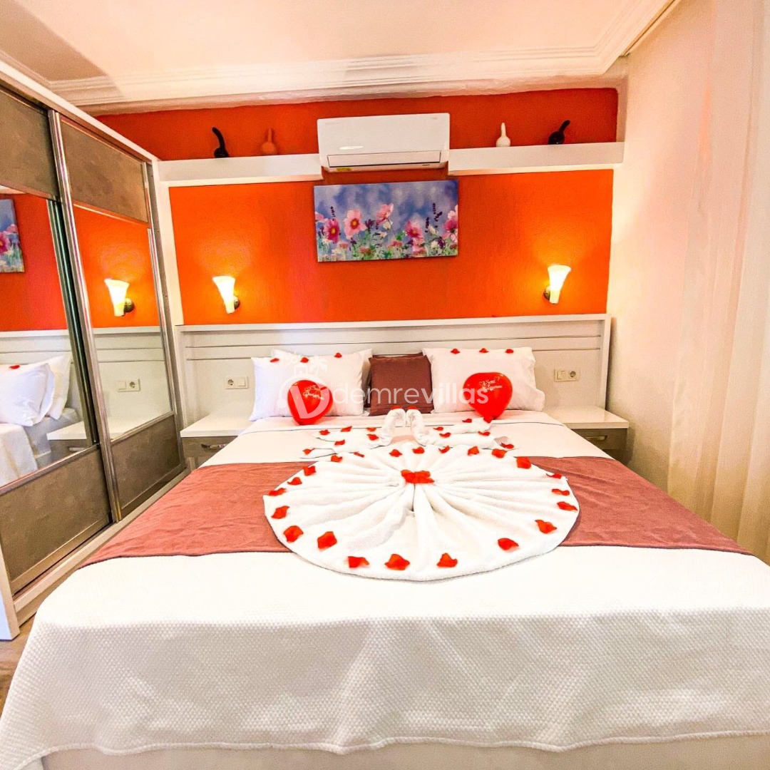 Villamız, Kalkan İslamlar bölgesinde konumlanmış, doğanın yeşillikleriyle bütünleşmiş bir konumda yer alır. 1 yatak odalı 2 kişilik balayı villasıdır. Eşsiz bir manzaraya sahip villamızın, havuzunda keyif yaparken, günbatımının tadını çıkarabilirsiniz.