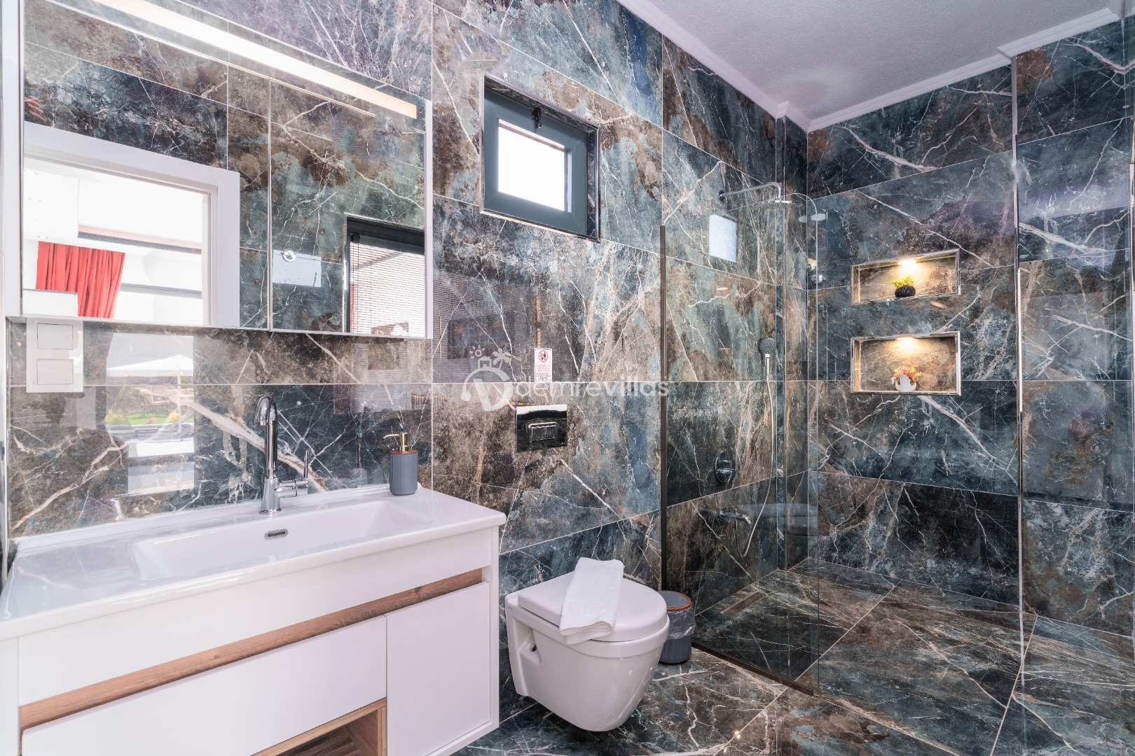 Coğrafi yapısı bakımında dağlık bir alana sahip olan bölgemizdeki villalarımız genel olarak yamaç üzerine kuruludur. Bu nedenle villalarımıza giderken yokuş yukarı çıkılmaktadır. Bu not sadece bu villa ile ilgili değildir. Tüm villalarımızda yazmaktadır.