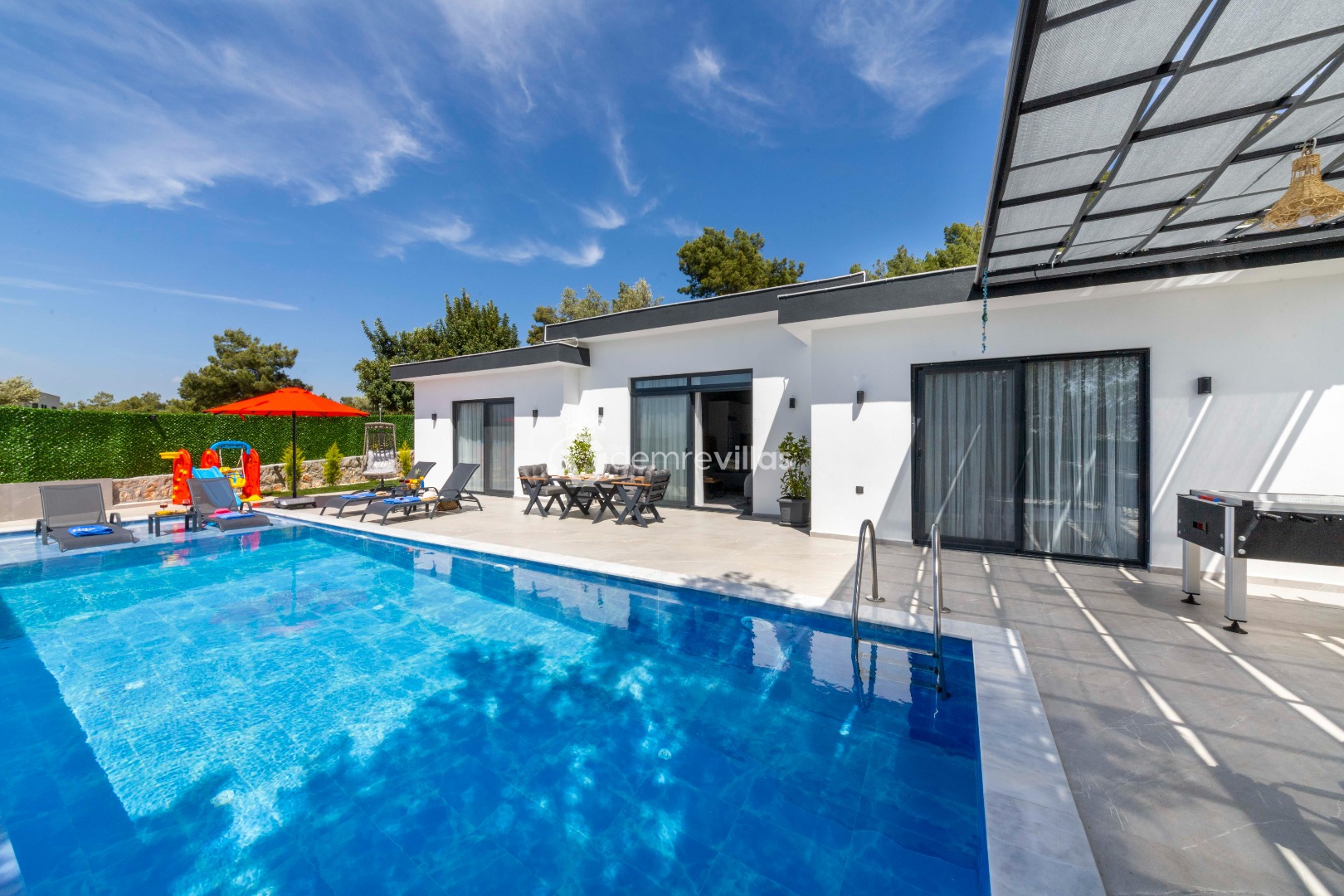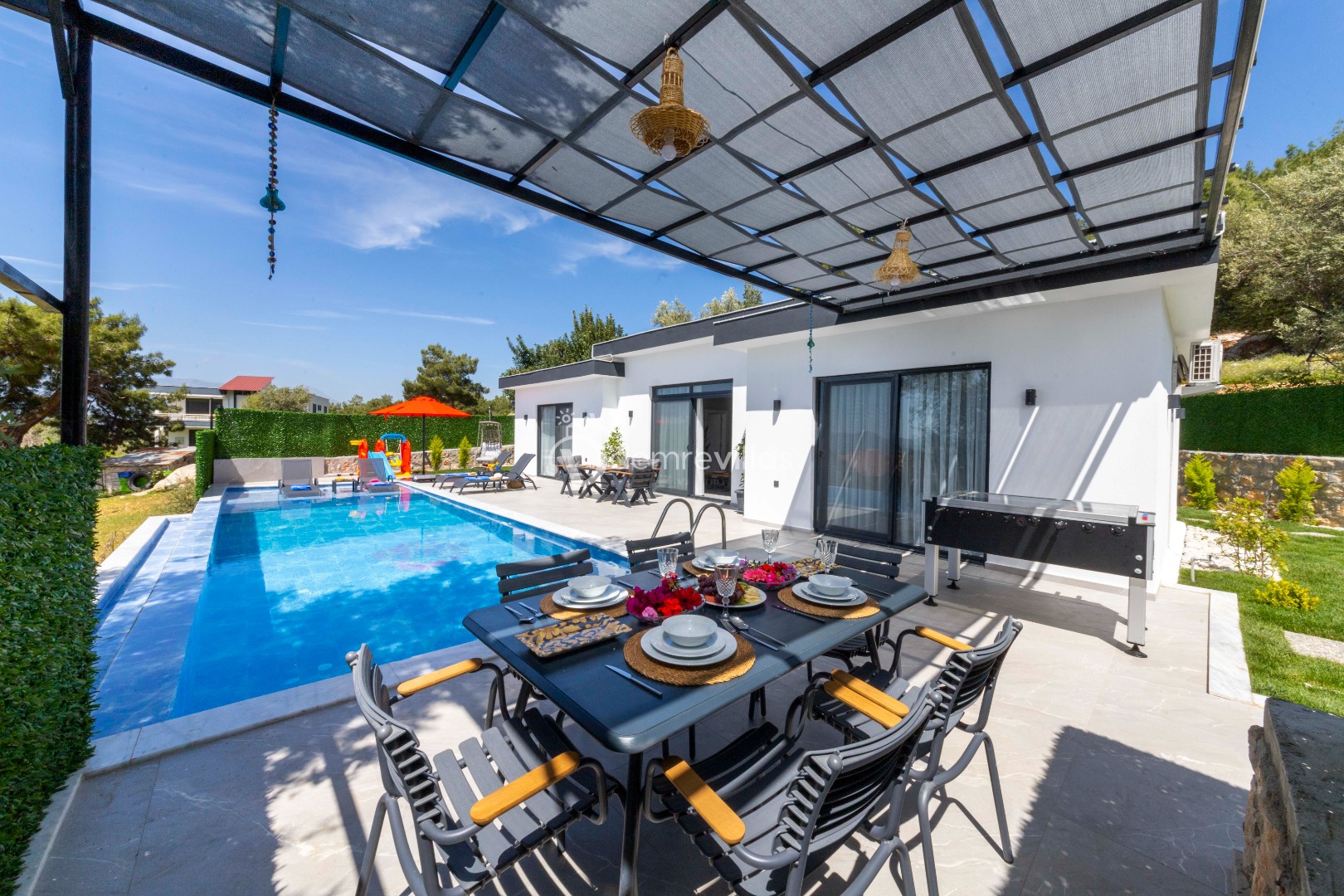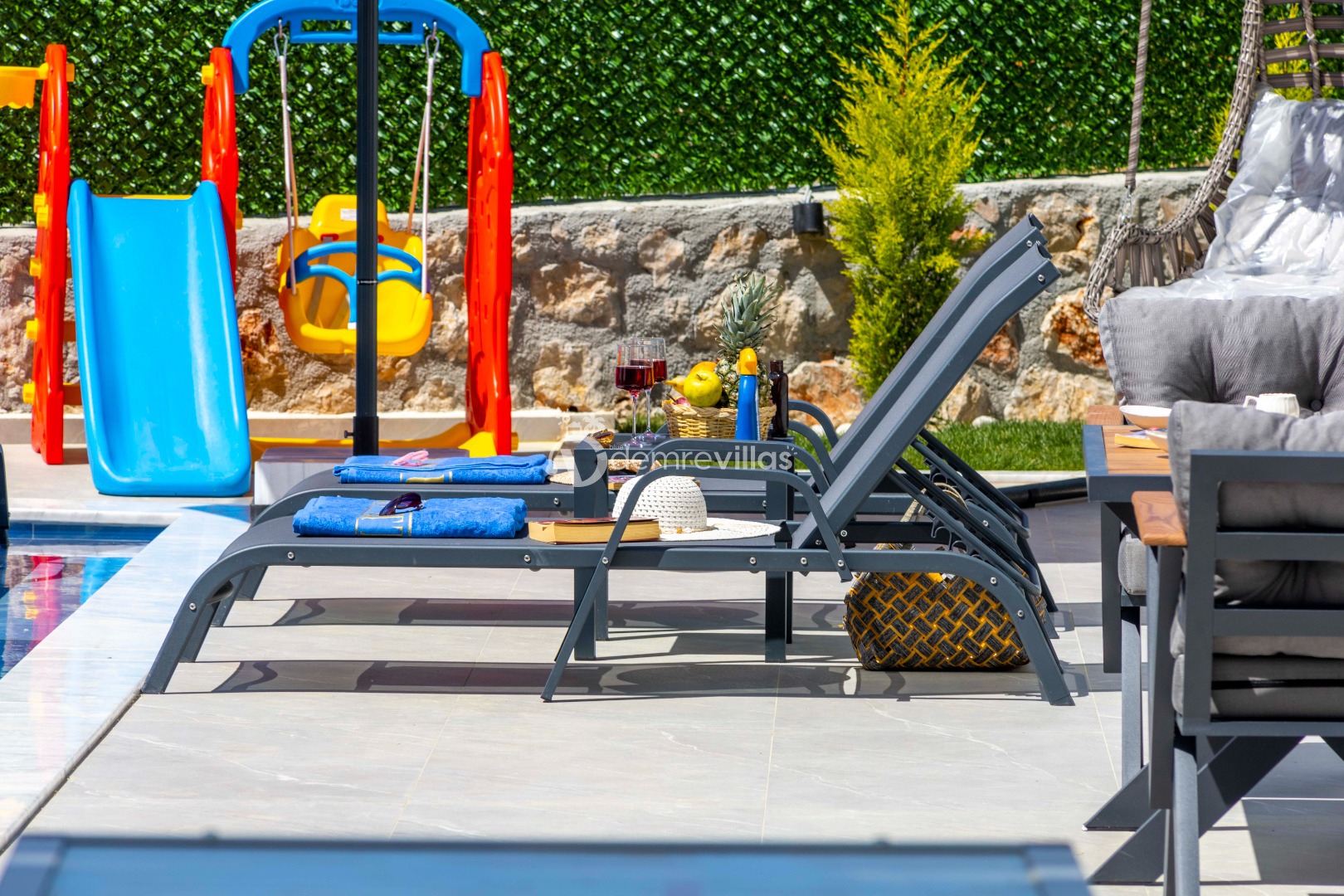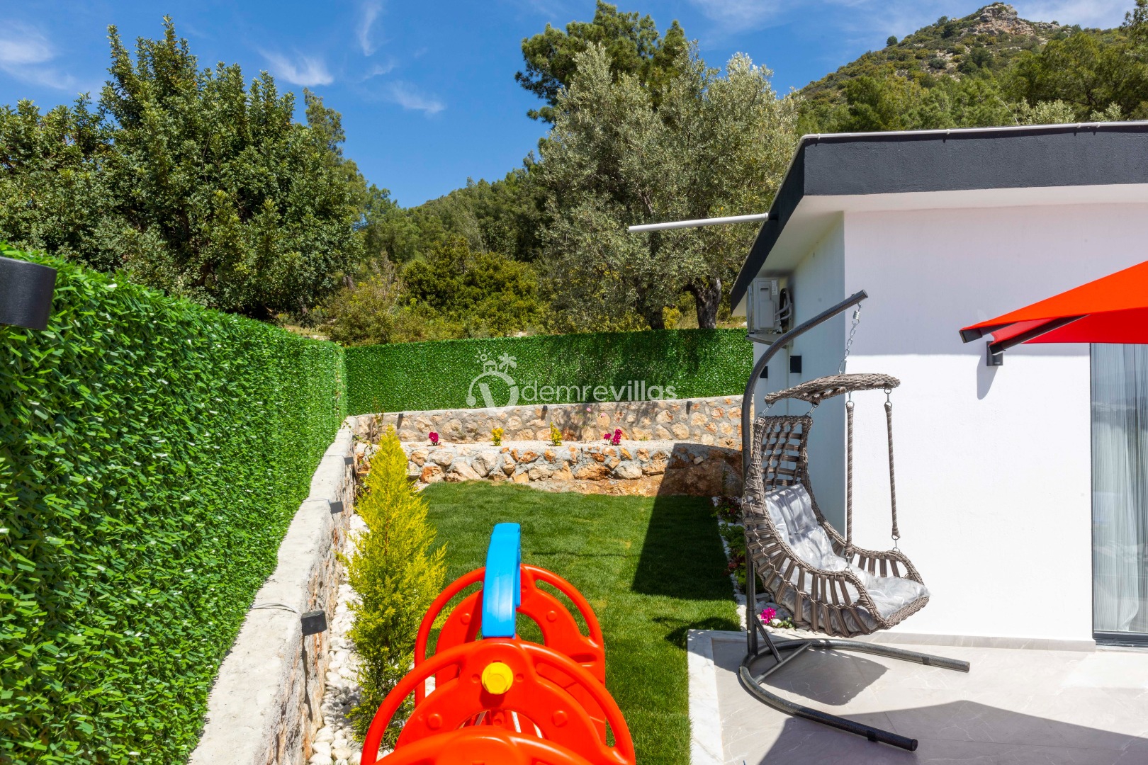 Ayrıca, villa içinde salıncak, çocuk parkı, langırt ve geniş bir bahçe alanı mevcuttur.