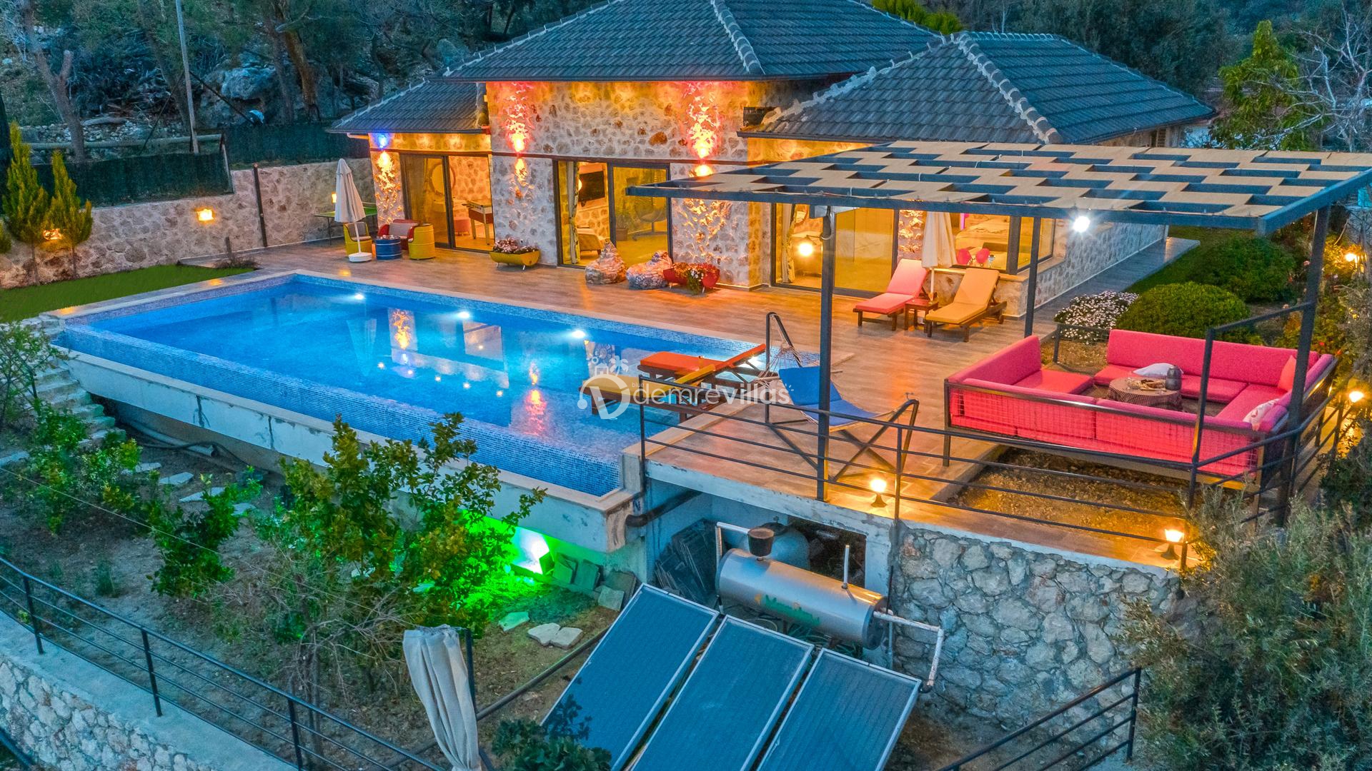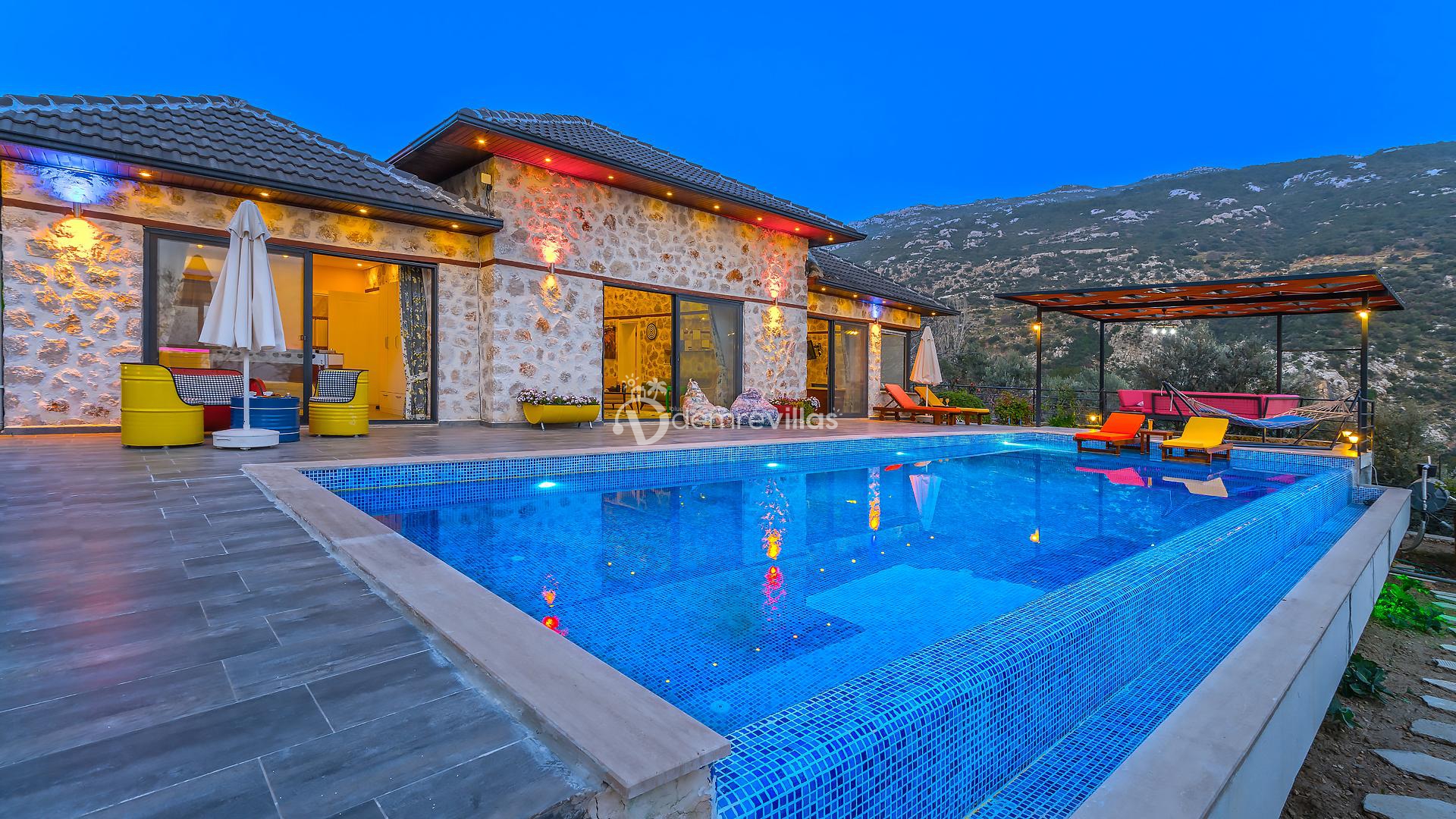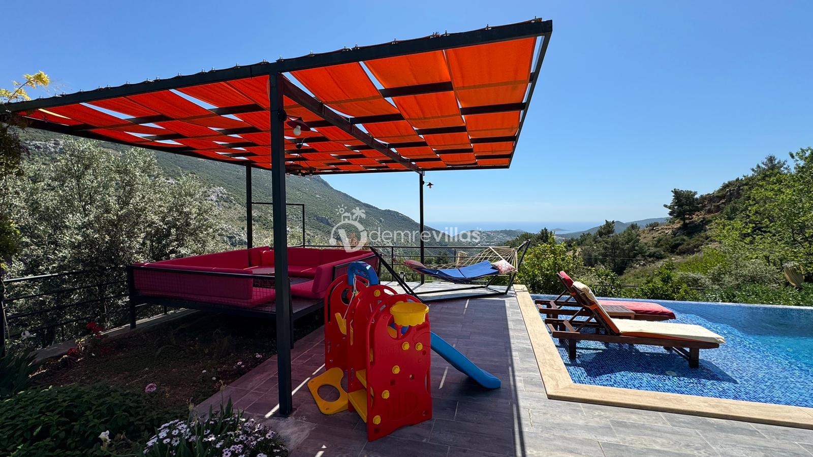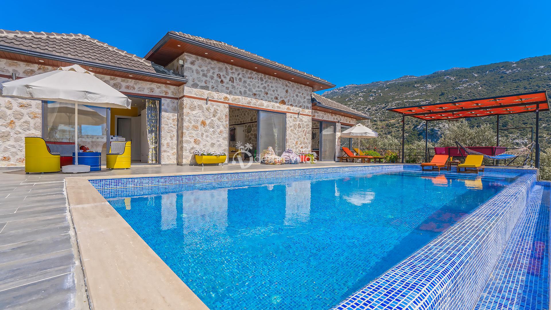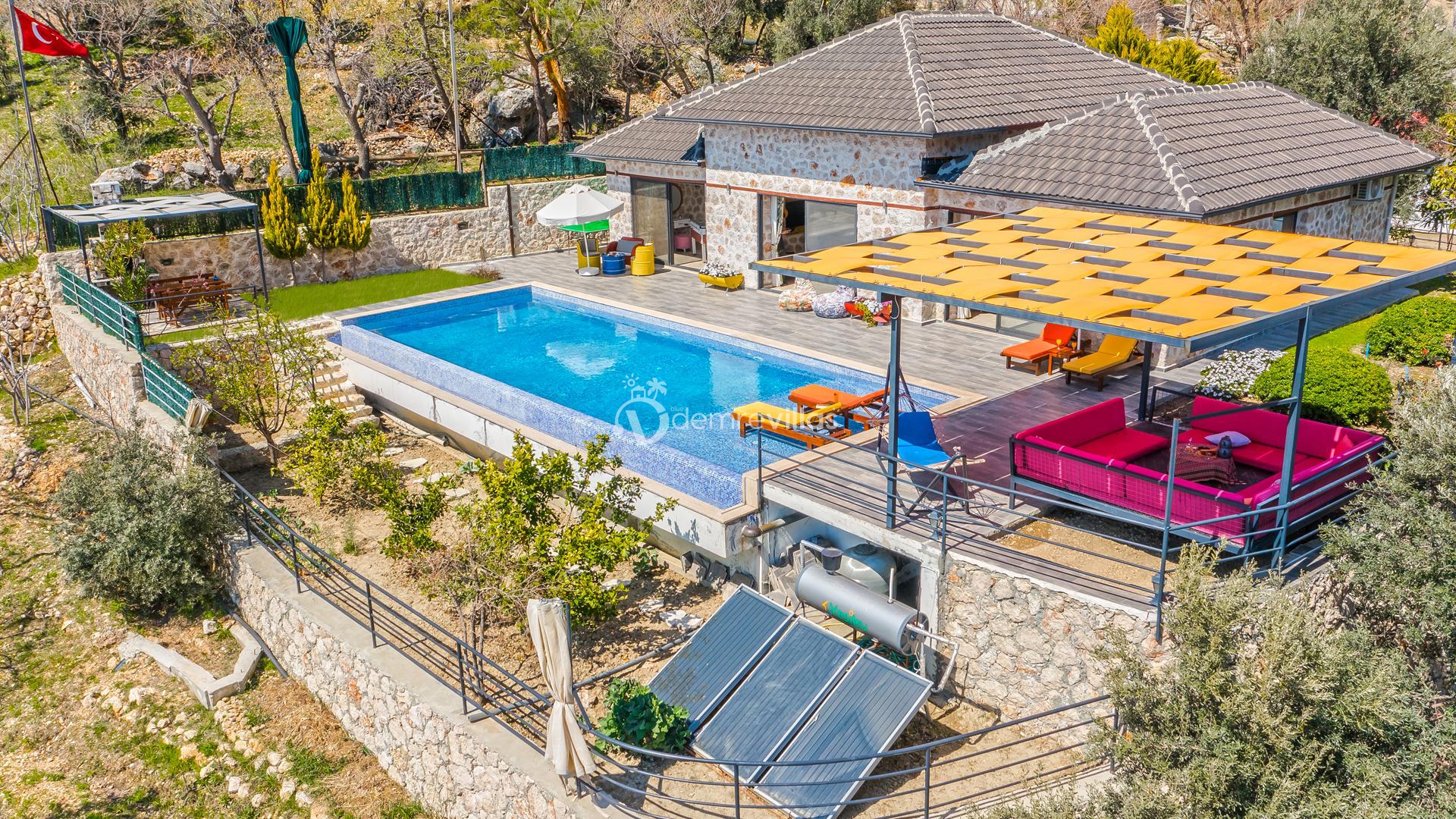 Villamız, Kalkan İslamlar bölgesinde bulunan 2 yatak odalı 5 kişilik özel yüzme havuzlu muhafazakar villamız harika doğa ve panoramik deniz manzarasına sahiptir.