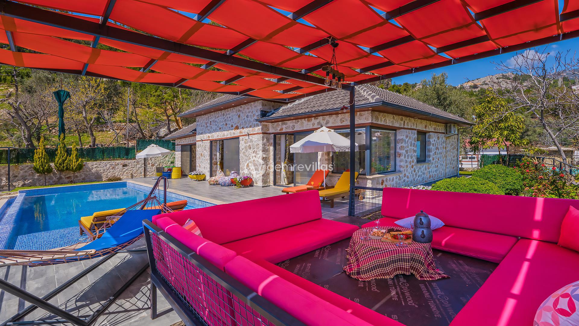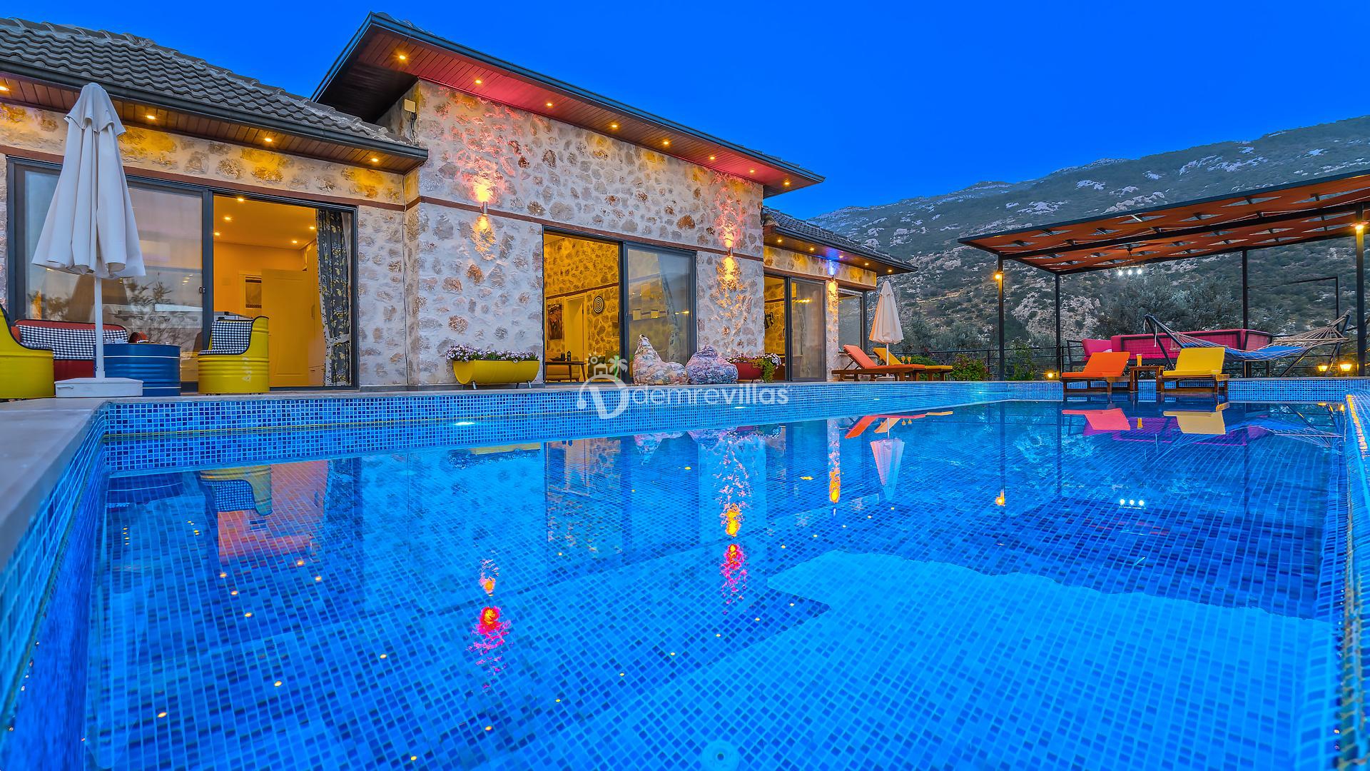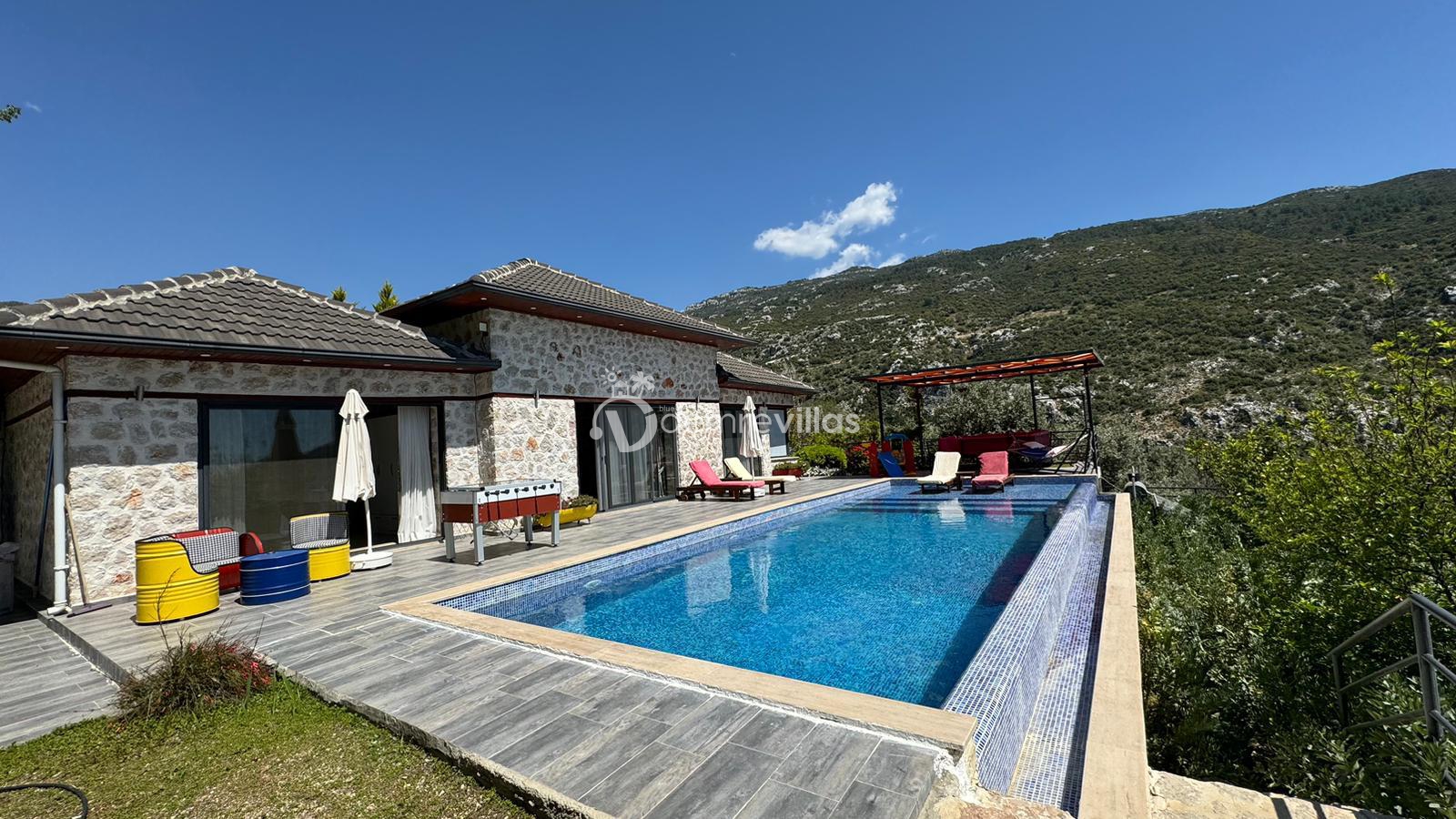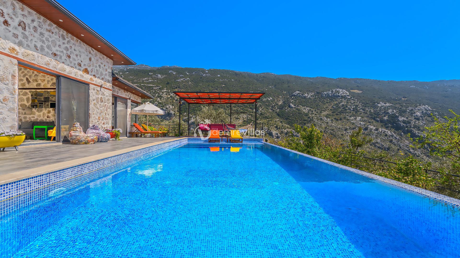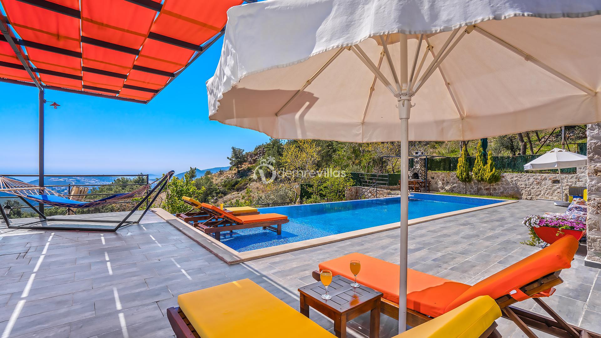 Villamız, Kalkan İslamlar bölgesinde bulunan 2 yatak odalı 5 kişilik özel yüzme havuzlu muhafazakar villamız harika doğa ve panoramik deniz manzarasına sahiptir.