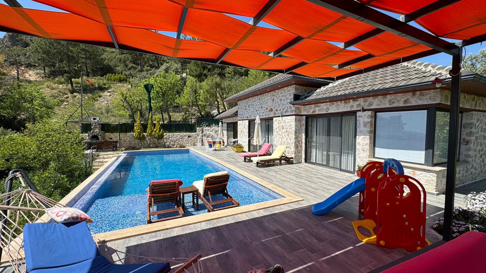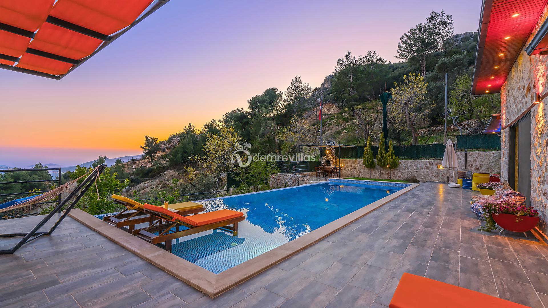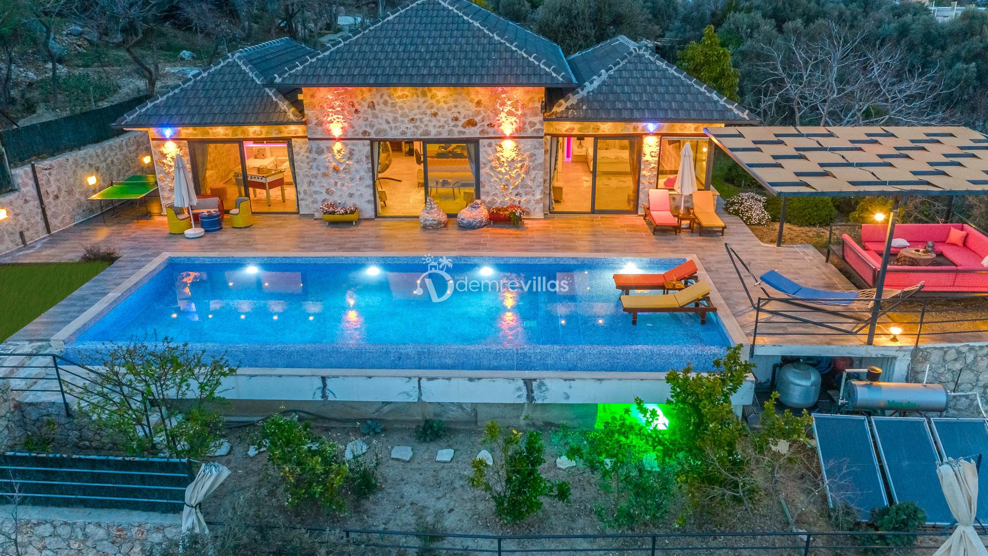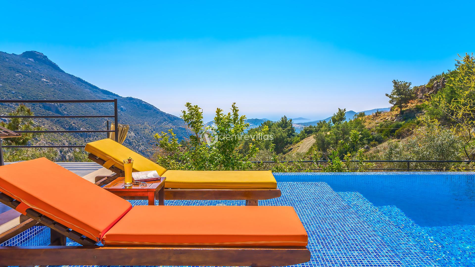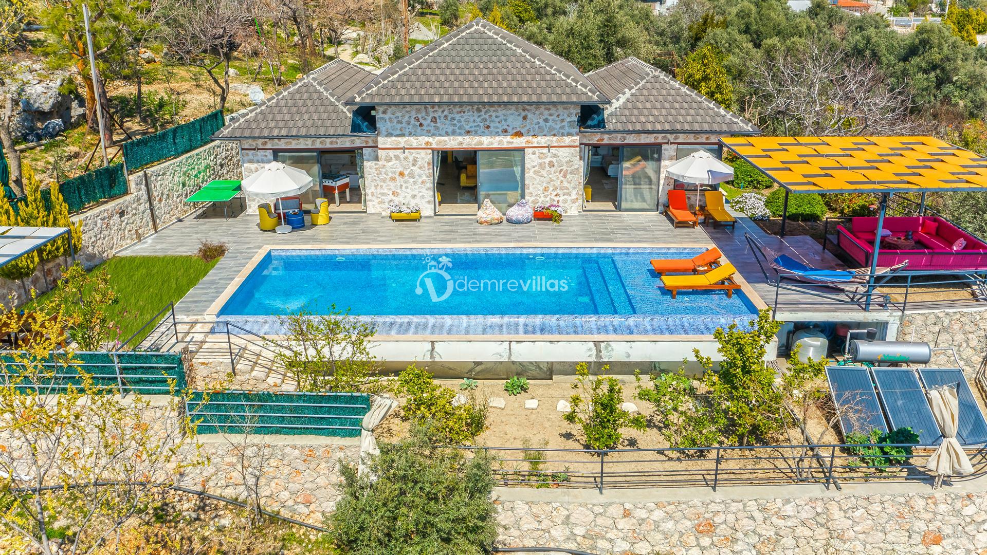Villamız, Kalkan İslamlar bölgesinde bulunan 2 yatak odalı 5 kişilik özel yüzme havuzlu muhafazakar villamız harika doğa ve panoramik deniz manzarasına sahiptir.