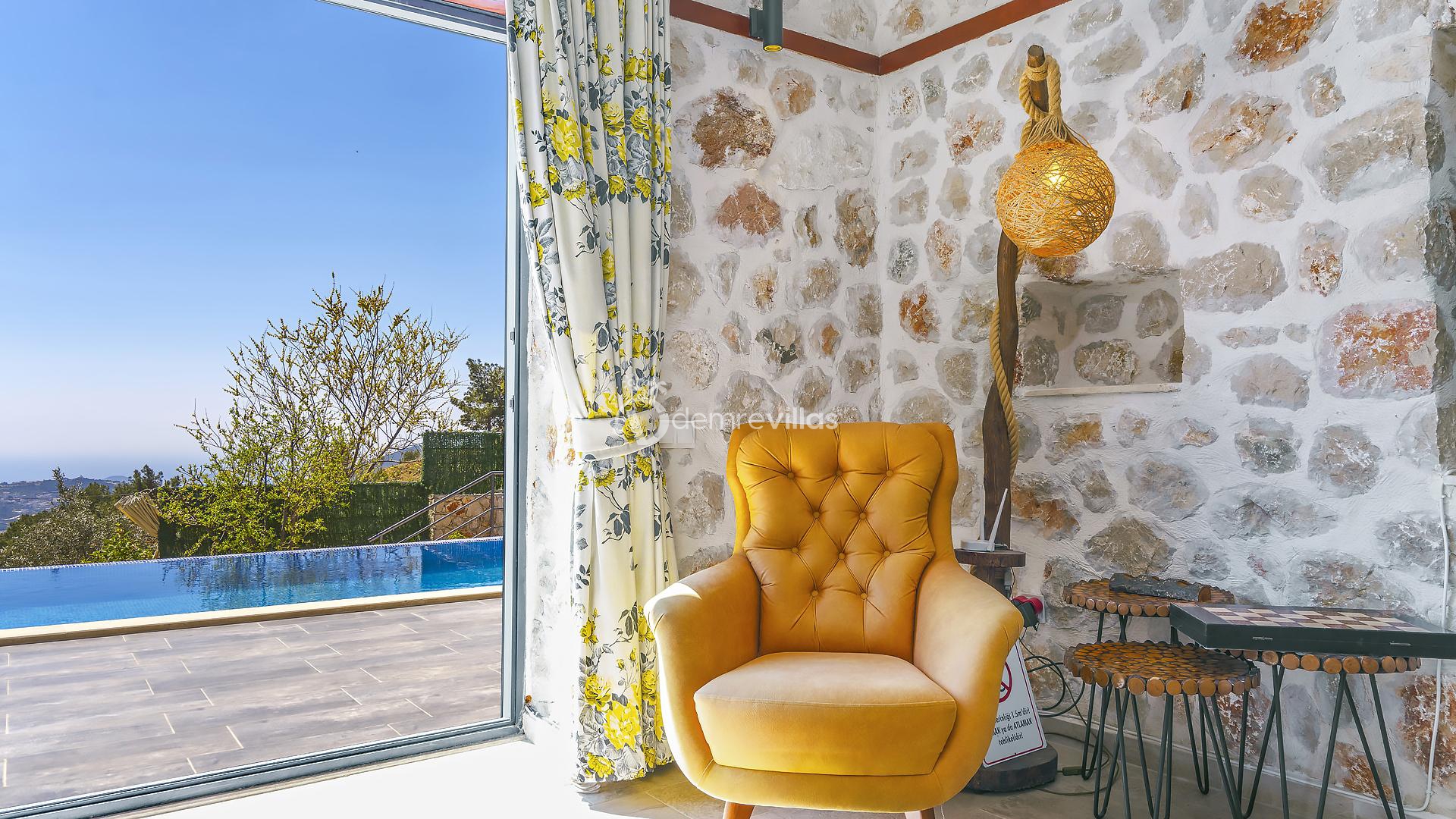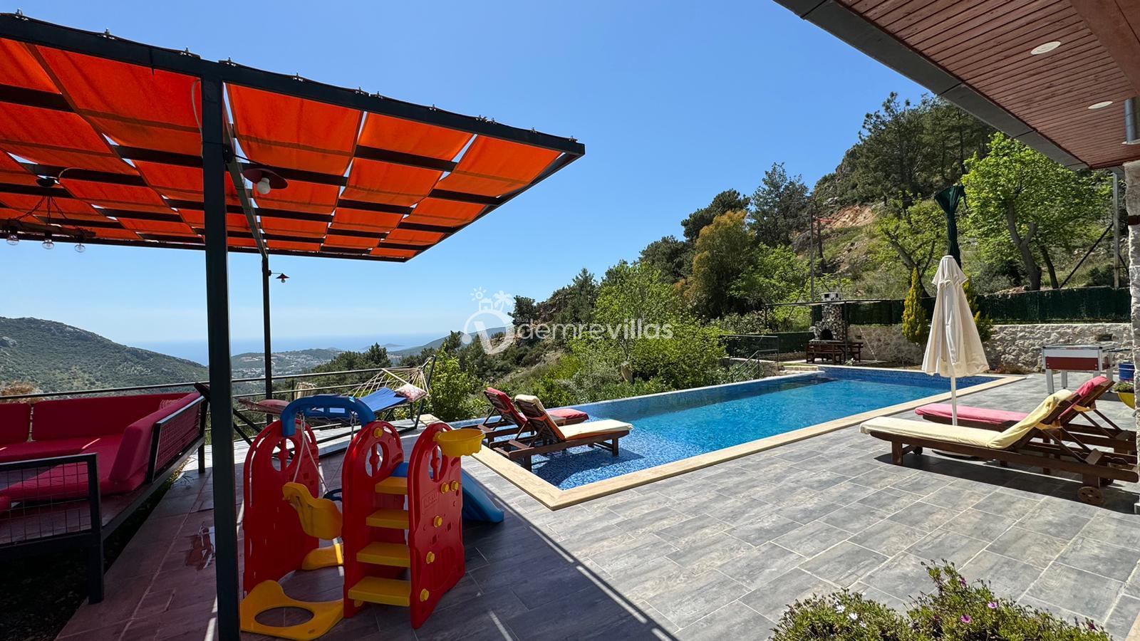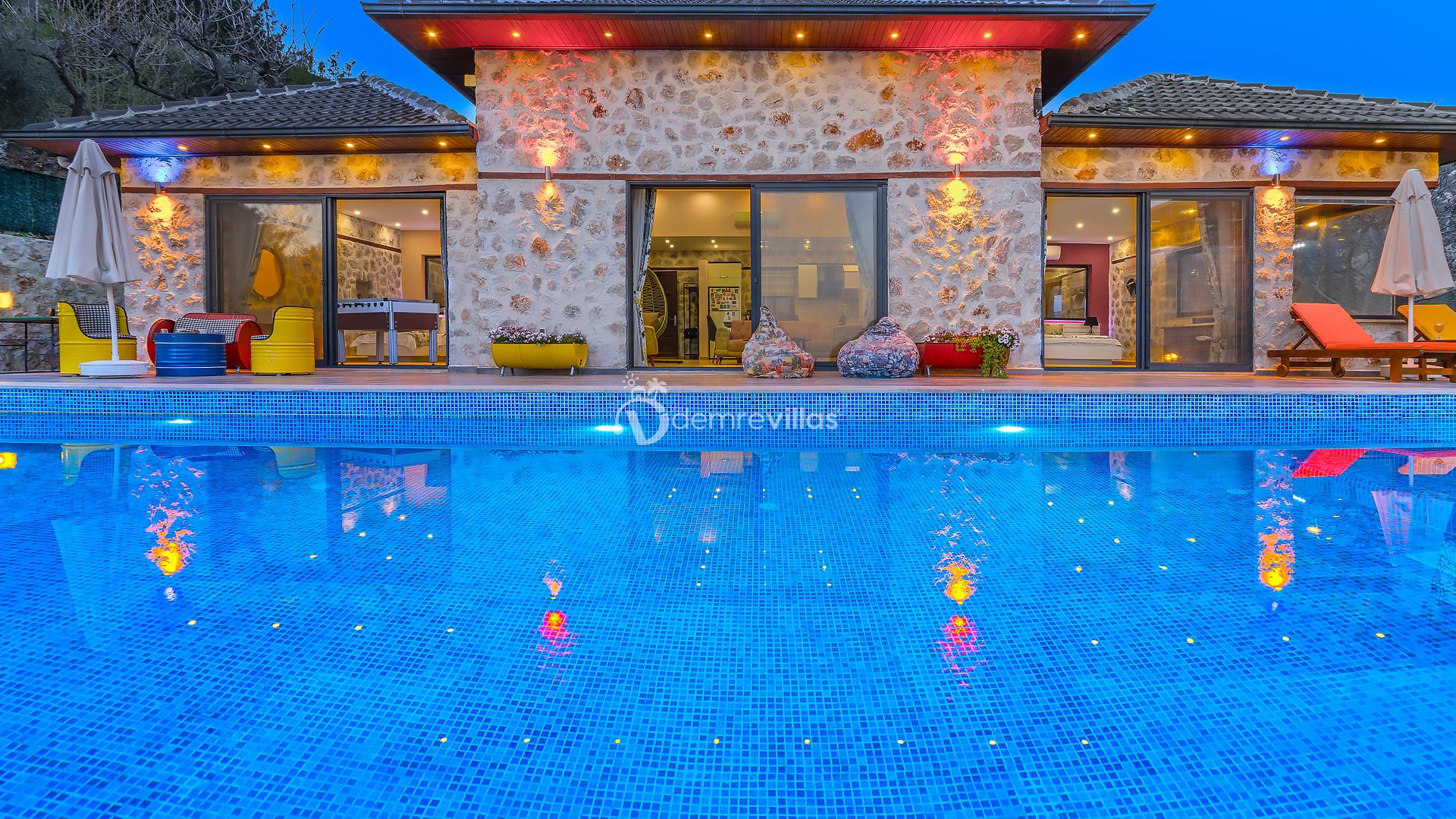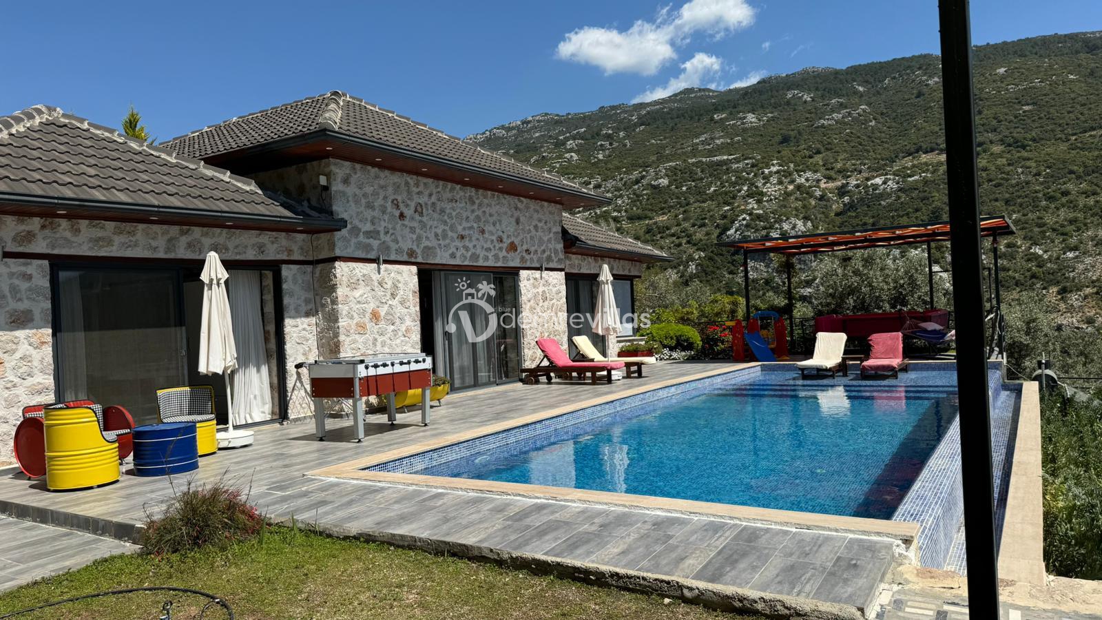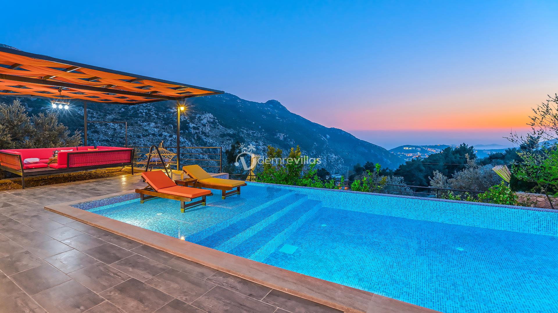 Villamız, Kalkan İslamlar bölgesinde bulunan 2 yatak odalı 5 kişilik özel yüzme havuzlu muhafazakar villamız harika doğa ve panoramik deniz manzarasına sahiptir.
