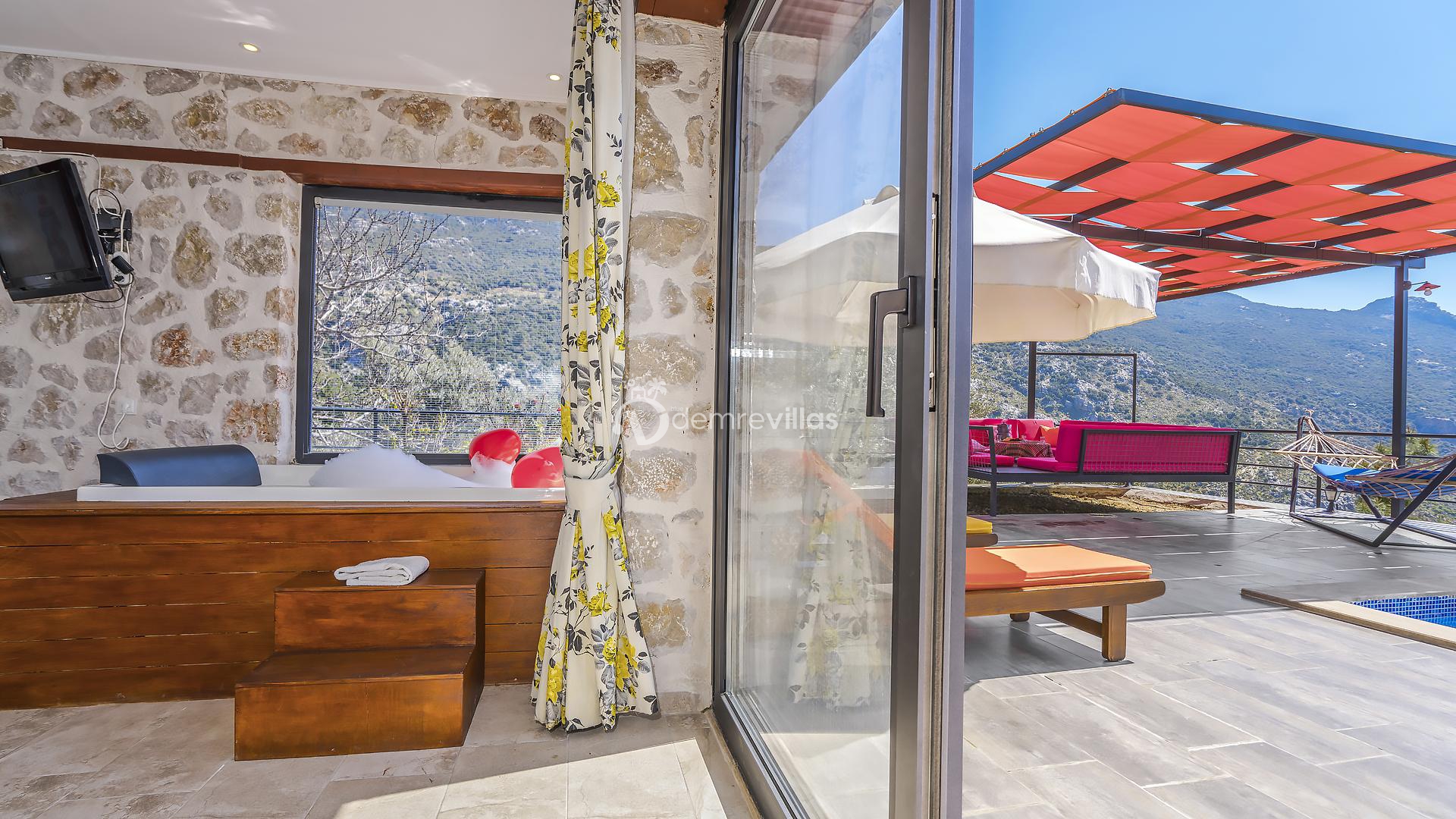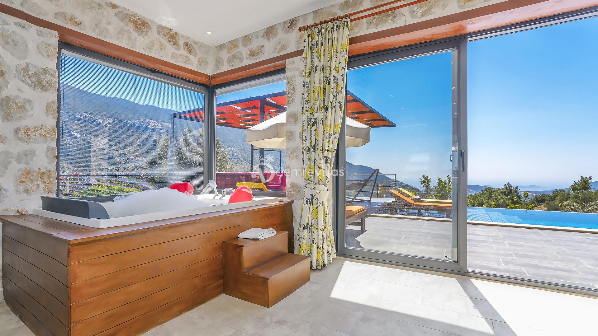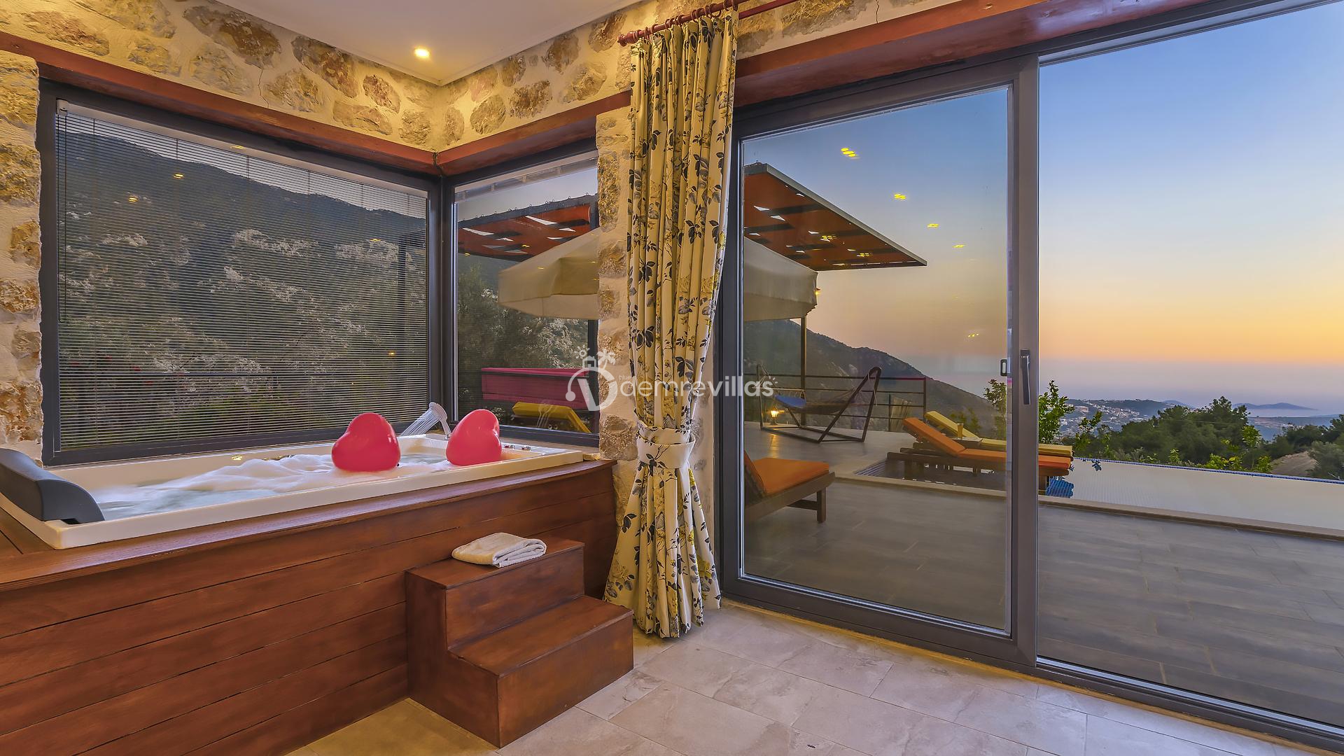 Kalkan merkeze 6 km mesafede bulunmakta olup kolay bir ulaşım imkanı sunmaktadır. Villamız da masa tenisi ve yatak odasında jakuzi bulunmaktadır.