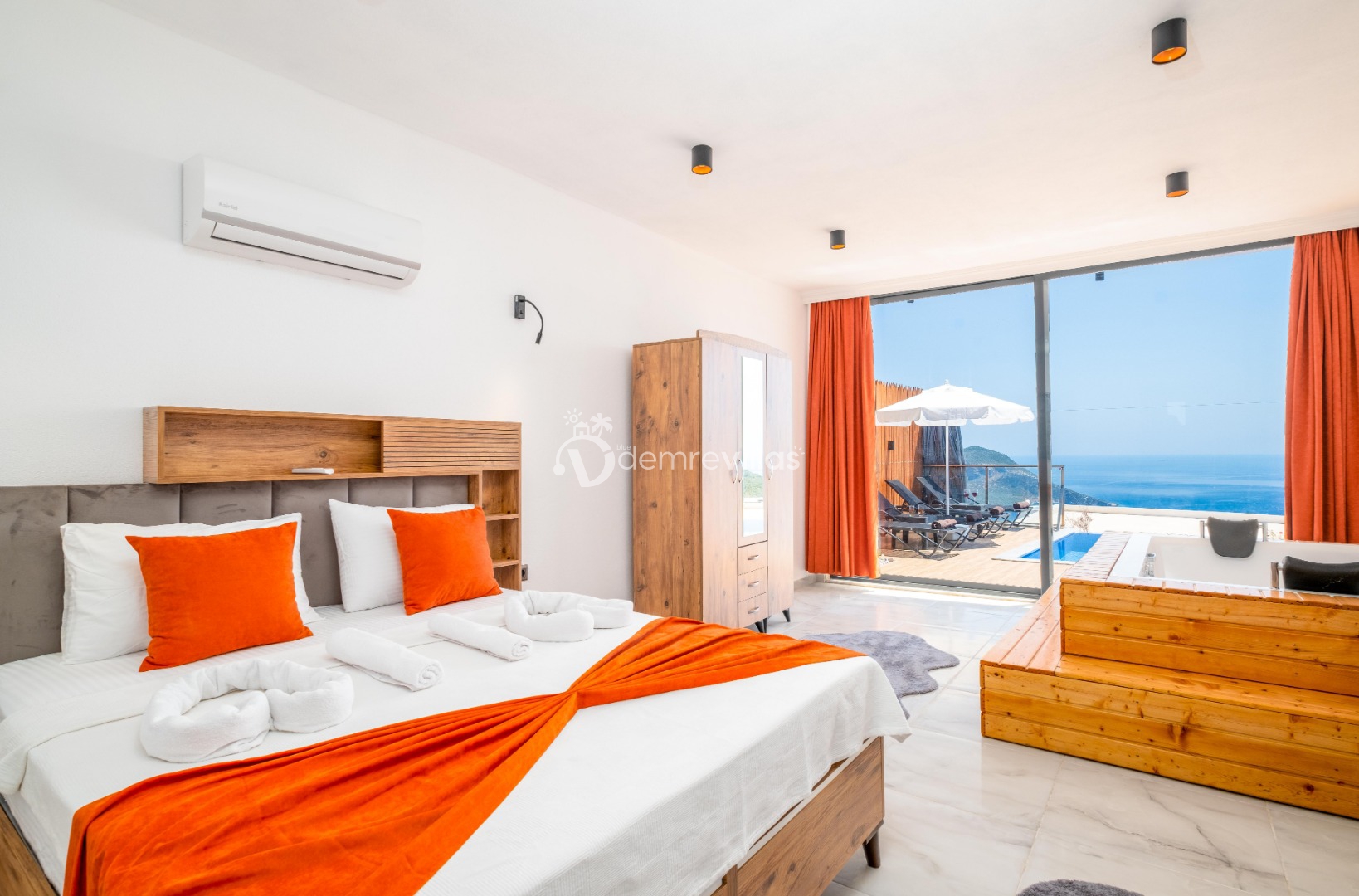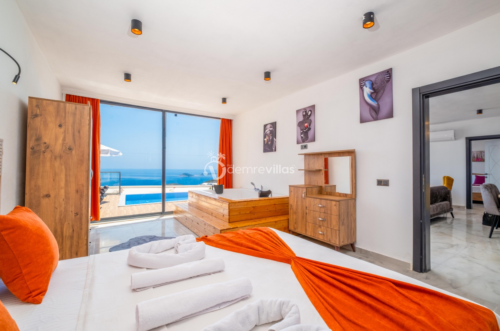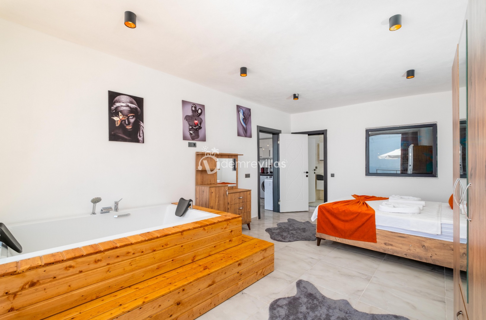 Çift kişilik yatak odasında, deniz manzarasına karşı keyifli dakikalar geçirebileceğiniz bir adet jakuzi bulunmaktadır. Ailelerin ve balayı çiftlerinin tercihleri arasında yer alan villamızda siz değerli misafirlerimizin güzel bir tatil geçirmesini diliyoruz.