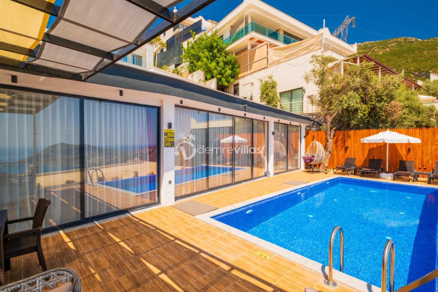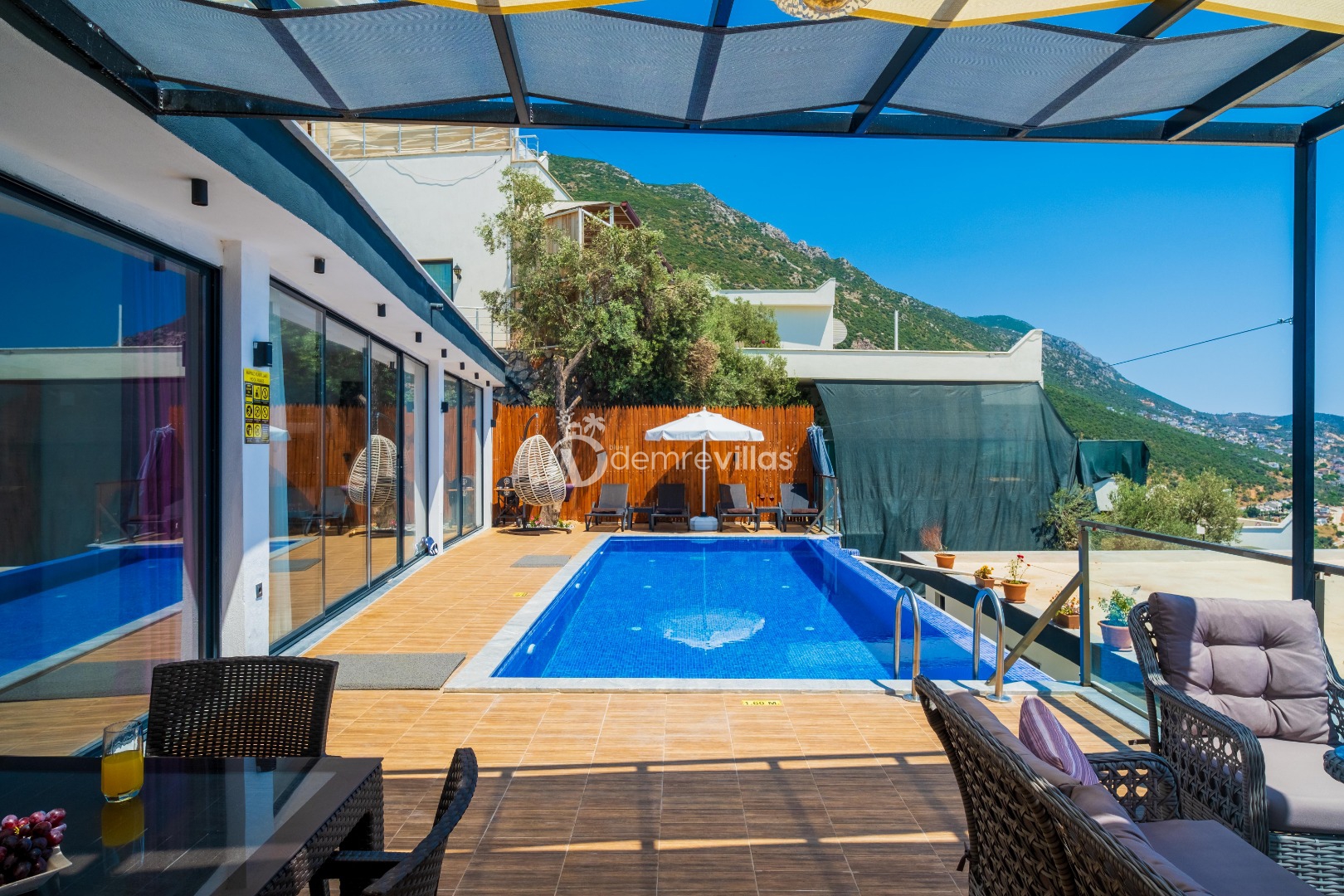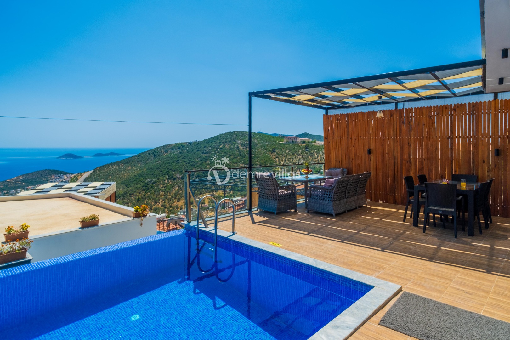 Kalkan islamlar Akbel merkezi konumuna yakın, lüks ve deniz manzaralı bir villadır. Havuz terasında mangal alanı, yemek masası ve rahat şezlonglar bulunmaktadır.