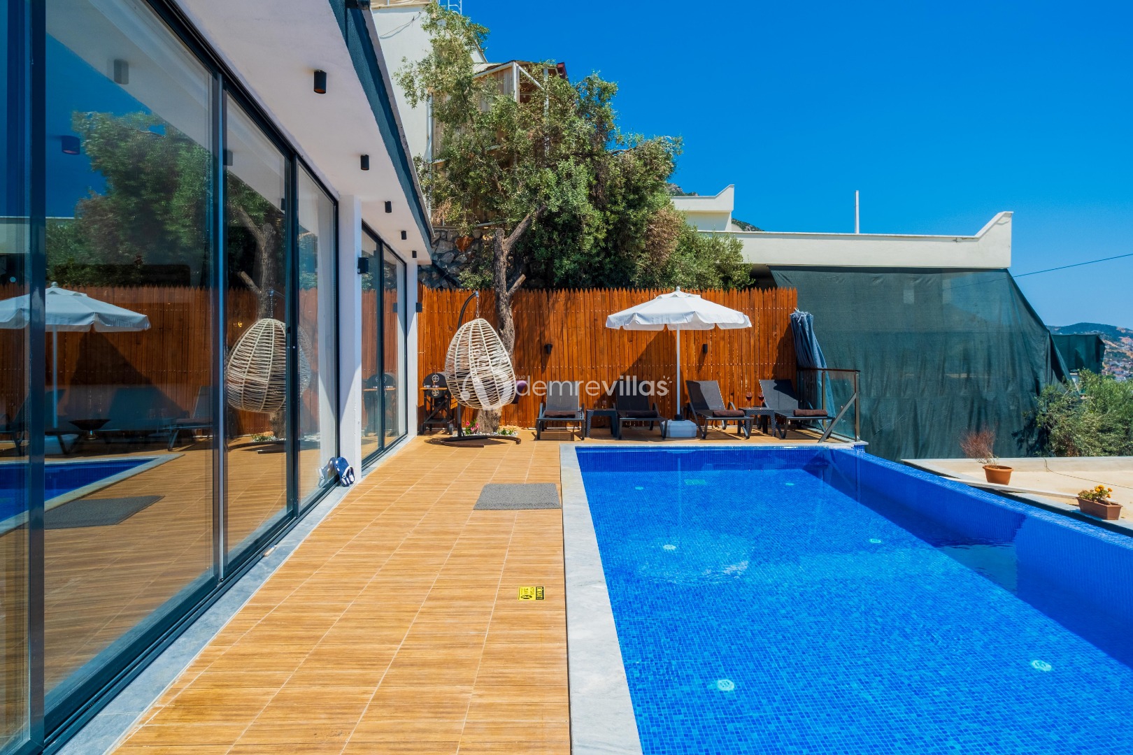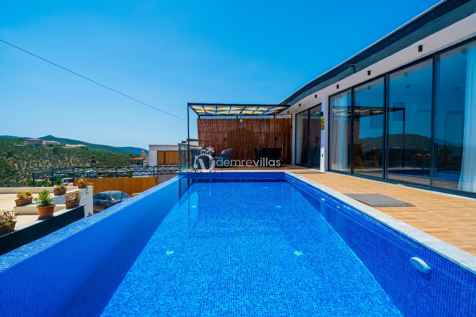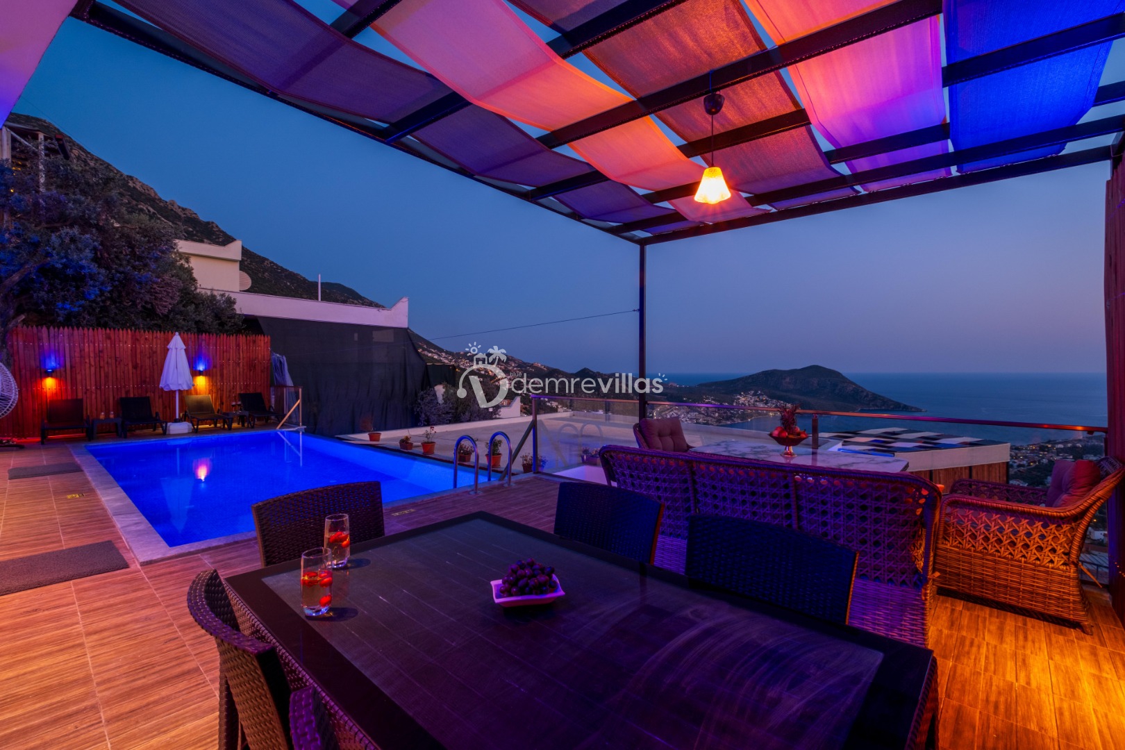 Kalkan islamlar Akbel merkezi konumuna yakın, lüks ve deniz manzaralı bir villadır. Havuz terasında mangal alanı, yemek masası ve rahat şezlonglar bulunmaktadır.