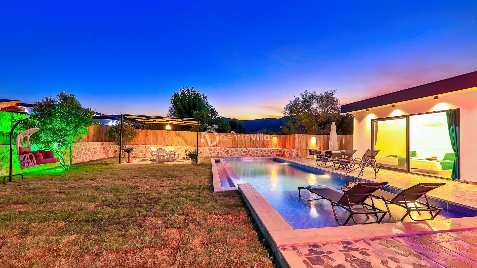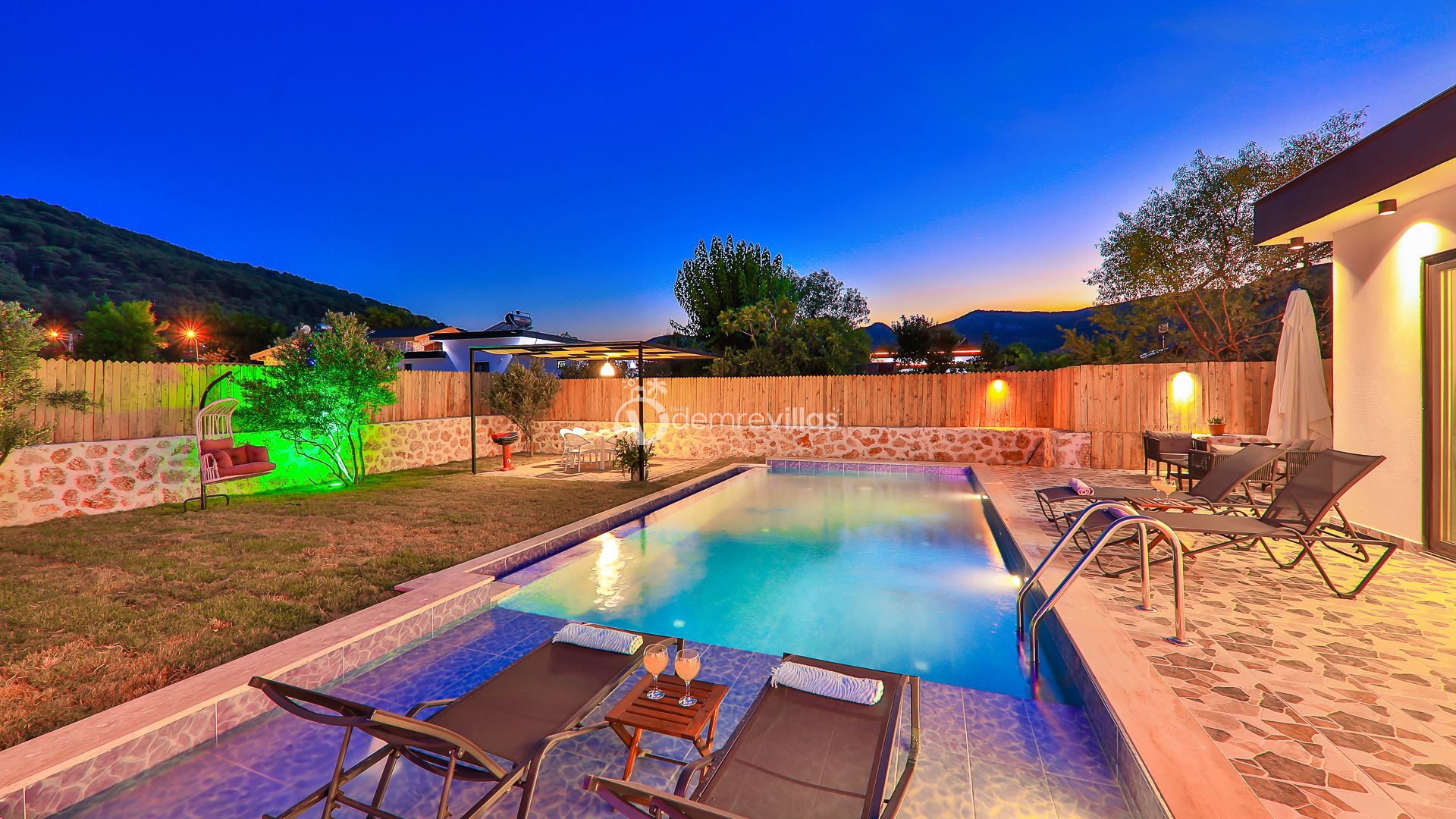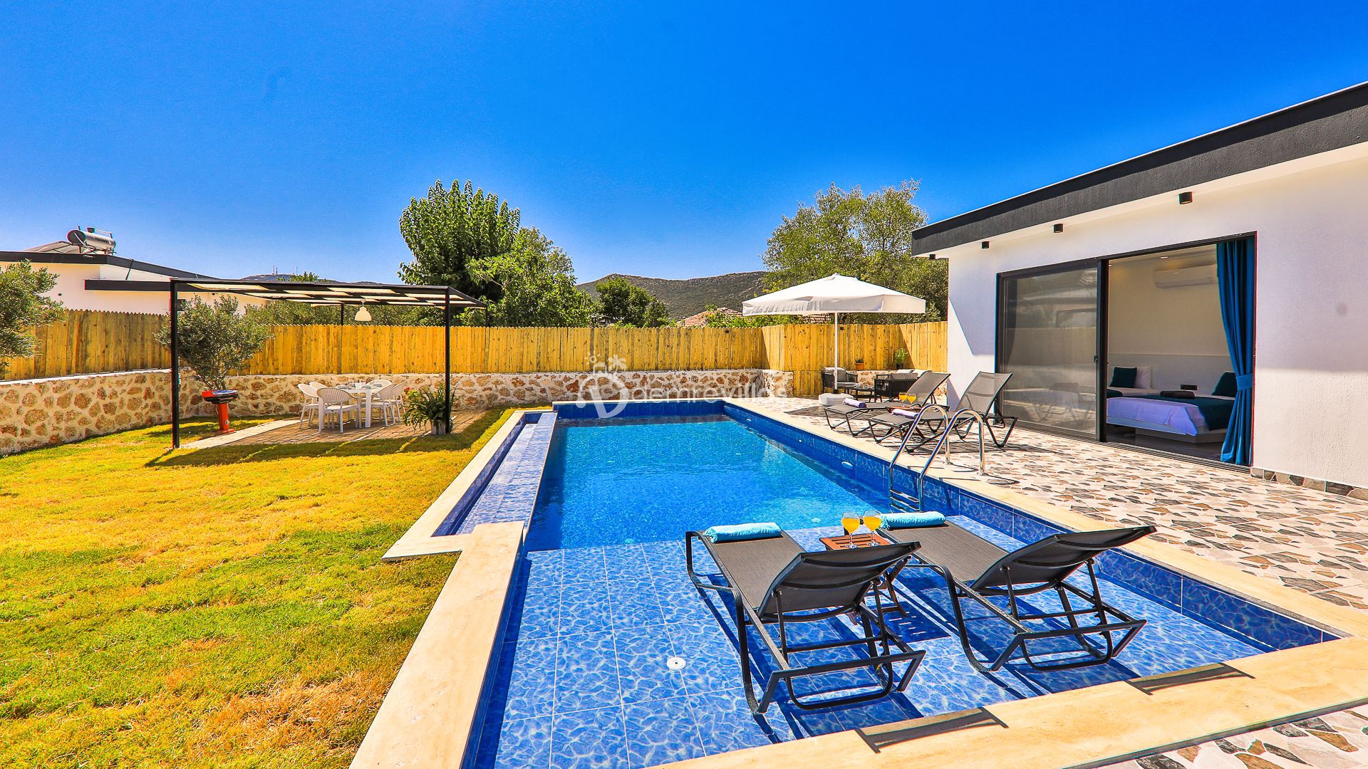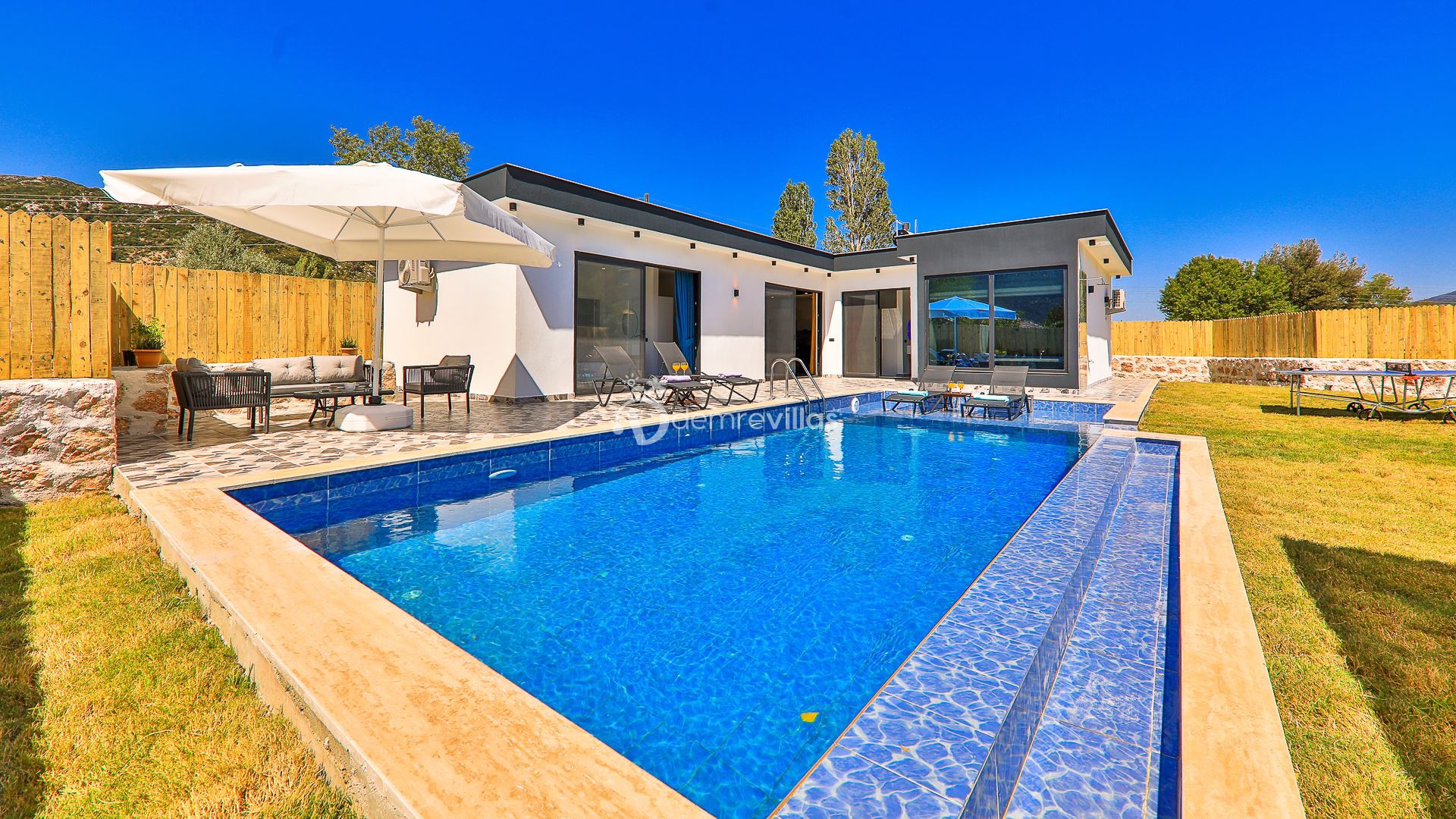 Kiralık Tatil Villamızın havuz ve havuz çevresi korunaklı olup, Muhafazakar tatil arayışında olan değerli misafirlerimiz için ideal eşsiz bir tatil imkanı sunuyor.