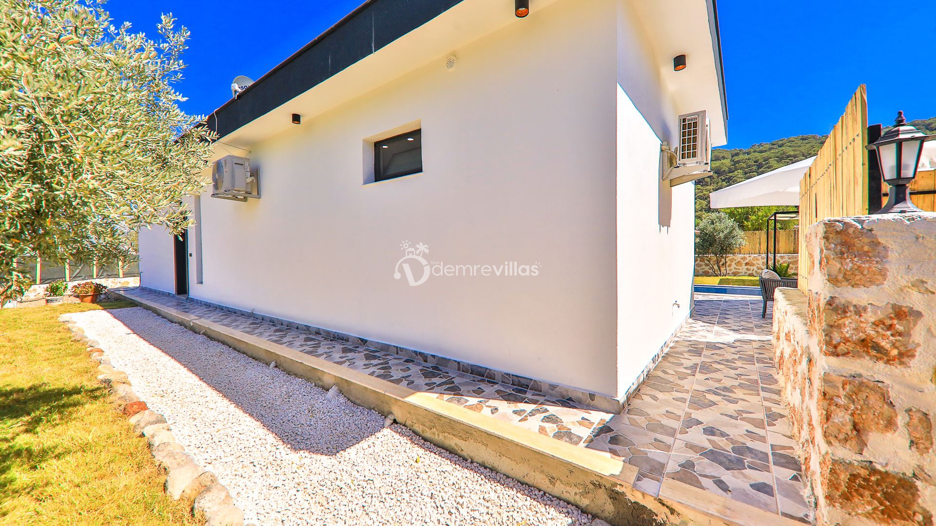 Coğrafi yapısı bakımında dağlık bir alana sahip olan bölgemizdeki villalarımız genel olarak yamaç üzerine kuruludur. Bu nedenle villalarımıza giderken yokuş yukarı çıkılmaktadır. Bu not sadece bu villa ile ilgili değildir. Tüm villalarımızda yazmaktadır.