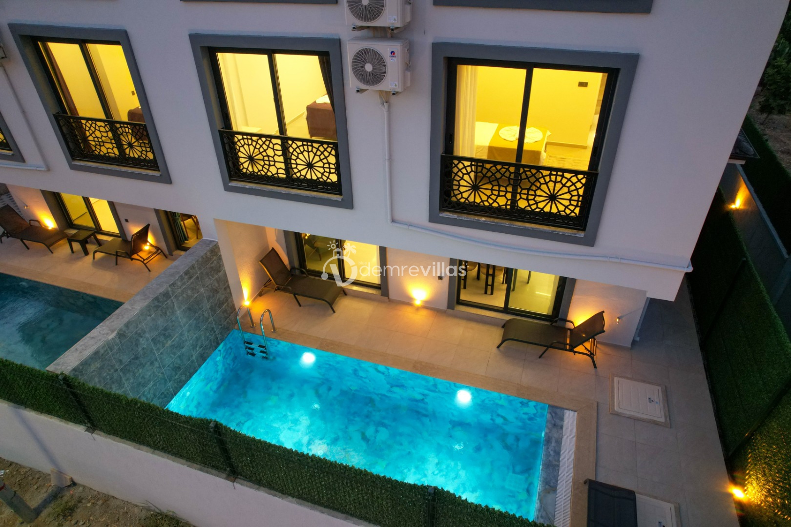 Doğa içerisinde yer alan villalarımızın tamamı böcek, sinek, kelebek, haşereler vb. için düzenli olarak ilaçlanmaktadır. Doğa içerisinde konuma sahip olan villalarda, merkezde yer alan villalara nazaran böcek, sinek, kelebek, haşereler vb. çıkma ihtimali daha yüksektir. Bu not sadece bu villa ile ilgili değildir. Doğa içerisinde konuma sahip olan tüm villaların bilgilerinde yazılmaktadır.