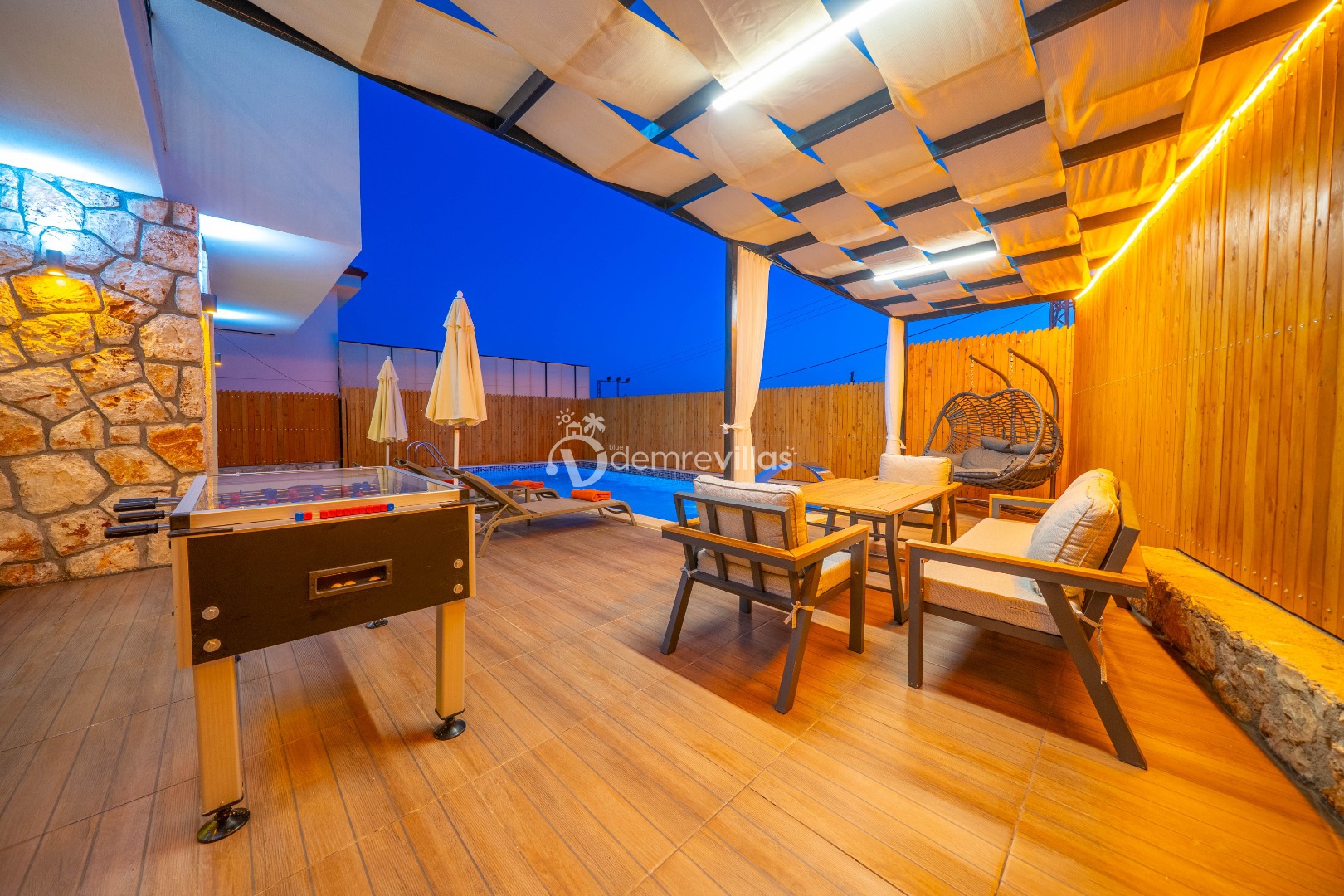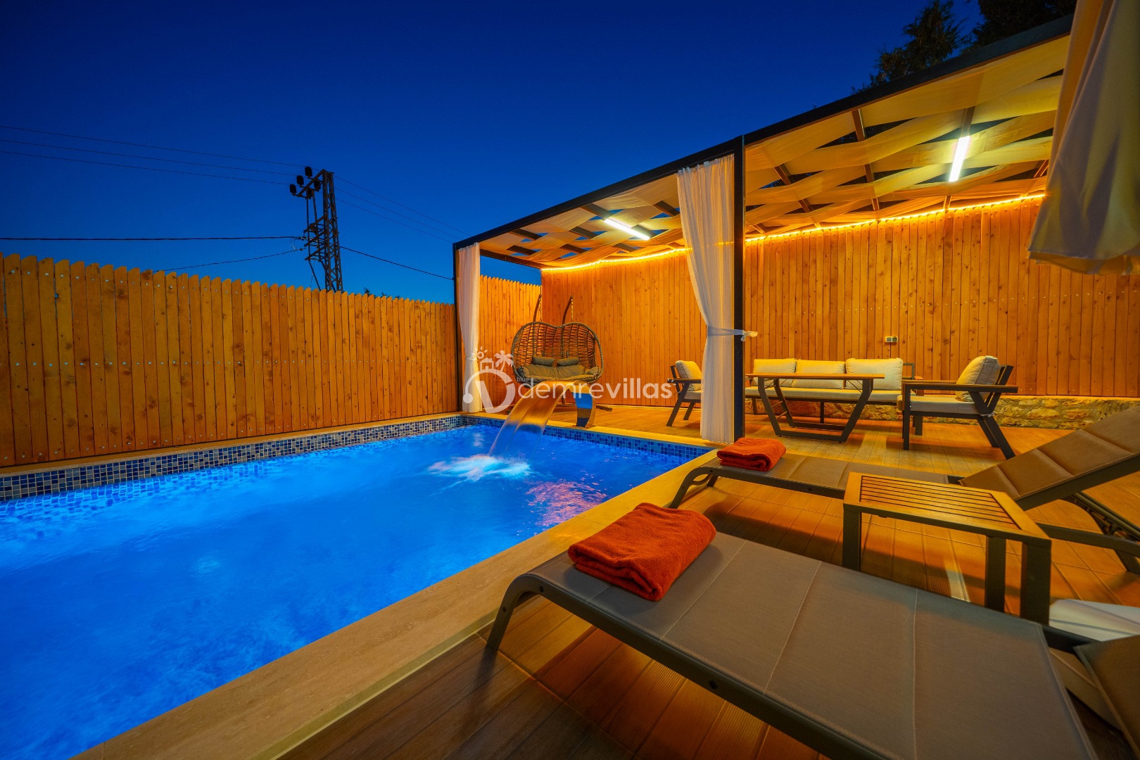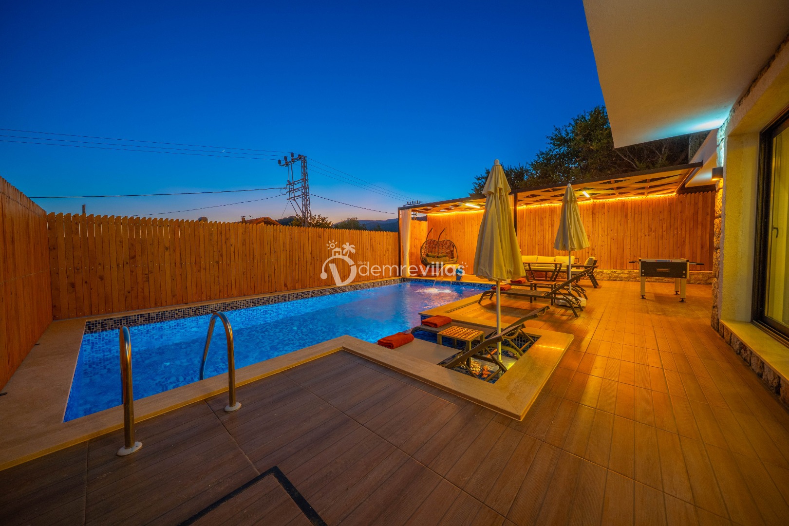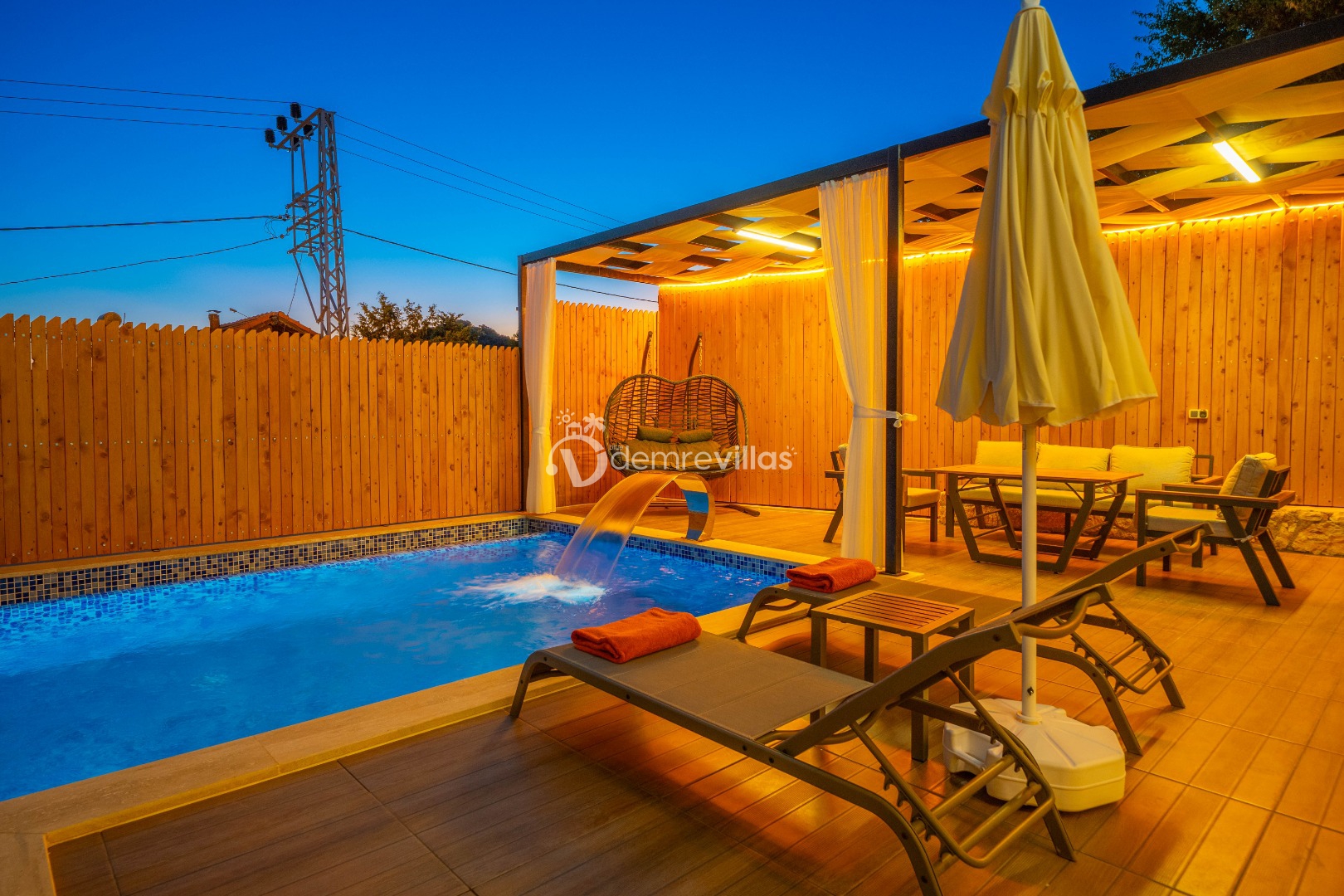 Kaş Bayındır'da 4 kişilik kapasitesiyle doğa içerisinde konumlanmış, huzur ve konforu bir arada sunan özel bir tatil villasıdır. Yeşillikler arasında yer alan villada, doğa manzarası eşliğinde sakin bir atmosferde konaklayabilir, jakuzide dinlenip bahçedeki salıncakta keyifli anlar yaşayabilirsiniz.