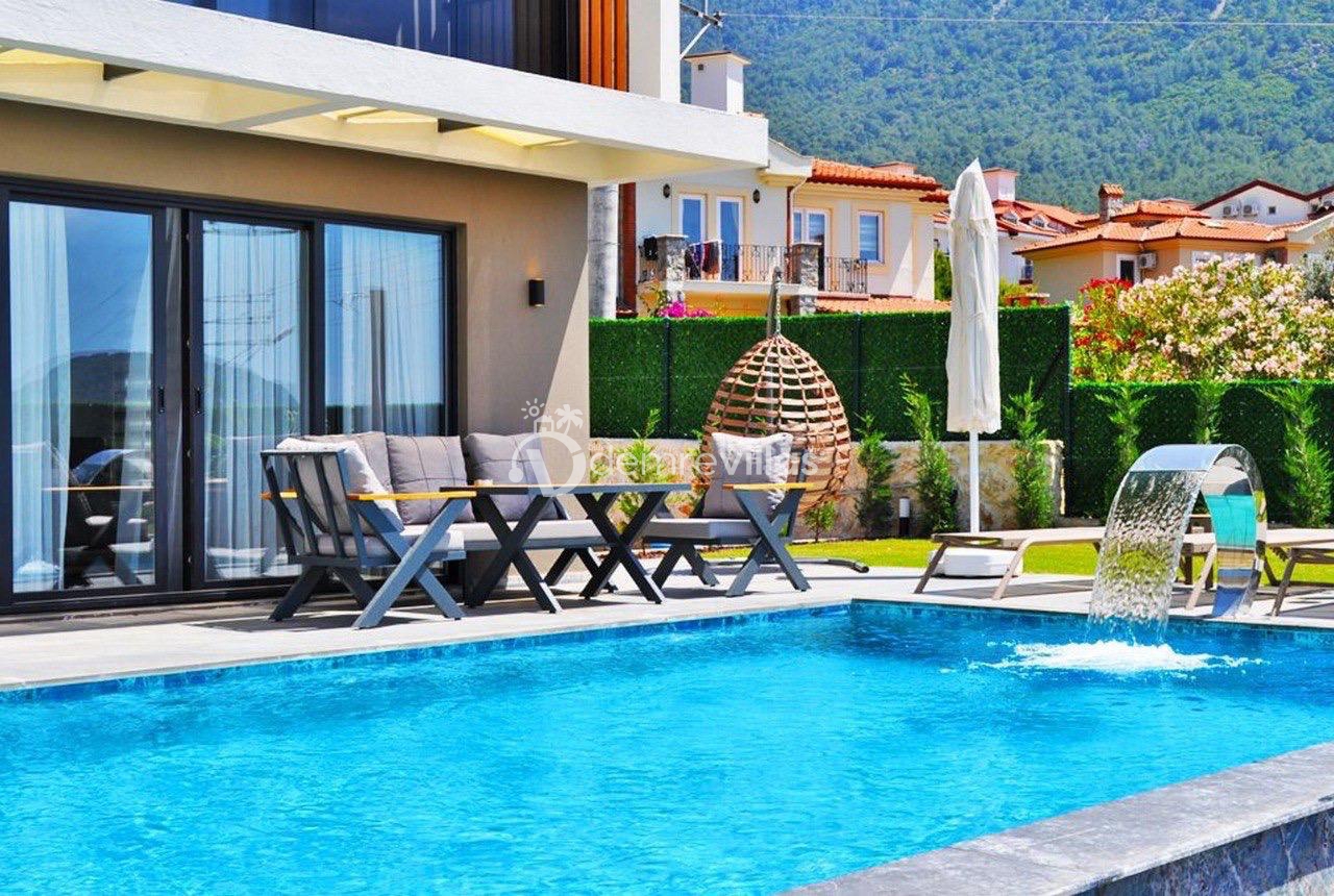 Fethiye Ölüdeniz bölgesinde bulunan villamız lüks ve modern bir mimariye sahiptir. Ovacık bölgesinin yem yeşil manzarası ile beraber kısmı ölüdeniz manzarasını da aynı anda sizlere yaşatma imkanı sunmaktadır. 3 yatak odasından oluşup 6 kişi konaklama kapasitesine sahip olan villamızın en üst katında ki master süit yatak odasın da jakuzi ve sauna yer almaktadır. Dünyaca ünlü meşhur Ölüdeniz plajına sadece 4 km mesafede bulunan villamız siz tatil severler için hizmete açılmıştır.
