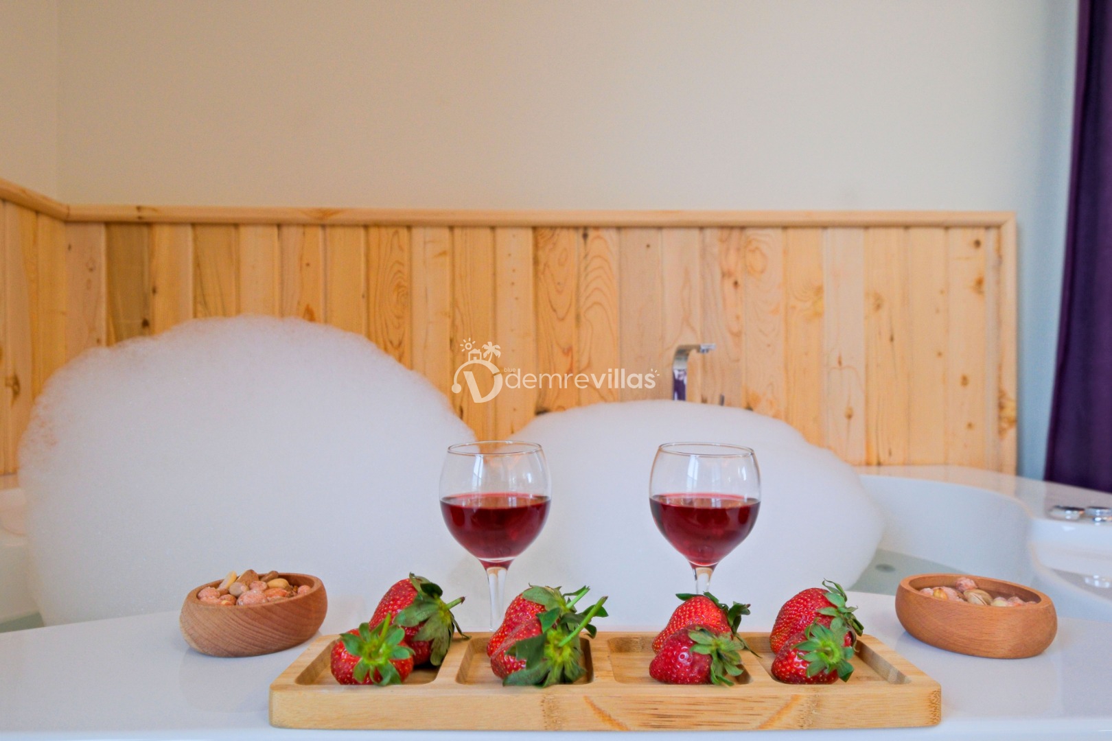 Coğrafi yapısı bakımında dağlık bir alana sahip olan bölgemizdeki villalarımız genel olarak yamaç üzerine kuruludur. Bu nedenle villalarımıza giderken yokuş yukarı çıkılmaktadır. Bu not sadece bu villa ile ilgili değildir. Tüm villalarımızda yazmaktadır.