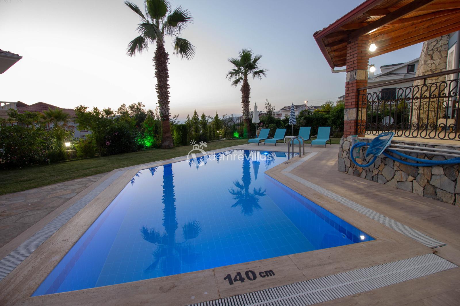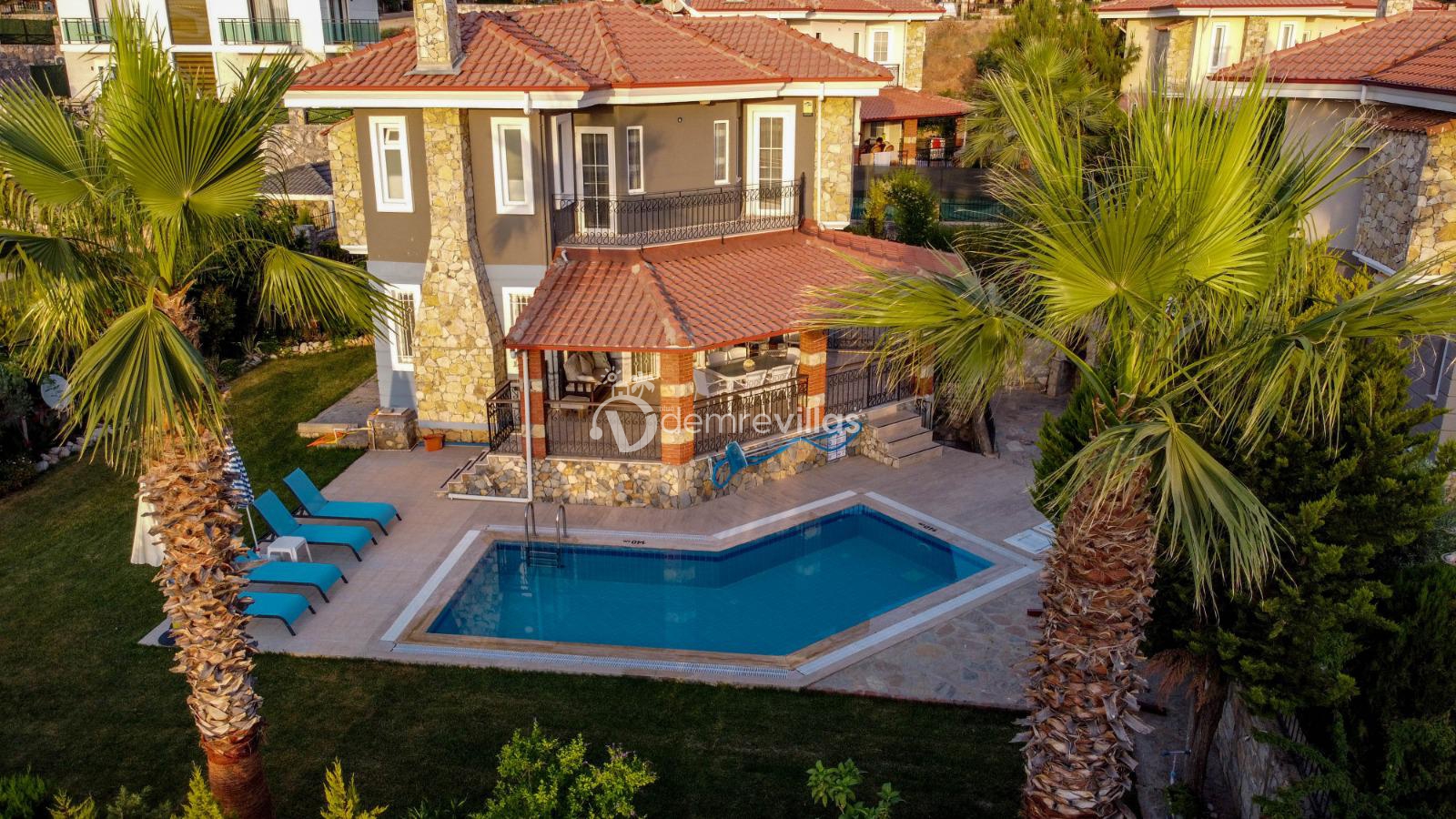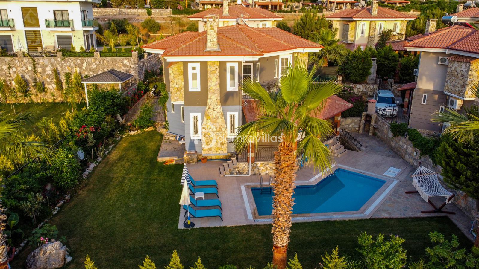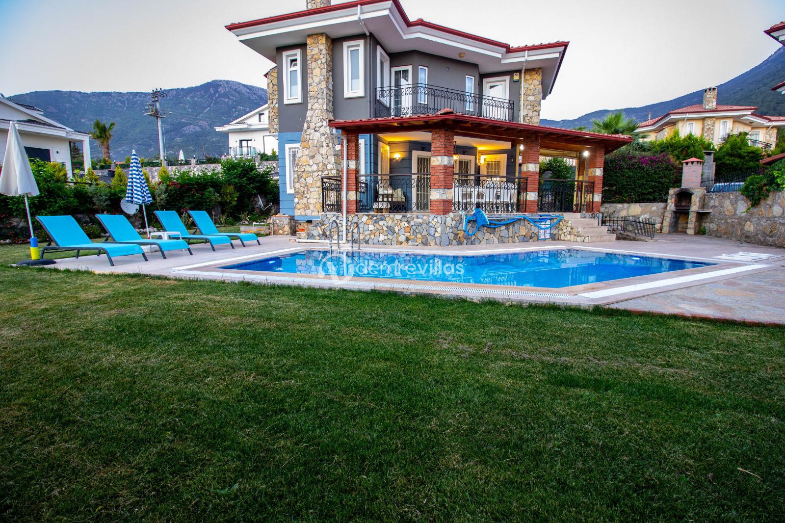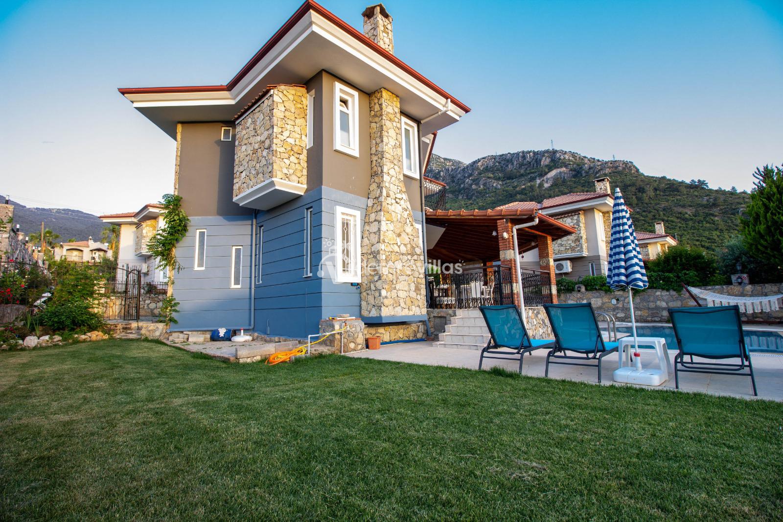 Fethiye Ölüdeniz'de bulunan 3 yatak odalı ekstra konabilecek park yatak ile 7 kişiye kadar konaklama imkanı sağlayan Ölüdeniz plajına 3 km mesafede bulunan villamızdır. Geniş havuzu seçeneği ile kalabalıktan uzaklaşmak isteyenler için doğa manzarası ile harika bir tatil imkanı sunmaktadır. Ailenizle birlikte şehrin gürültüsünden ve iş hayatının yorgunluğundan uzaklaşıp Ölüdeniz'de huzur bulmak isteyenler için eşsiz bir deneyim imkanı sunacaktır.