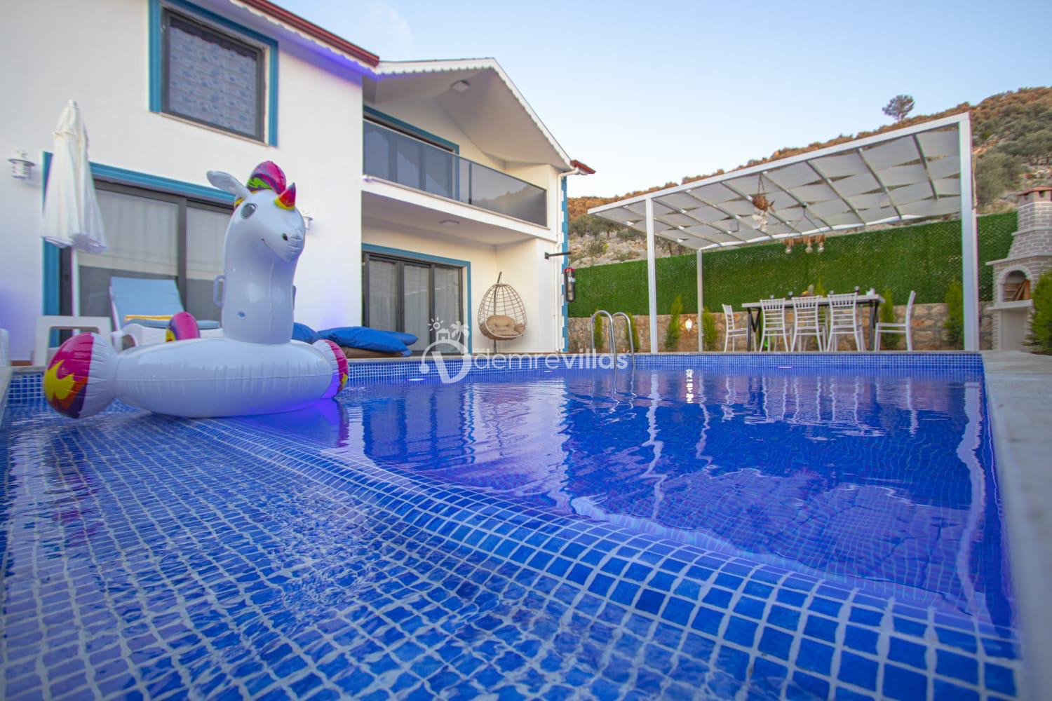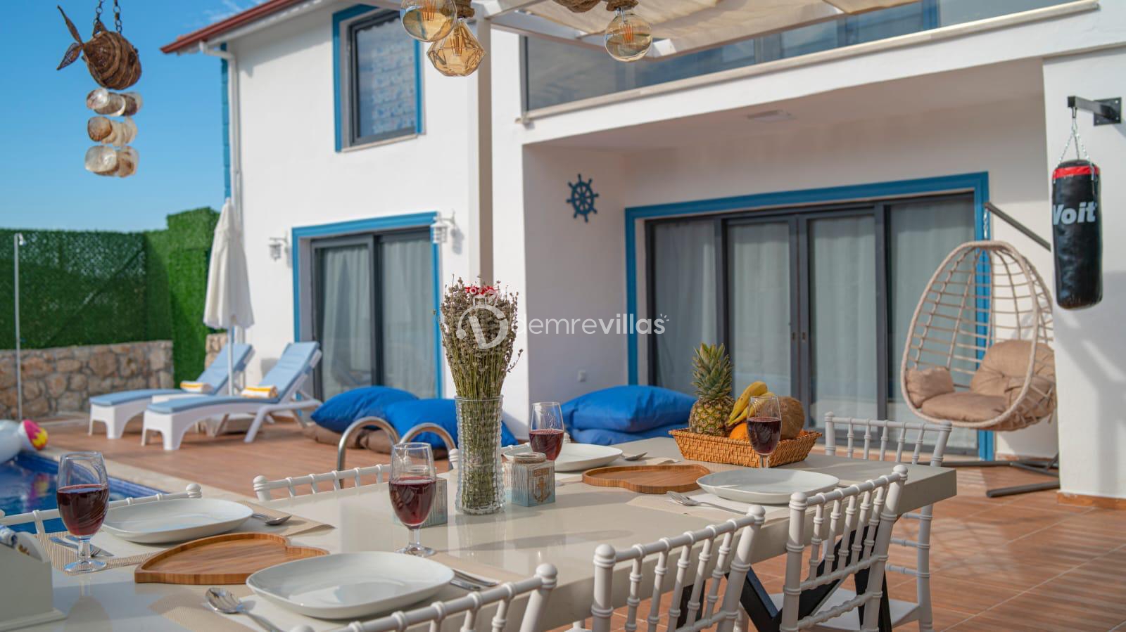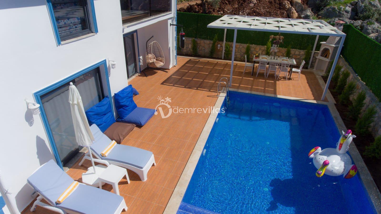 Kalkan'ın Bezirgan Ulugöl Mevkiinde yer almakta olan geniş ve lüks bir tatil villasıdır. Toplamda 4 yatak odası bulunan villamız, 8 kişi konaklama kapasitesine sahiptir, bu yüzden geniş aileler için ideal bir seçenektir.