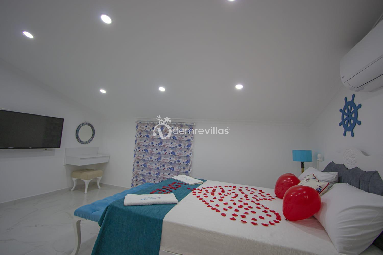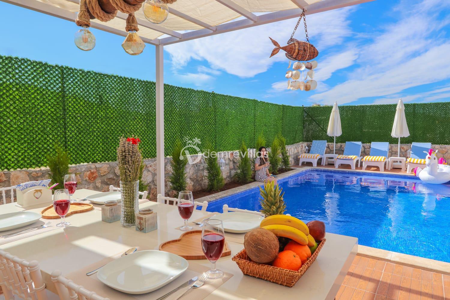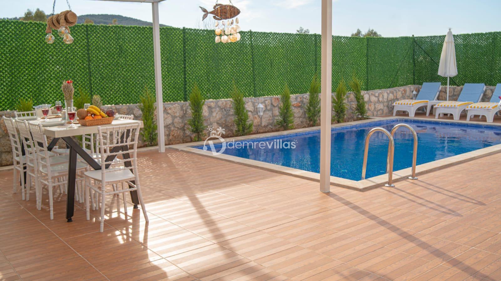 Kalkan'ın Bezirgan Ulugöl Mevkiinde yer almakta olan geniş ve lüks bir tatil villasıdır. Toplamda 4 yatak odası bulunan villamız, 8 kişi konaklama kapasitesine sahiptir, bu yüzden geniş aileler için ideal bir seçenektir.