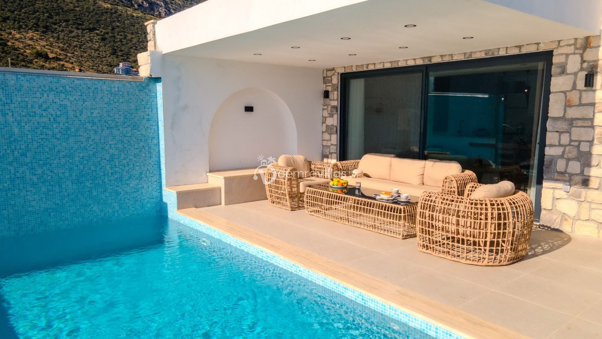 Kaş Gökçeören mevkiinde konumlanan özel havuzu tam korunaklı balayı villamızdır.