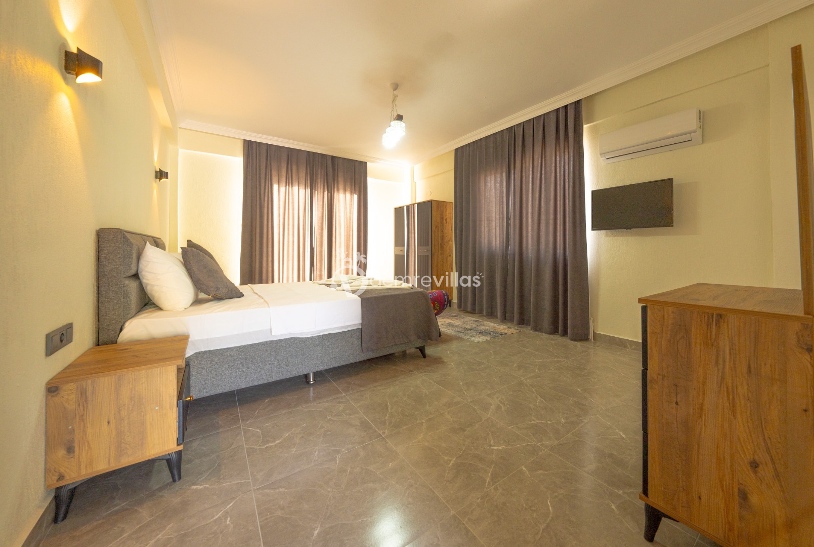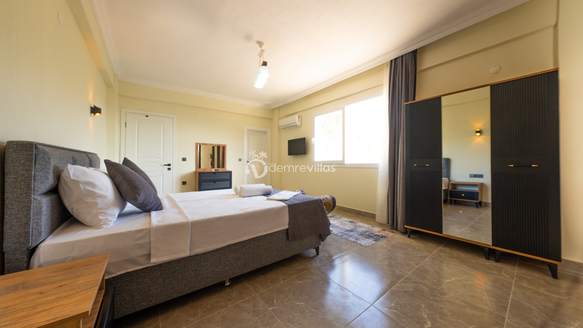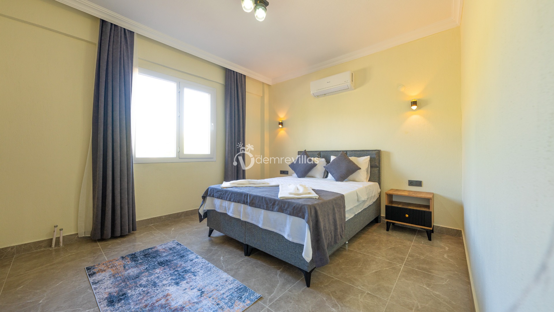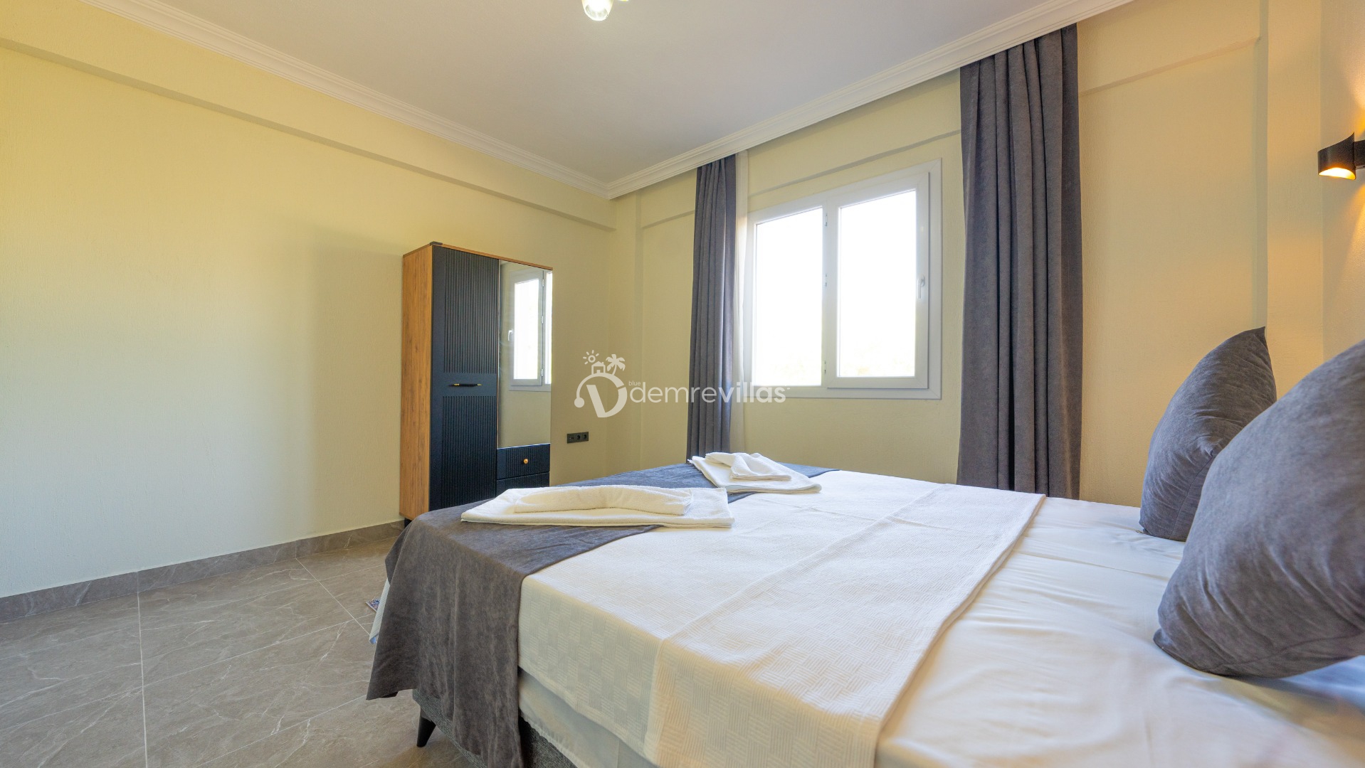 2. Yatak Odası: Çift kişilik yatak, klima, komodin, giysi dolabı. Bu odanın banyosu ortak kullanım alanındadır.