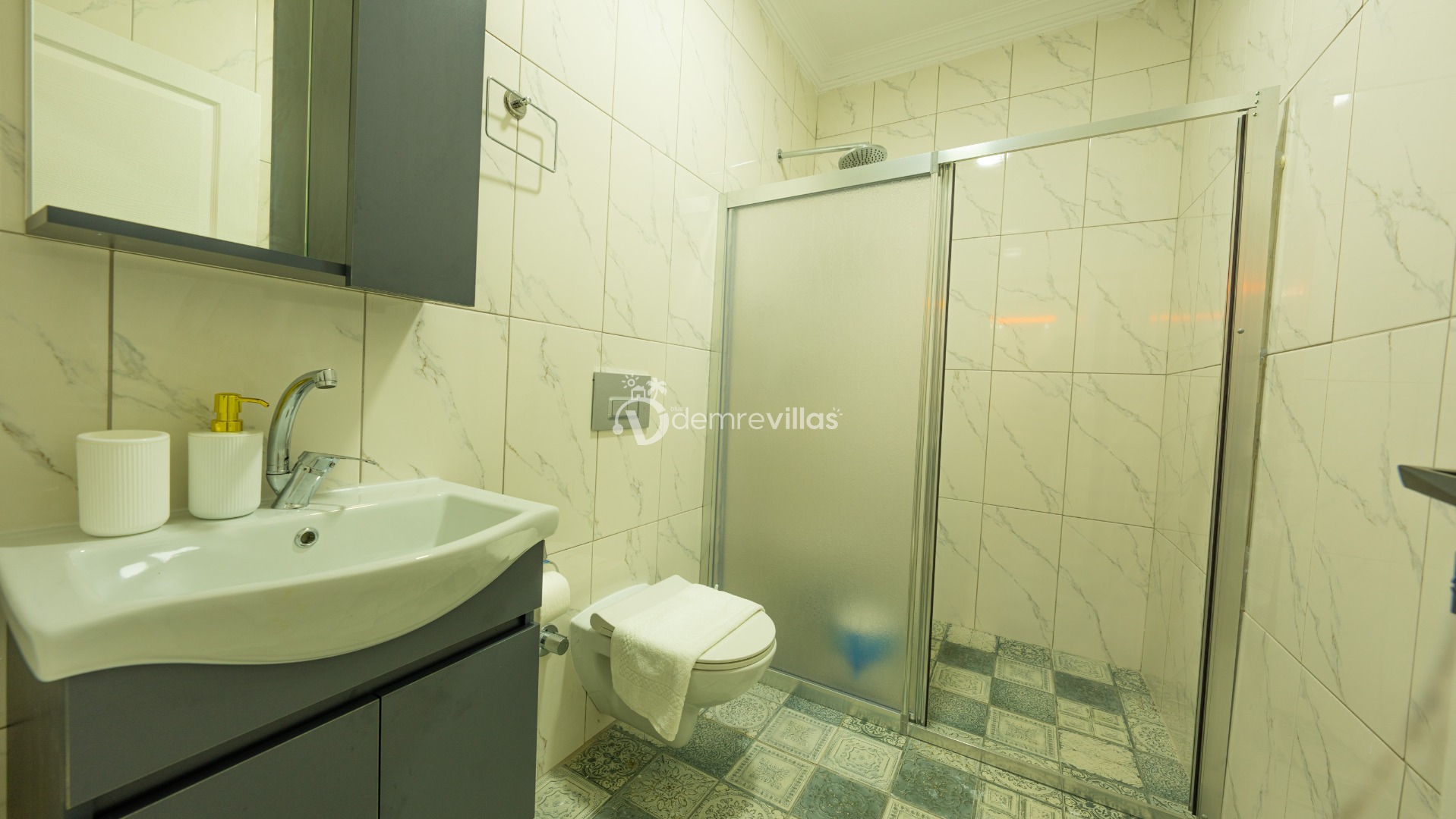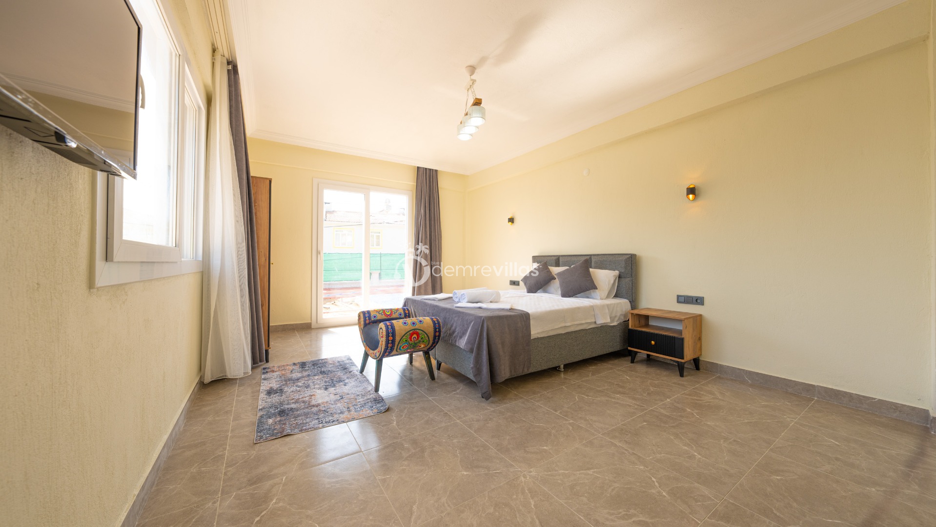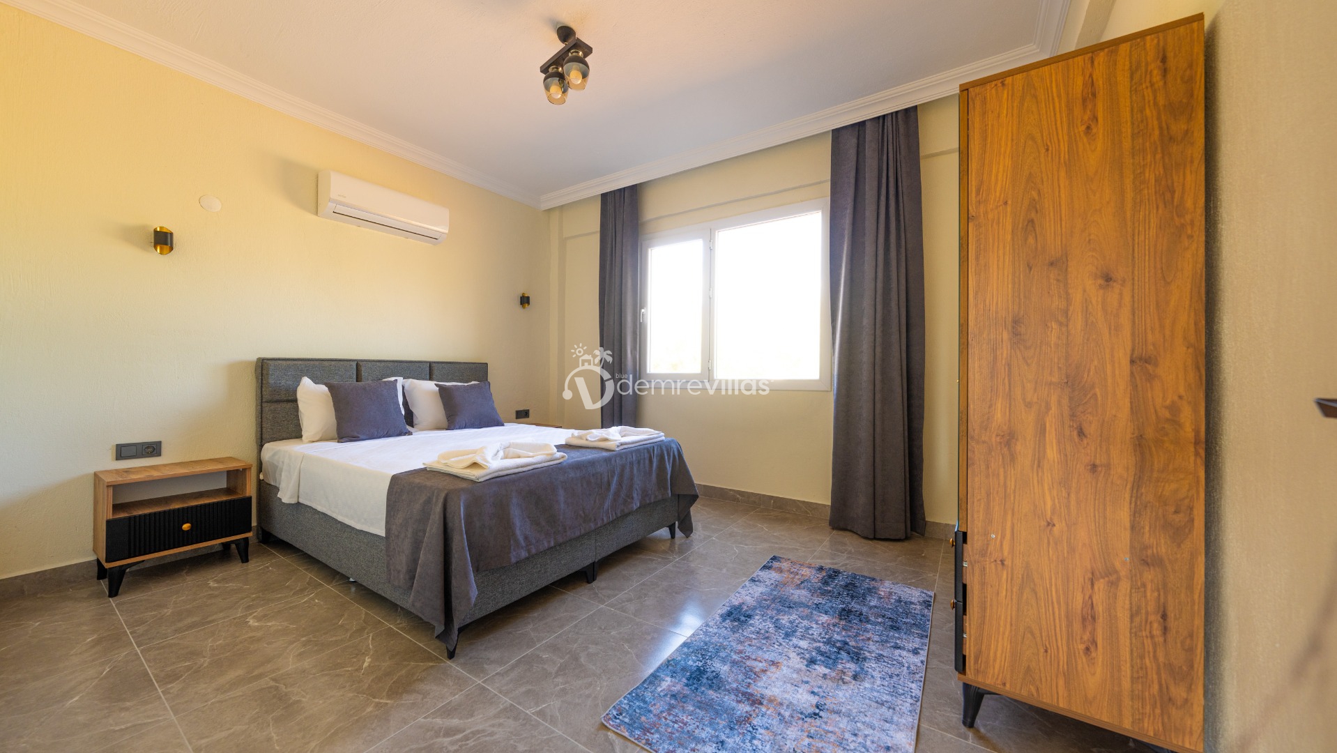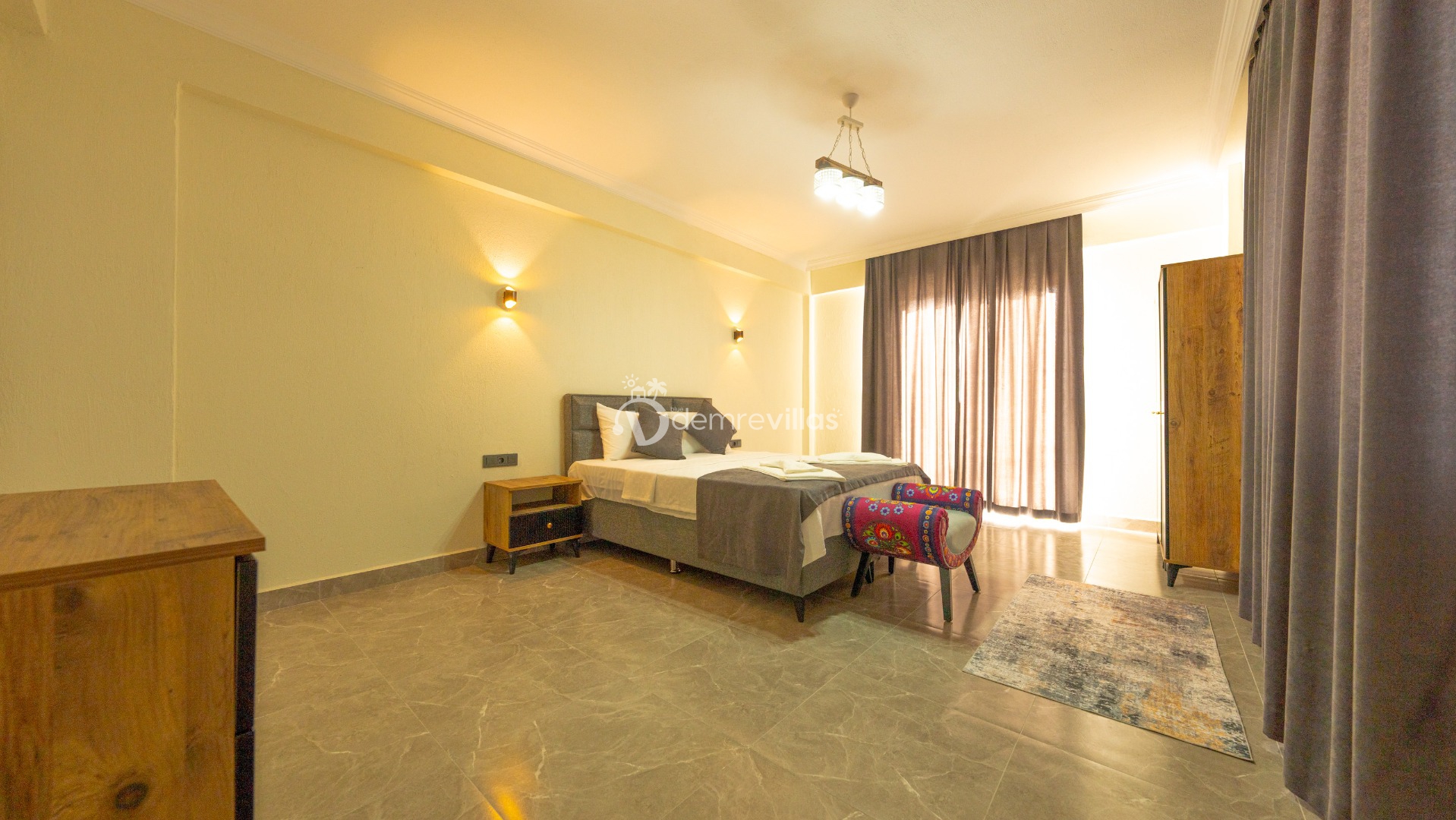 2. Yatak Odası: Çift kişilik yatak, klima, komodin, giysi dolabı. Bu odanın banyosu ortak kullanım alanındadır.