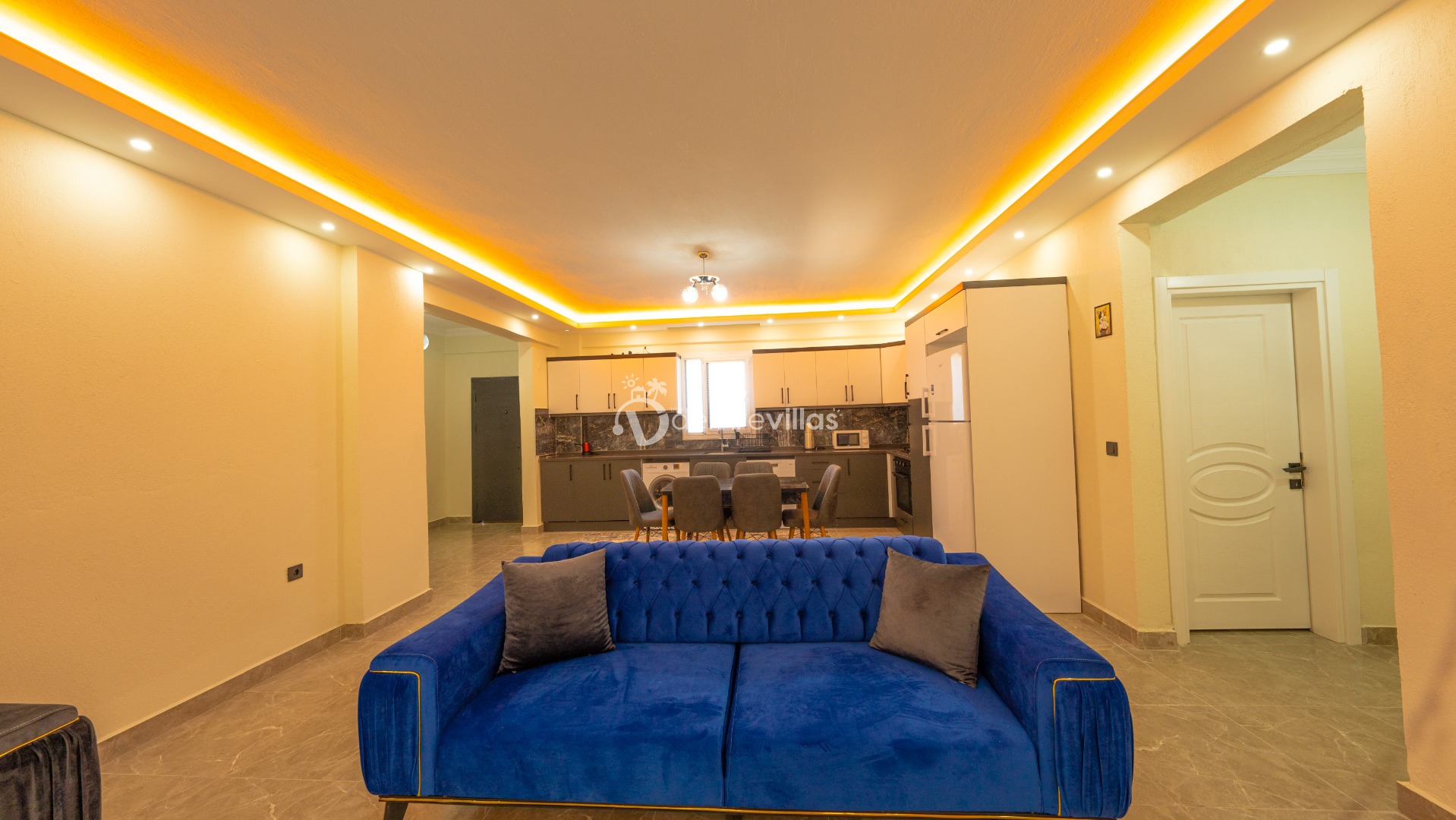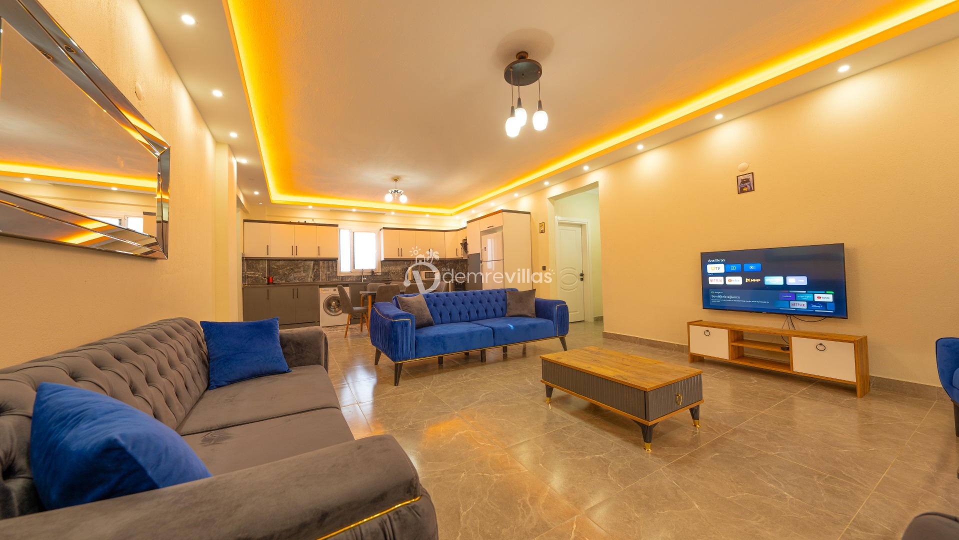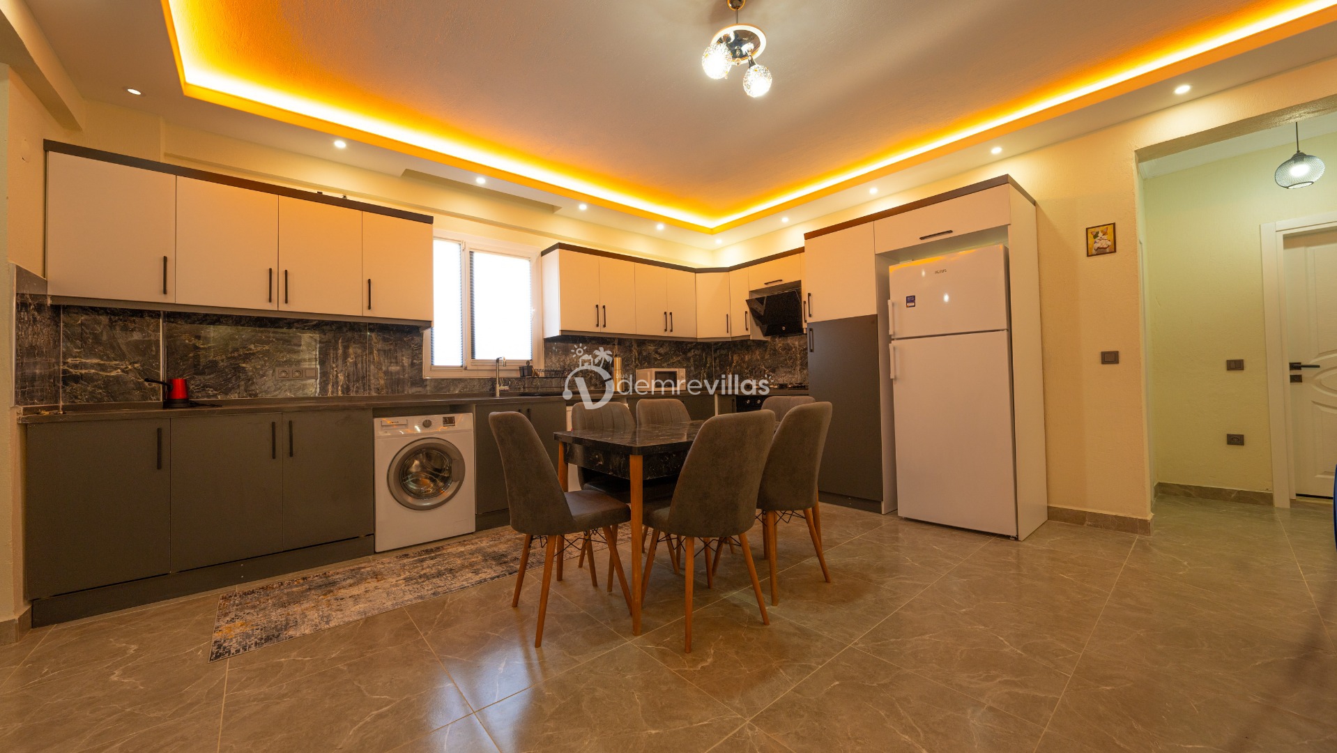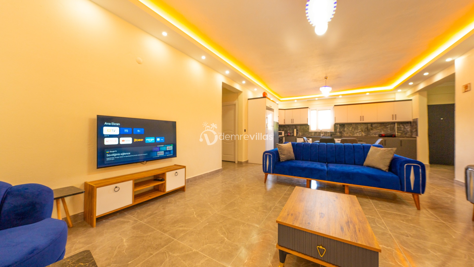 Villamızın salonu oldukça geniş ve ferah olup, misafirlerimize konforlu bir yaşam alanı sunmaktadır. Donanımlı mutfağımızda tost makinesi, su ısıtıcısı, mikrodalga fırın, Türk kahvesi makinesi ve 6 kişilik yemek takımı gibi tüm ihtiyaçlar düşünülerek hazırlanmıştır.