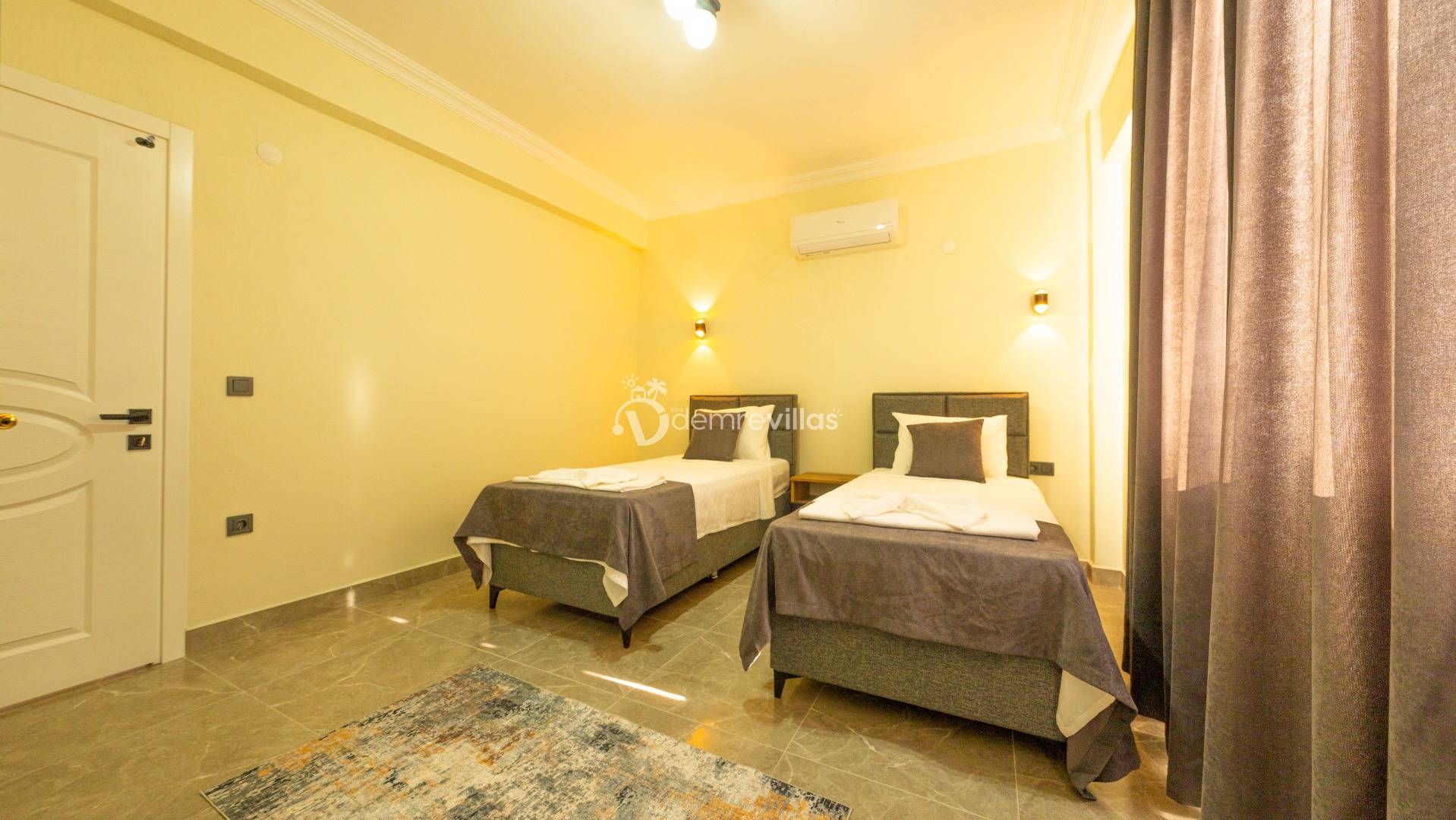 3. Yatak Odası: İki adet tek kişilik yatak, klima, komodin, giysi dolabı ve yine ortak kullanım banyosu bulunmaktadır.