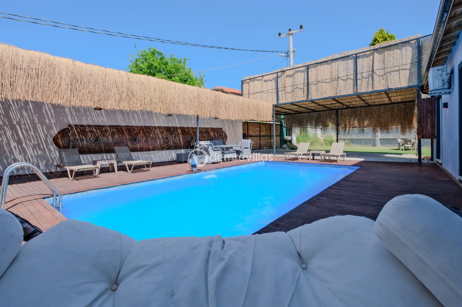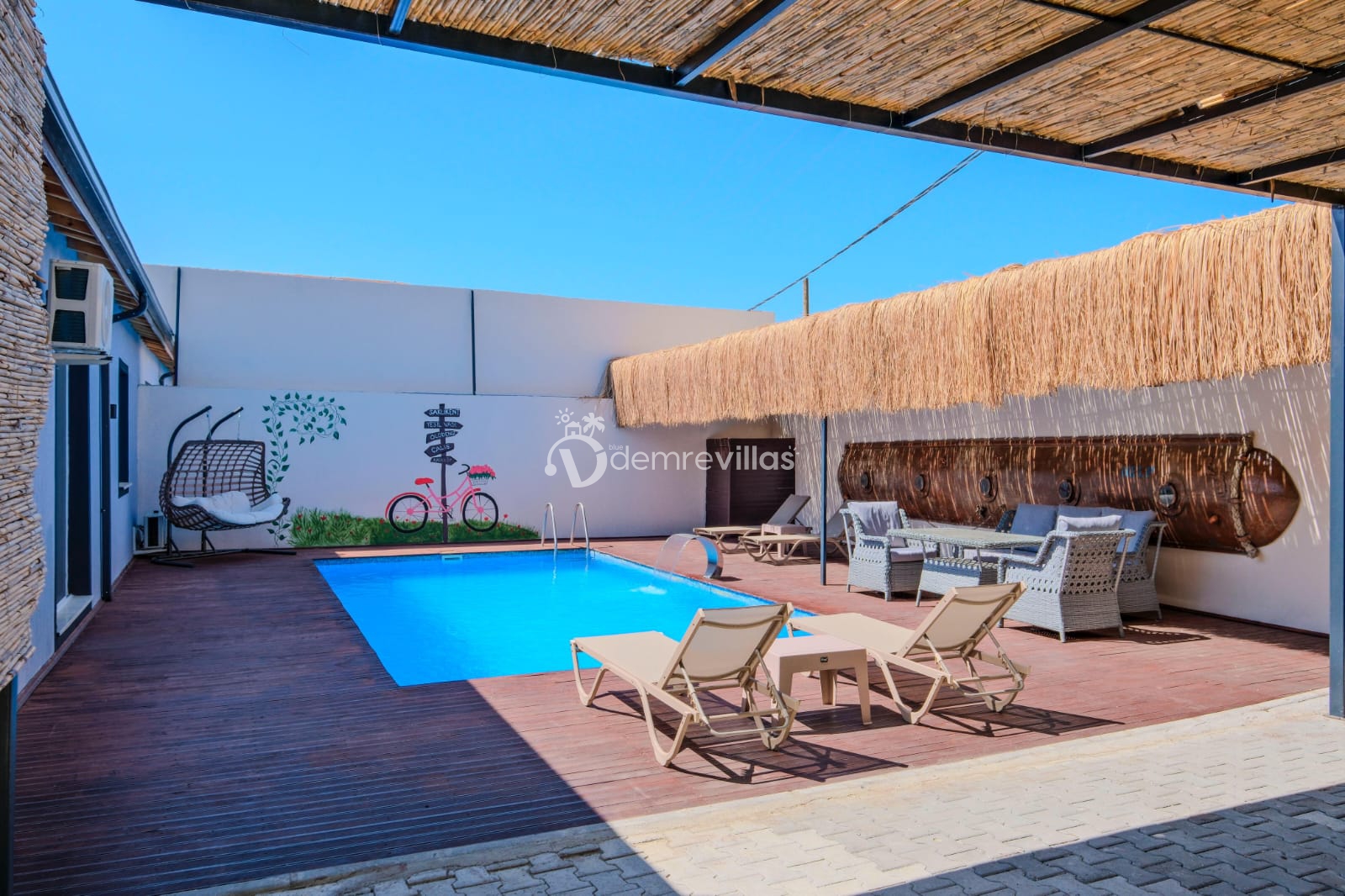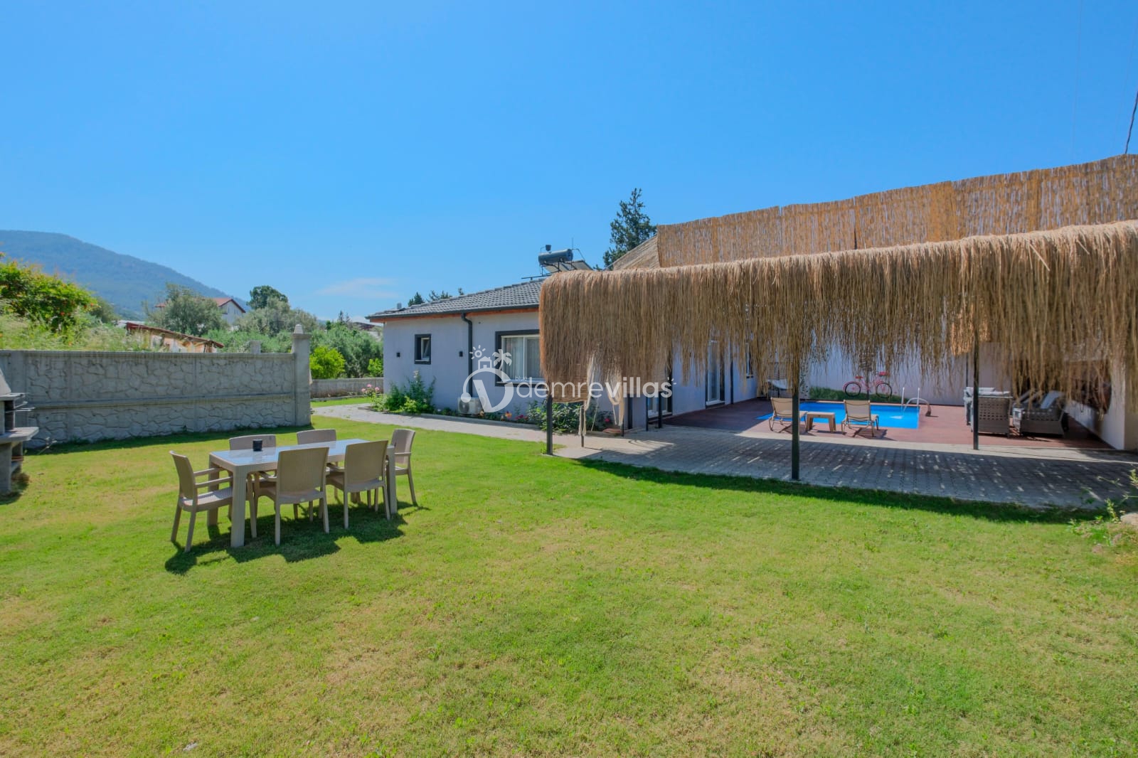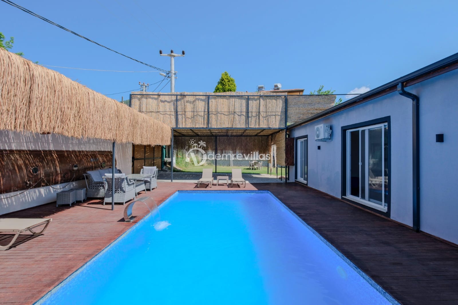 Geniş ve bakımlı bahçesiyle dikkat çeken villamızda, bahçe salıncağında dinlenebilir, doğanın tadını çıkarabilirsiniz. Özel yüzme havuzu sayesinde serinleyip rahatlayabilir, havuz kenarındaki şezlonglarda güneşin keyfini sürebilirsiniz. Küçük misafirlerimiz için özel olarak tasarlanmış çocuk oyun alanı da mevcuttur. Bu alanda çocuklar güvenle ve keyifle vakit geçirebilir.