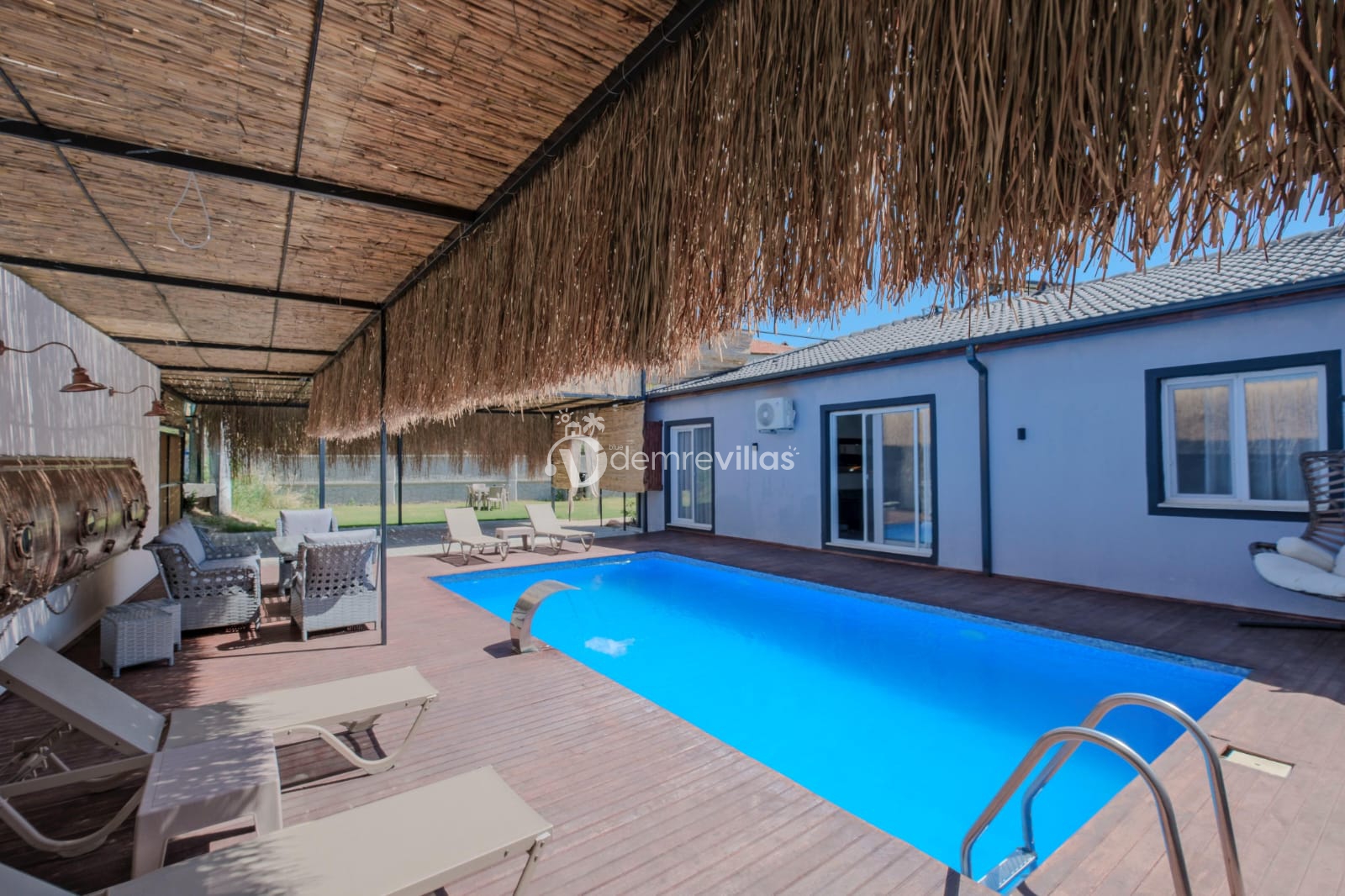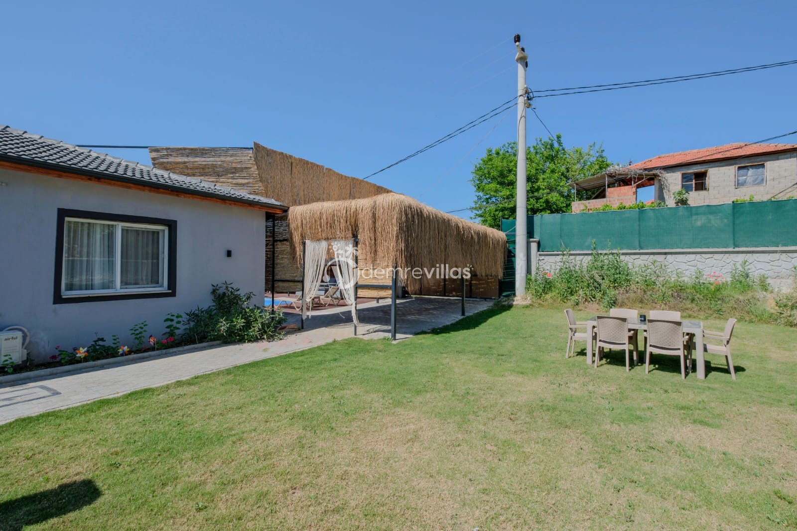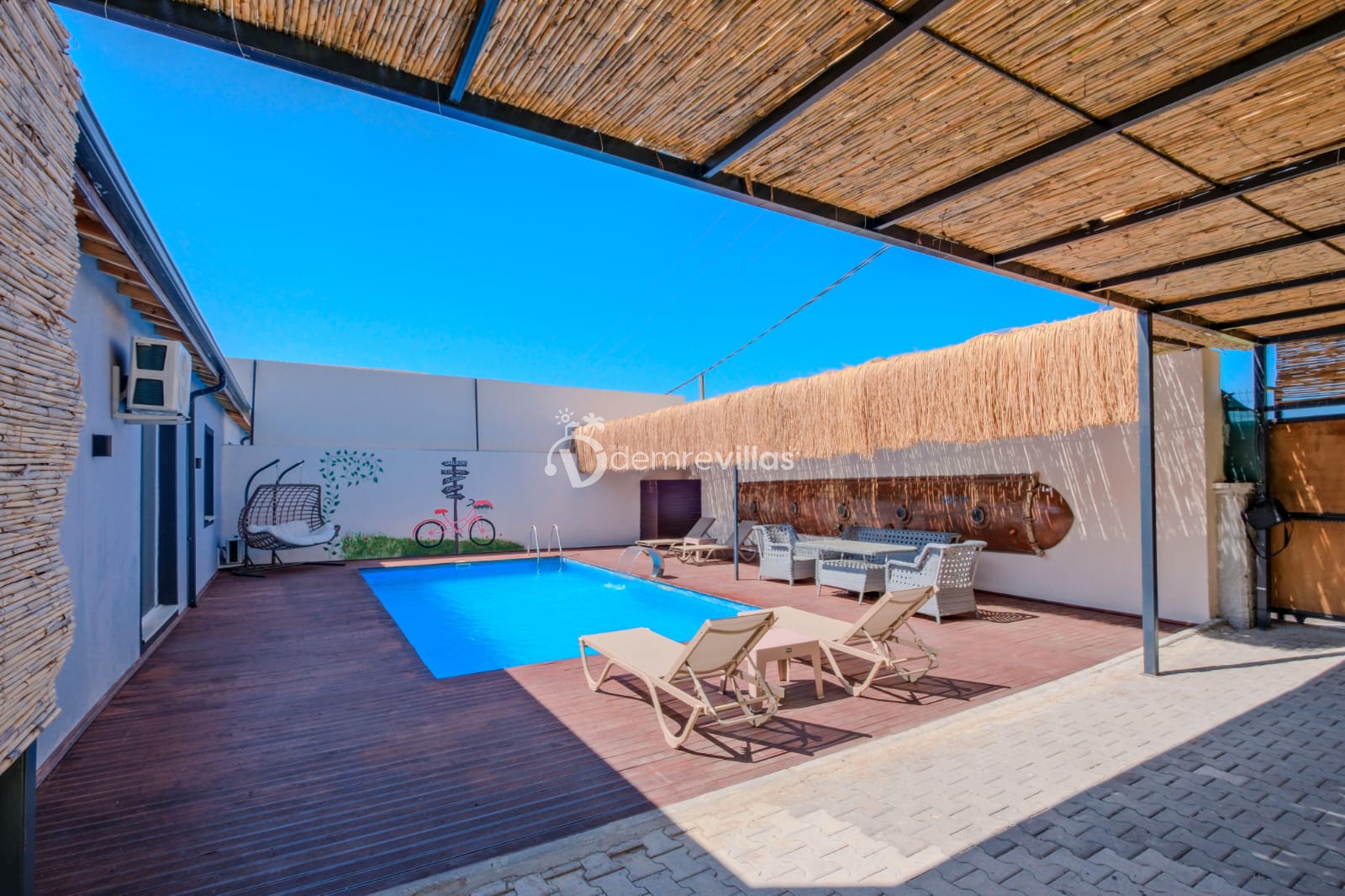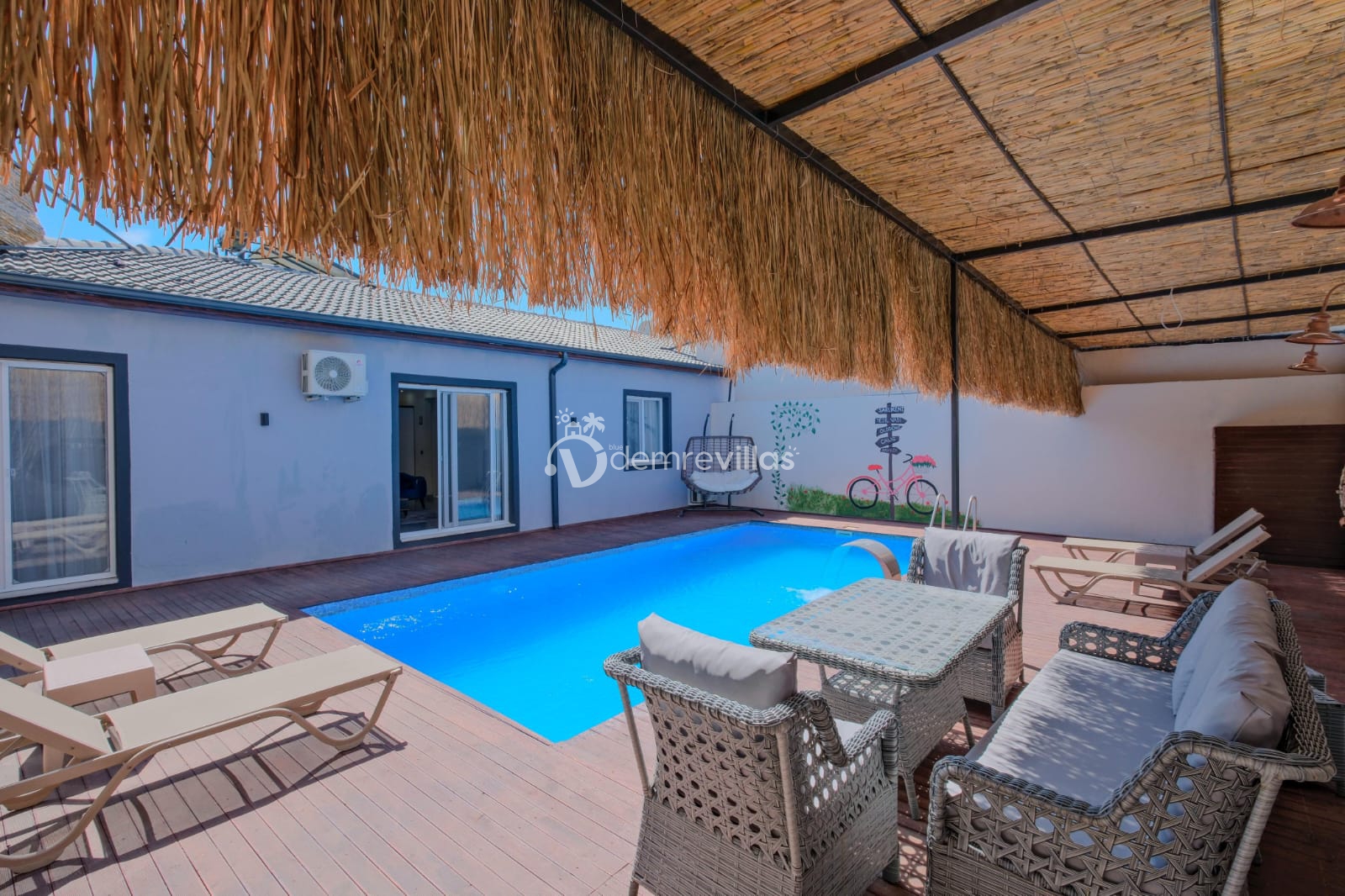 Geniş ve bakımlı bahçesiyle dikkat çeken villamızda, bahçe salıncağında dinlenebilir, doğanın tadını çıkarabilirsiniz. Özel yüzme havuzu sayesinde serinleyip rahatlayabilir, havuz kenarındaki şezlonglarda güneşin keyfini sürebilirsiniz. Küçük misafirlerimiz için özel olarak tasarlanmış çocuk oyun alanı da mevcuttur. Bu alanda çocuklar güvenle ve keyifle vakit geçirebilir.