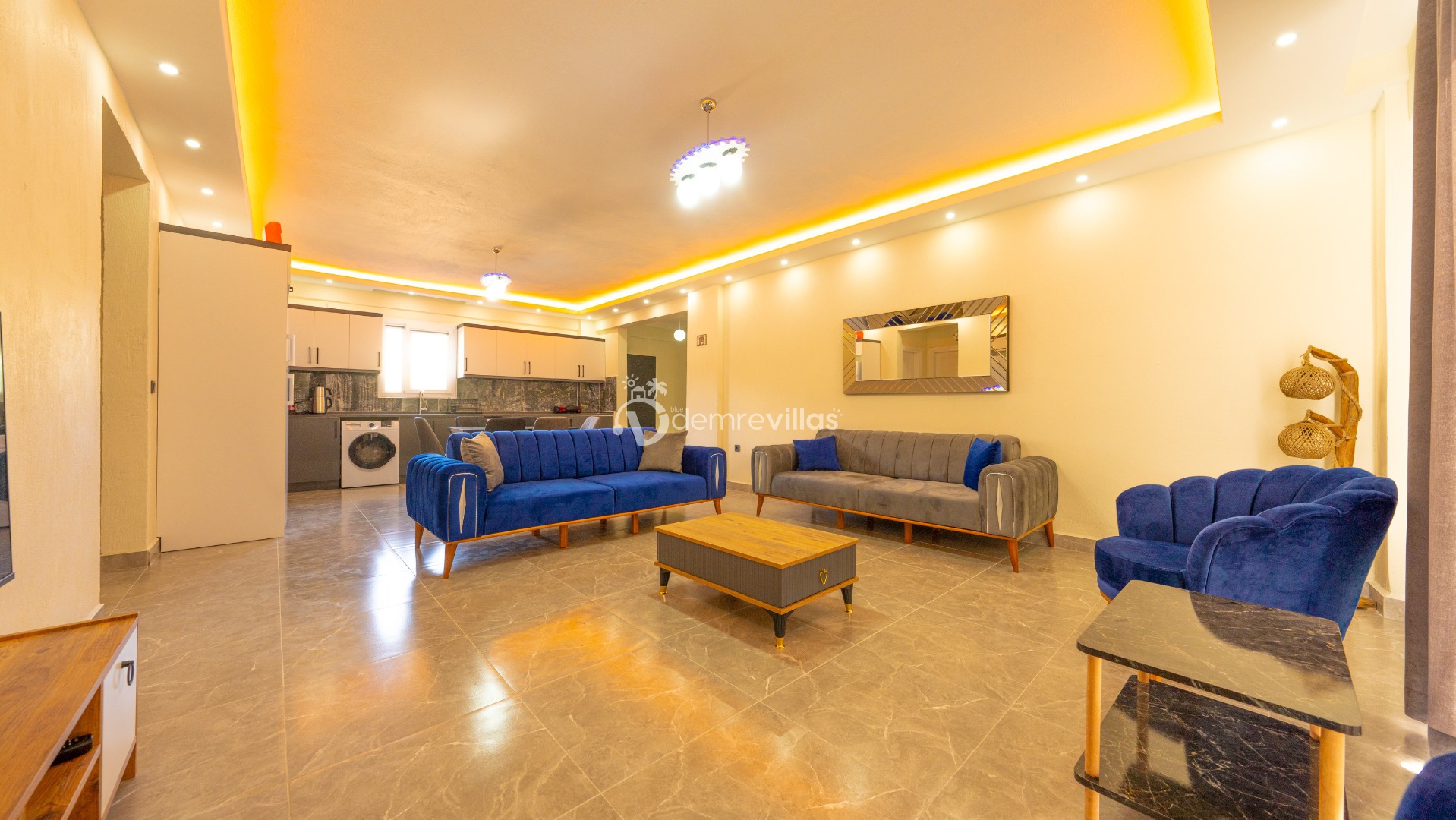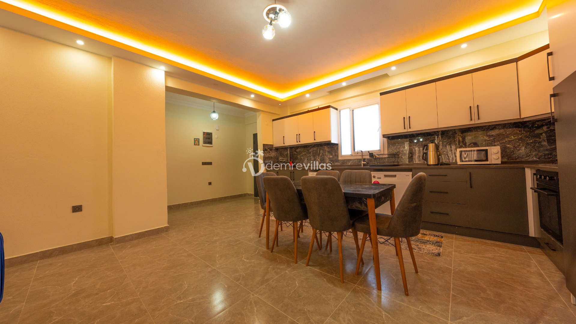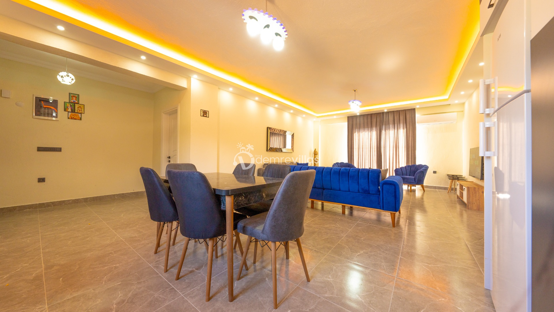 Villamızın salonu oldukça geniş ve ferah olup, misafirlerimize konforlu bir yaşam alanı sunmaktadır. Donanımlı mutfağımızda tost makinesi, su ısıtıcısı, mikrodalga fırın, Türk kahvesi makinesi ve 6 kişilik yemek takımı gibi tüm ihtiyaçlar düşünülerek hazırlanmıştır.