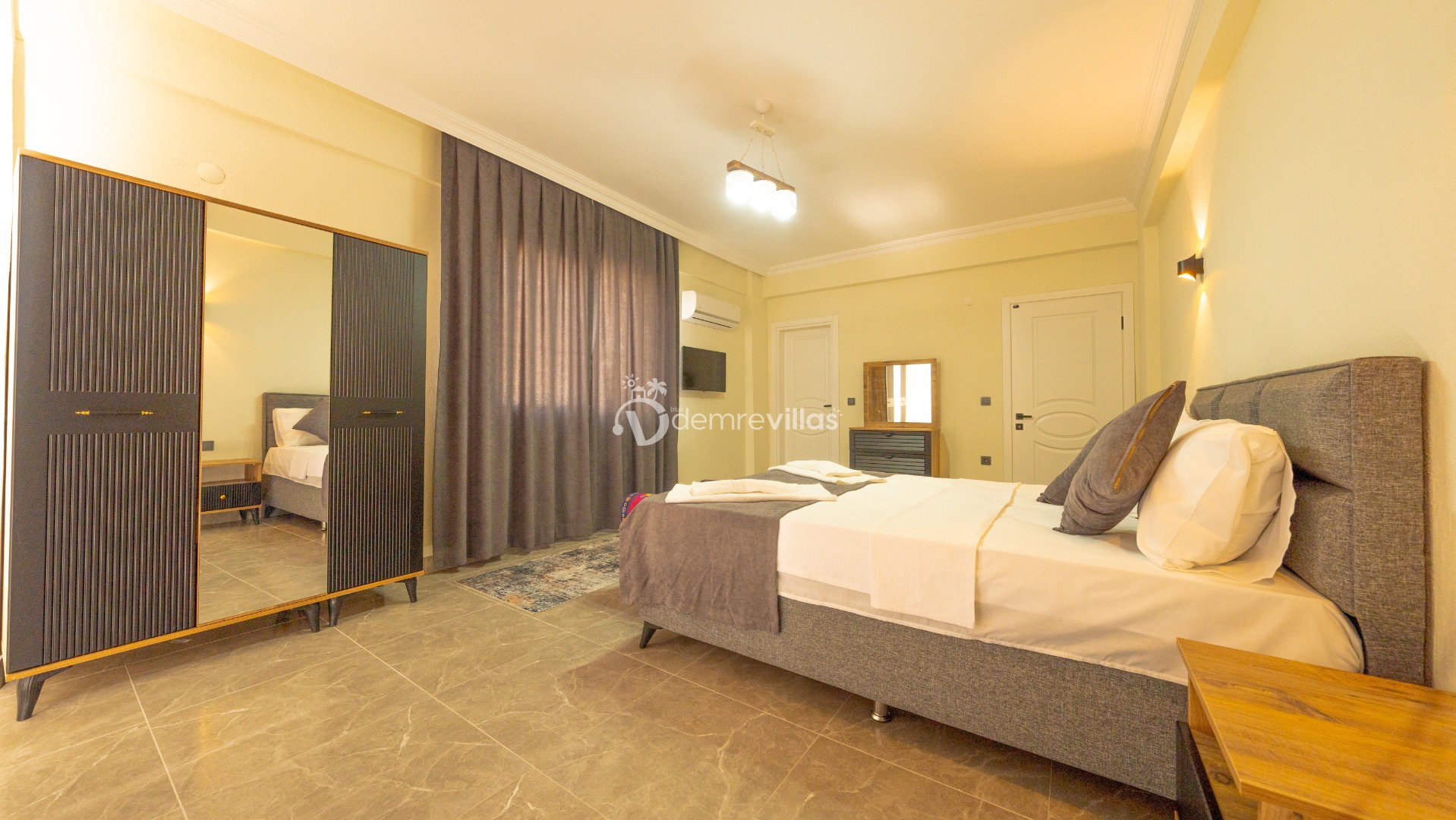 2. Yatak Odası: Çift kişilik yatak, klima, komodin, giysi dolabı. Bu odanın banyosu ortak kullanım alanındadır.