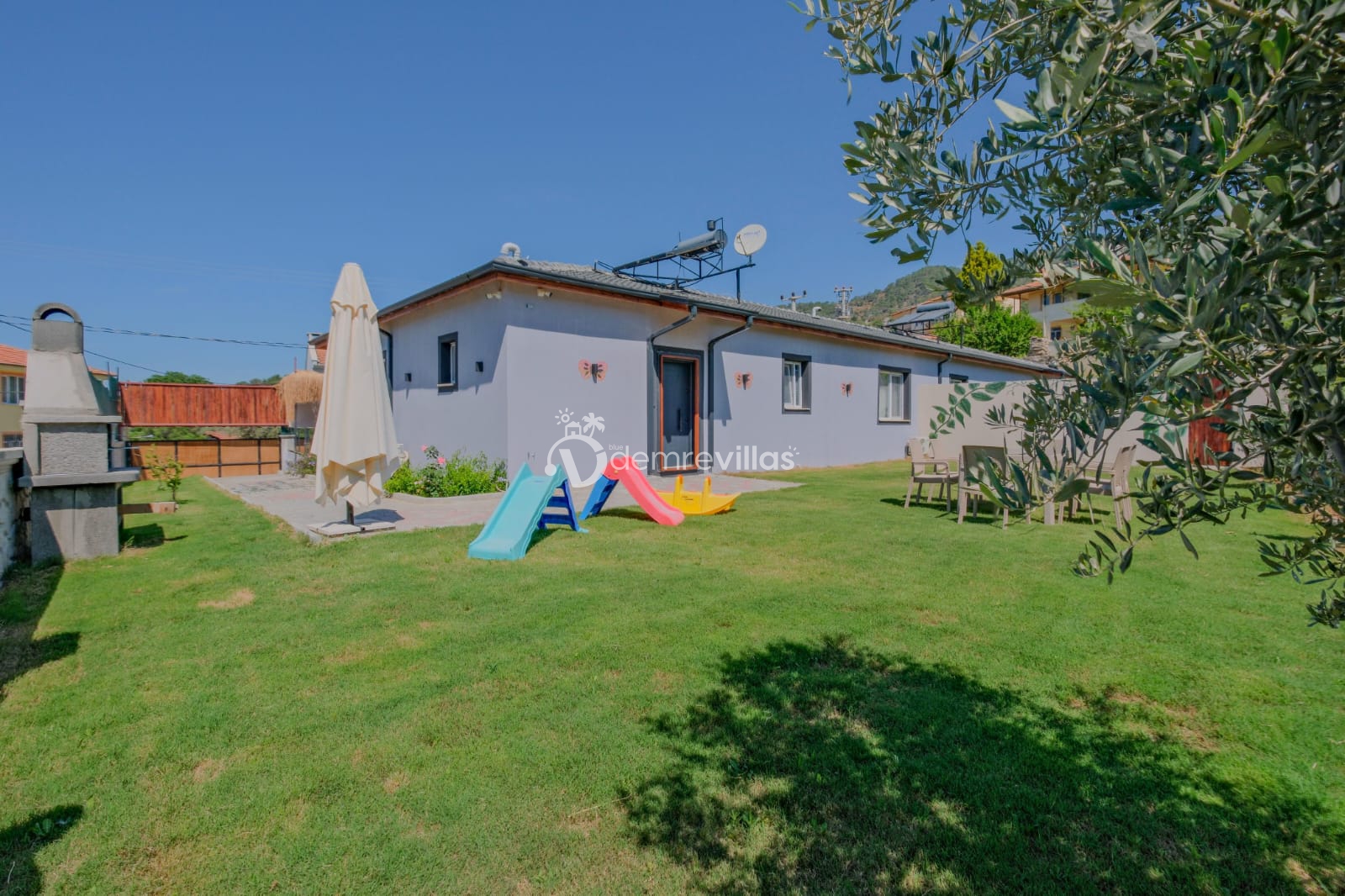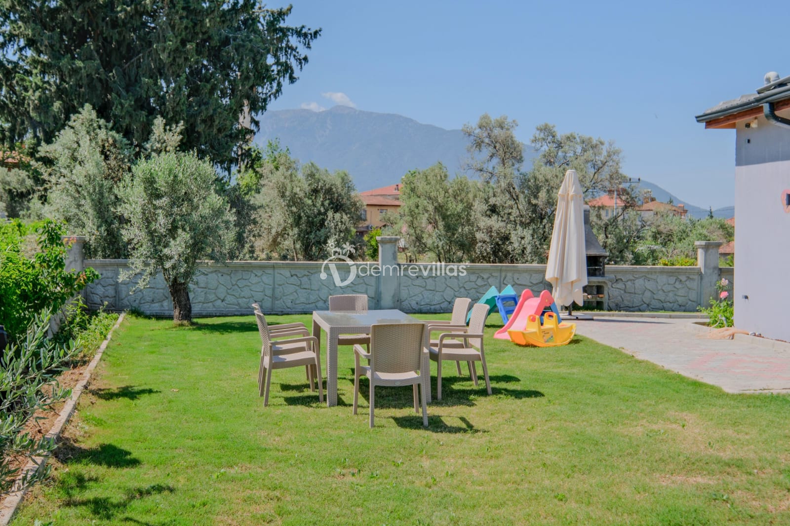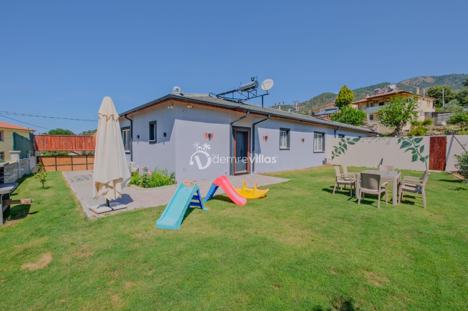 Geniş ve bakımlı bahçesiyle dikkat çeken villamızda, bahçe salıncağında dinlenebilir, doğanın tadını çıkarabilirsiniz. Özel yüzme havuzu sayesinde serinleyip rahatlayabilir, havuz kenarındaki şezlonglarda güneşin keyfini sürebilirsiniz. Küçük misafirlerimiz için özel olarak tasarlanmış çocuk oyun alanı da mevcuttur. Bu alanda çocuklar güvenle ve keyifle vakit geçirebilir.