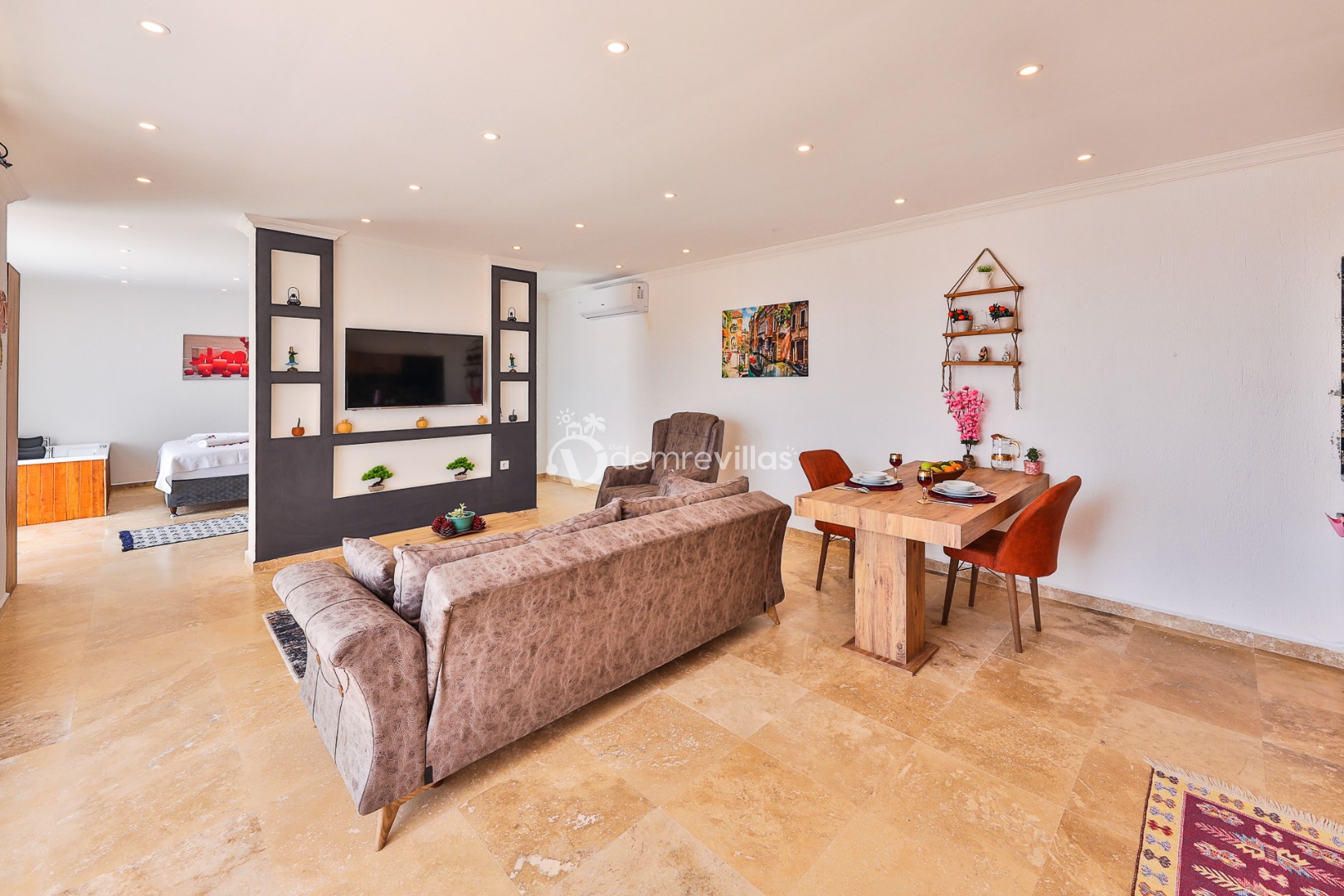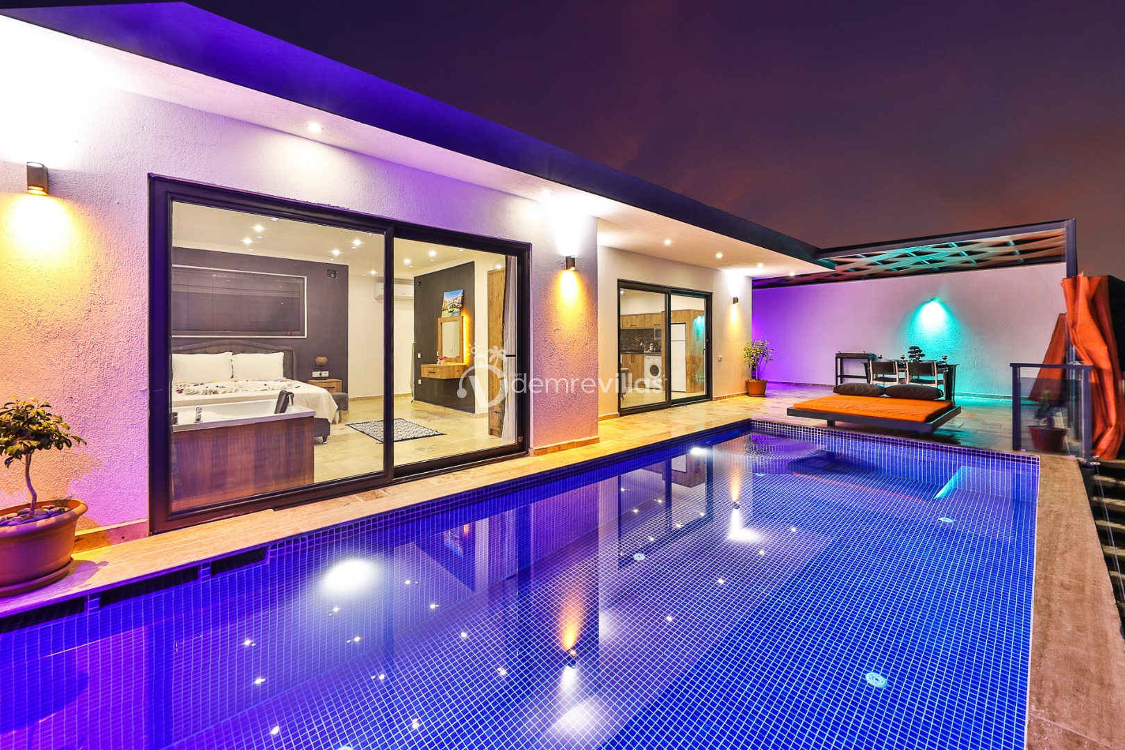 Villamız 2 kişilik konaklama kapasitesine sahiptir. 1 yatak odası,1 yatak ve 1 banyosuyla, misafirlerine geniş ve konforlu bir yaşam alanı sunar. Modern ve şık bir dekorasyonla donatılmış olan bu villa, tatiliniz boyunca evinizin rahatlığını aratmayacak.