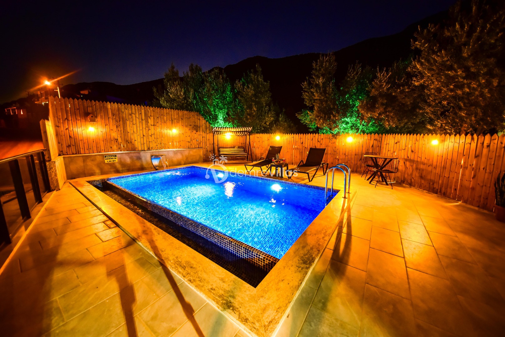 Antalya Kaş Belenli mevkiinde yer alan 1 yatak odalı 2 kişilik konaklama kapasitesine sahip tatil villamızdır. Villamızda balayı çiftleri için güzel bir tatil keyfi çıkarma şansını sağlayabilmek adına her türlü imkan düşünülmüştür. Geniş havuz alanı ile serinlerken, doğa manzarası ve kuş sesleri ile şehrin gürültüsünden uzak keyifli bir tatil imkanı sunmaktadır.