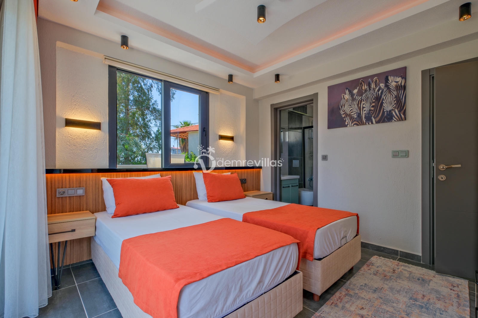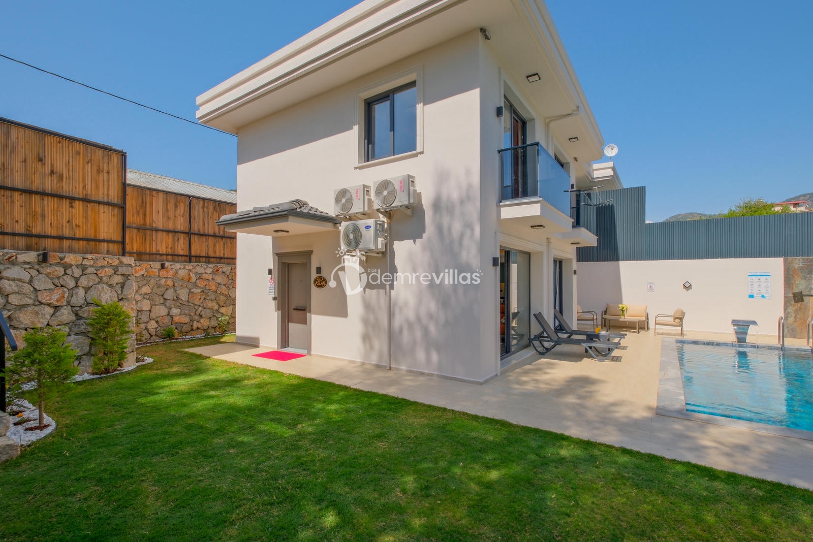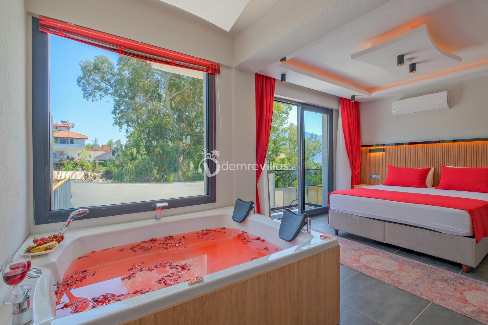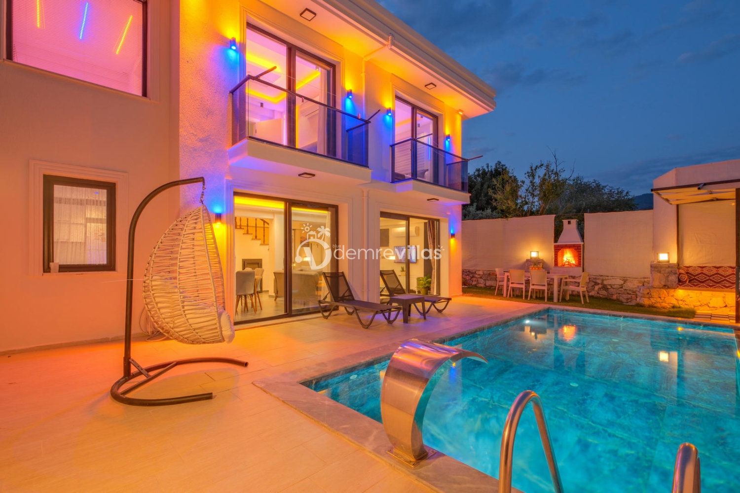 Villamızın özel havuzunda doyasıya yüzebilir ve güneşin keyfini çıkarabilirsiniz. Bahçe alanında kapasiteye uygun şezlong takımı, oturma grubu ve barbekü bulunmaktadır. Havuz terasına açılan konforlu oturma odası ve tam donanımlı açık mutfak, tatilinizi daha da keyifli hale getirecek. Villamızın birinci yatak odasında çift kişilik yatak, ebeveyn banyosu ve jakuzi; ikinci yatak odasında ise iki adet tek kişilik yatak ve banyo yer almaktadır.