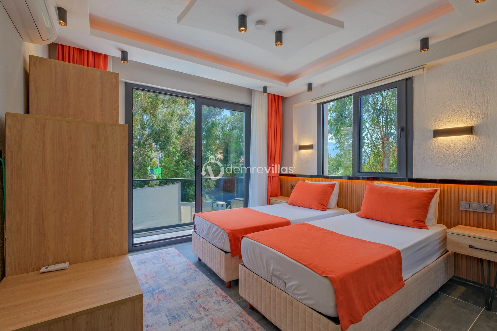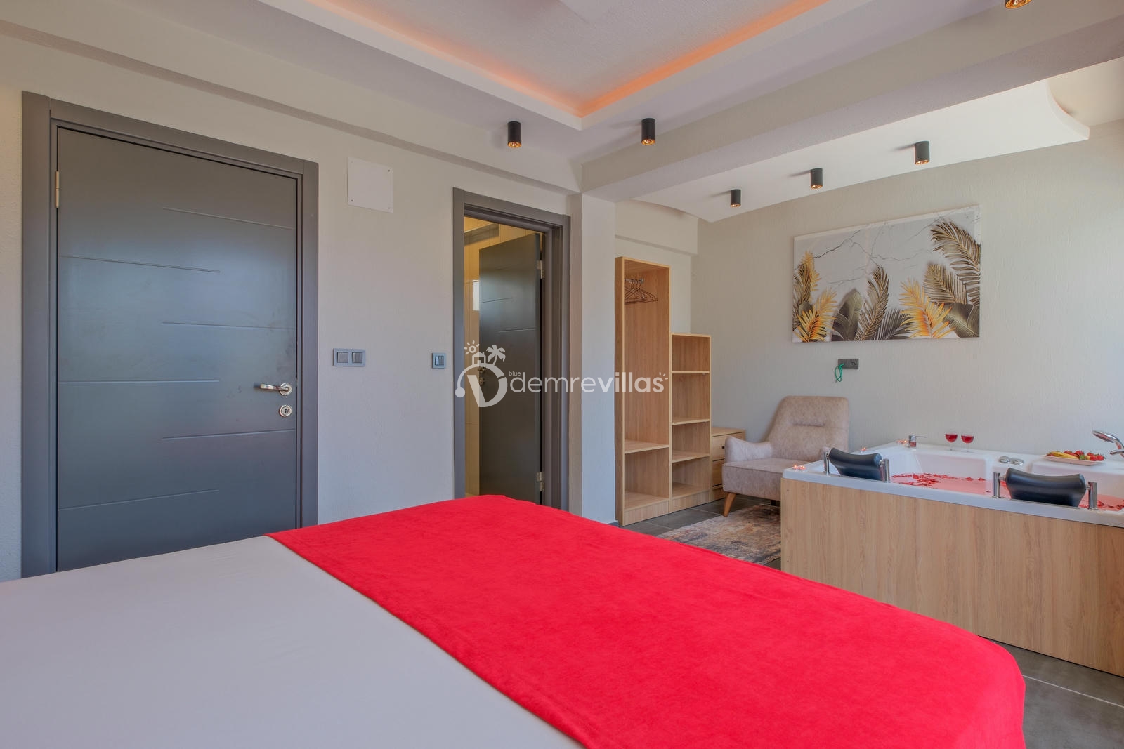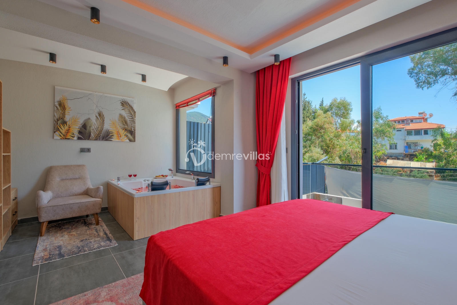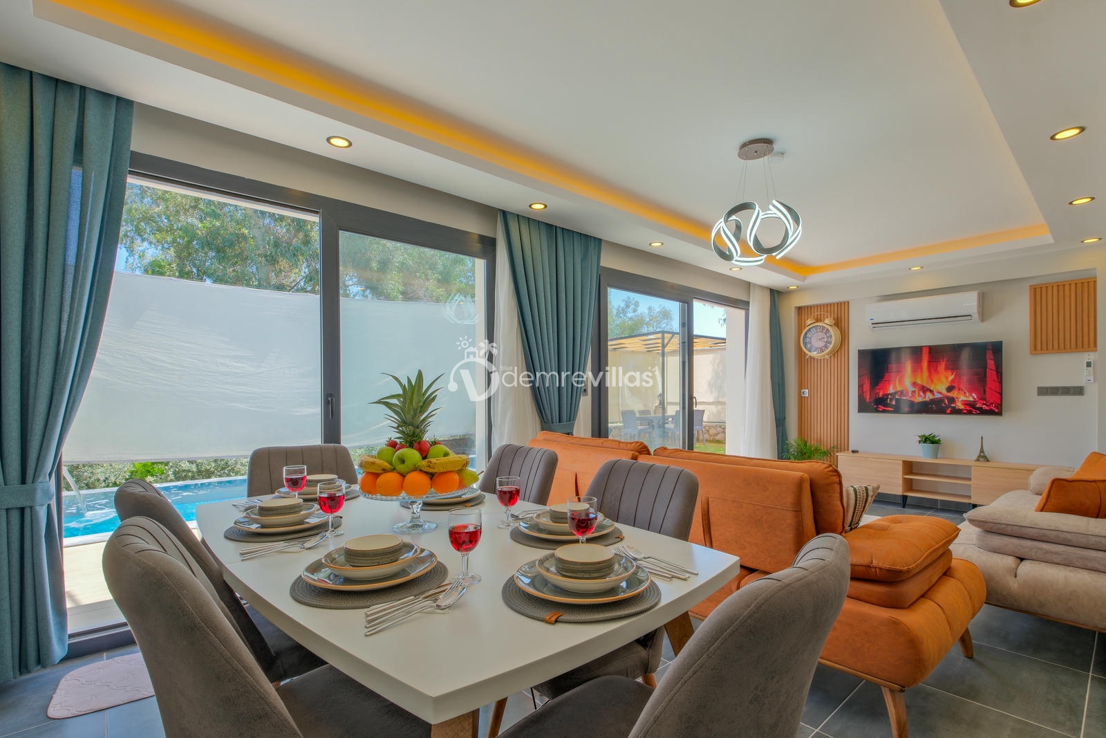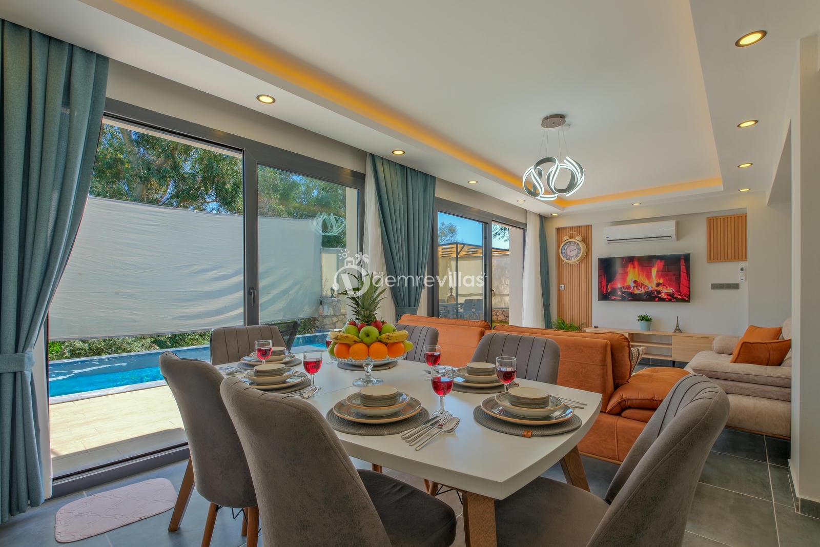 Villamızın özel havuzunda doyasıya yüzebilir ve güneşin keyfini çıkarabilirsiniz. Bahçe alanında kapasiteye uygun şezlong takımı, oturma grubu ve barbekü bulunmaktadır. Havuz terasına açılan konforlu oturma odası ve tam donanımlı açık mutfak, tatilinizi daha da keyifli hale getirecek. Villamızın birinci yatak odasında çift kişilik yatak, ebeveyn banyosu ve jakuzi; ikinci yatak odasında ise iki adet tek kişilik yatak ve banyo yer almaktadır.