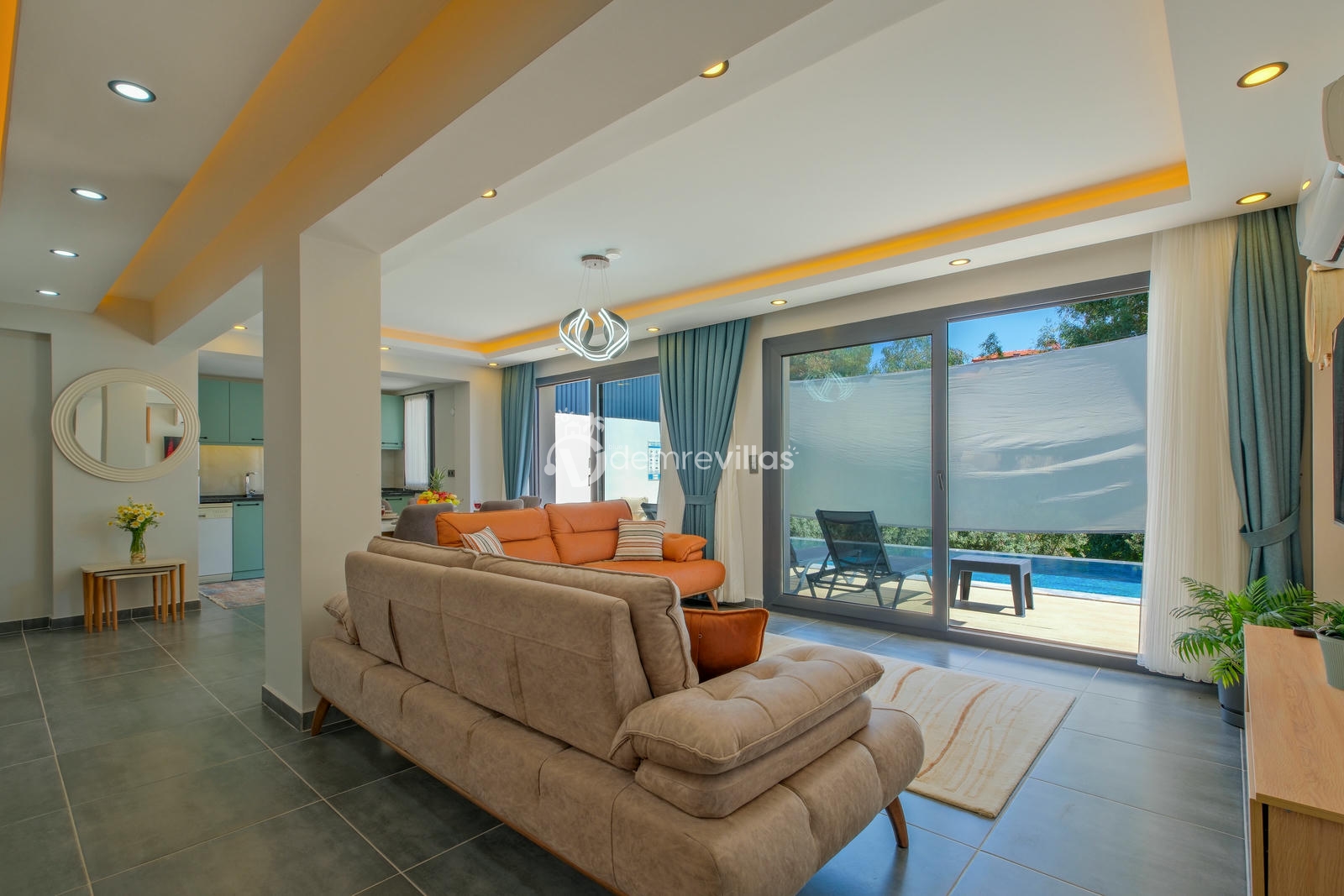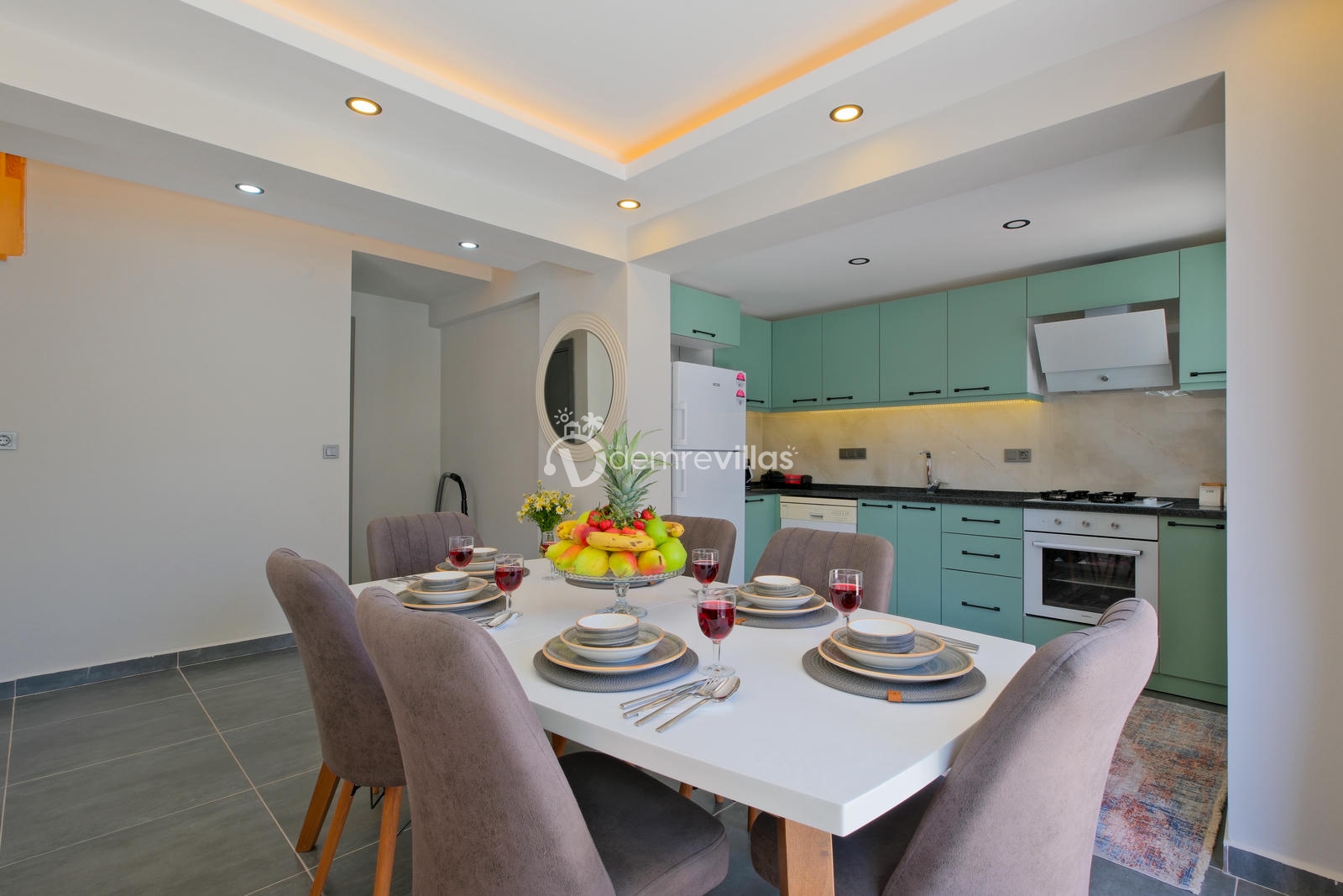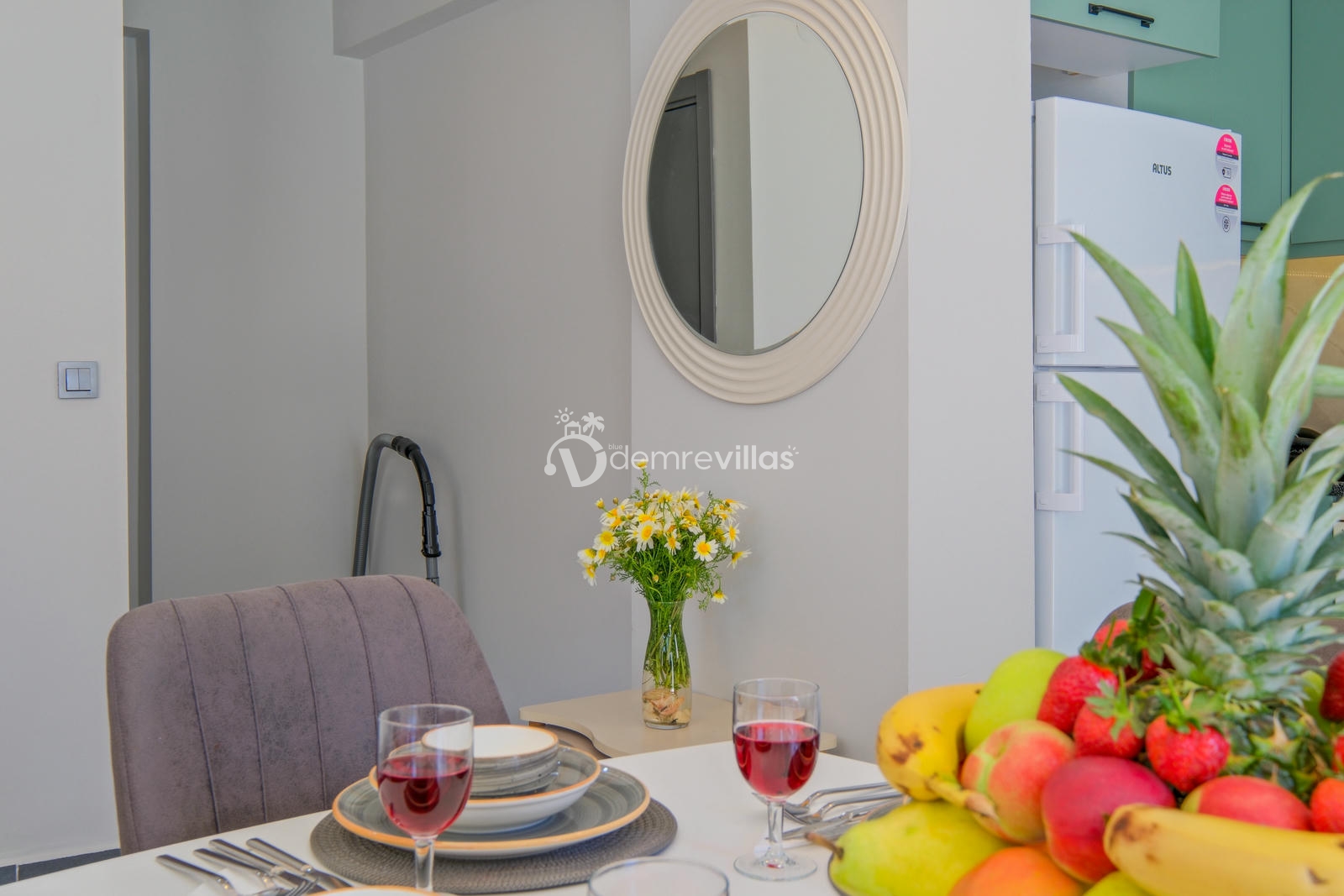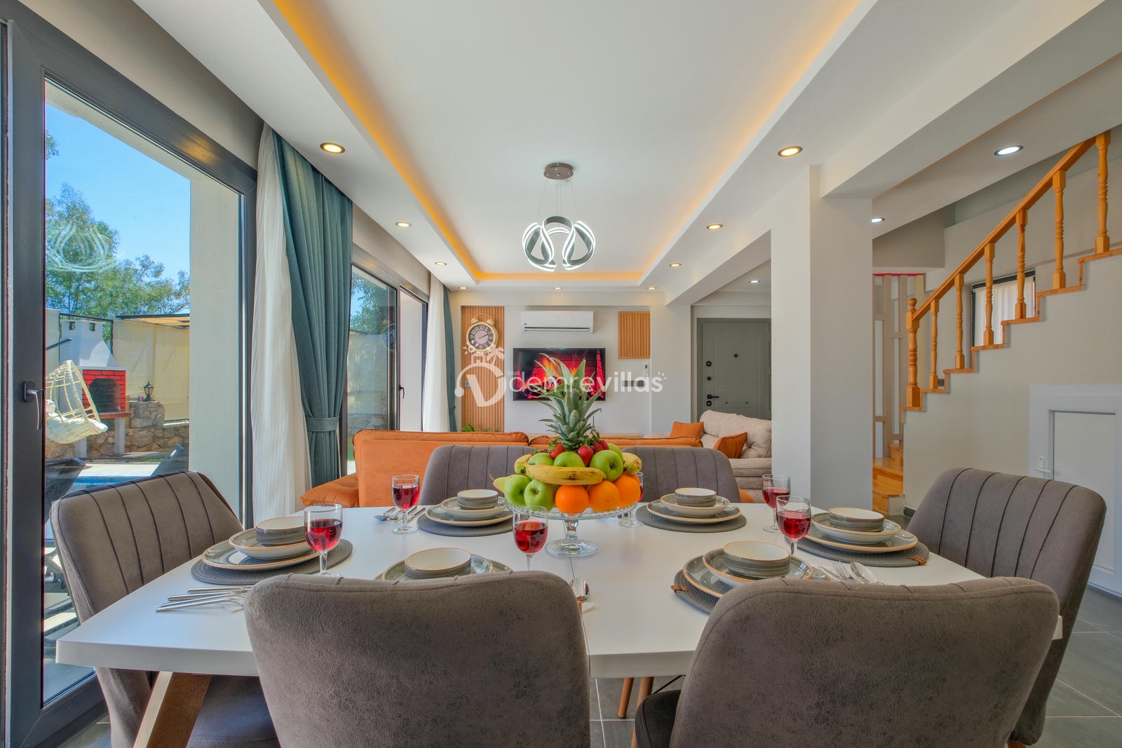 Fethiye Eldirek mevkiinde yer alan villa, sizlere huzurlu bir konaklama deneyimi sunuyor. 2 yatak odasıyla 4 kişilik konaklama kapasitesine sahip olan villamız, balayı çiftleri ve çekirdek aileler için ideal bir tercihtir. Ferah iç mekanları ve zarif tasarımı ile göz dolduran villa, doğa manzarasına hakimdir.