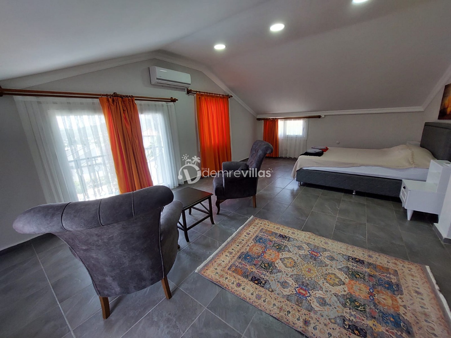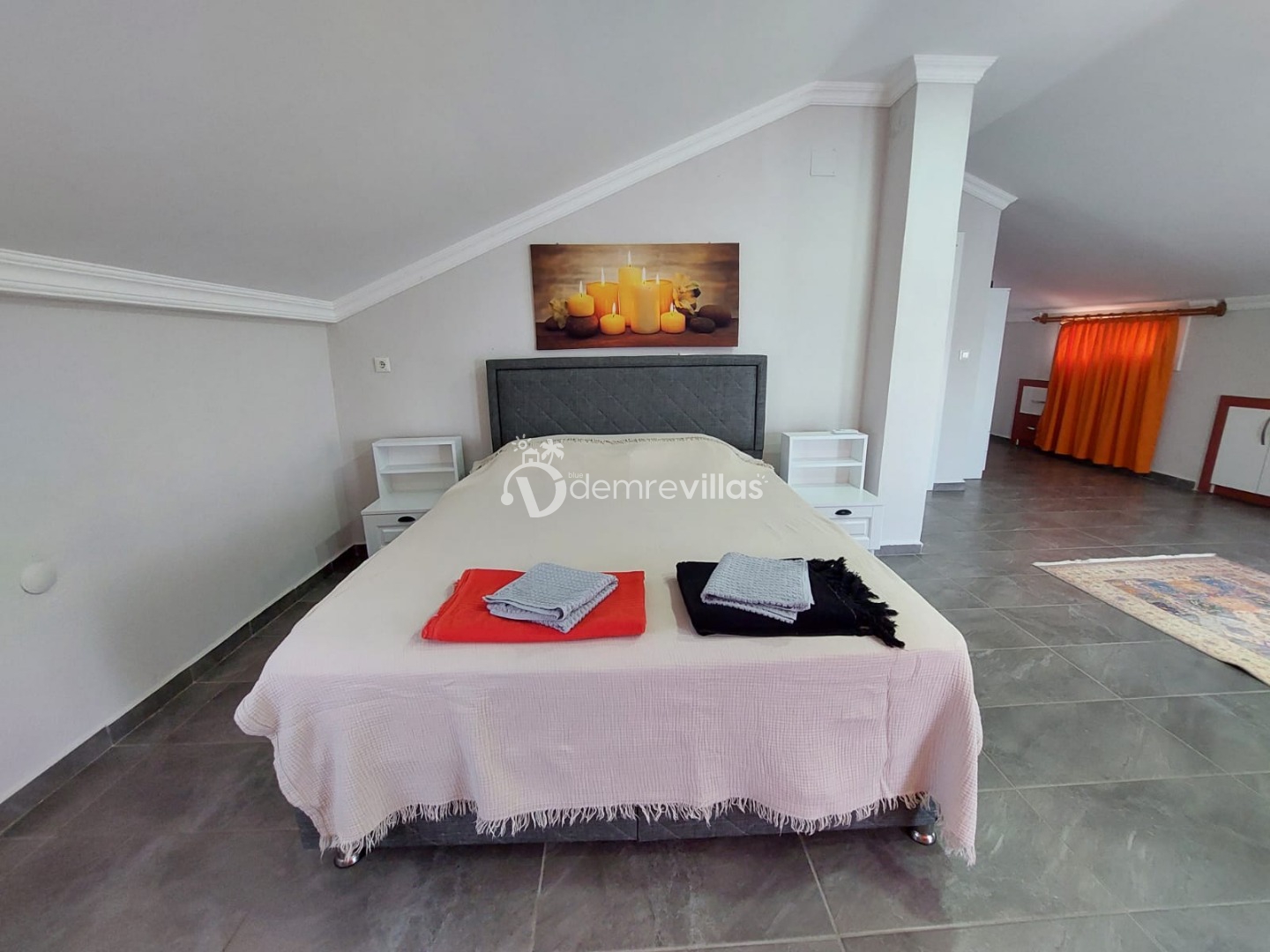 Villamız 3 katlıdır. Giriş katında salon- mutfak, WC-Duş, klima ve TV mevcuttur. İkinci kata çıktığımızda üç yatak odası bulunmaktadır. Birinci yatak odası içerisinde bir çift kişilik yatak ebeveyn banyosu ve klima; İkinci yatak odasında bir çift kişilik yatak; Üçüncü yatak odası içerisinde iki tek kişilik yatak ve klima mevcuttur. Ayrıca bu katta ortak kullanım WC-Duş da bulunmaktadır. Üçüncü kata çıktığımızda dördüncü yatak odası bulunmaktadır. Bu oda içerisinde bir çift kişilik yatak, ebeveyn banyosu ve klima mevcuttur. Böylelikle villamızda 8 kişi rahatlıkla konaklama kapasitesine sahiptir.