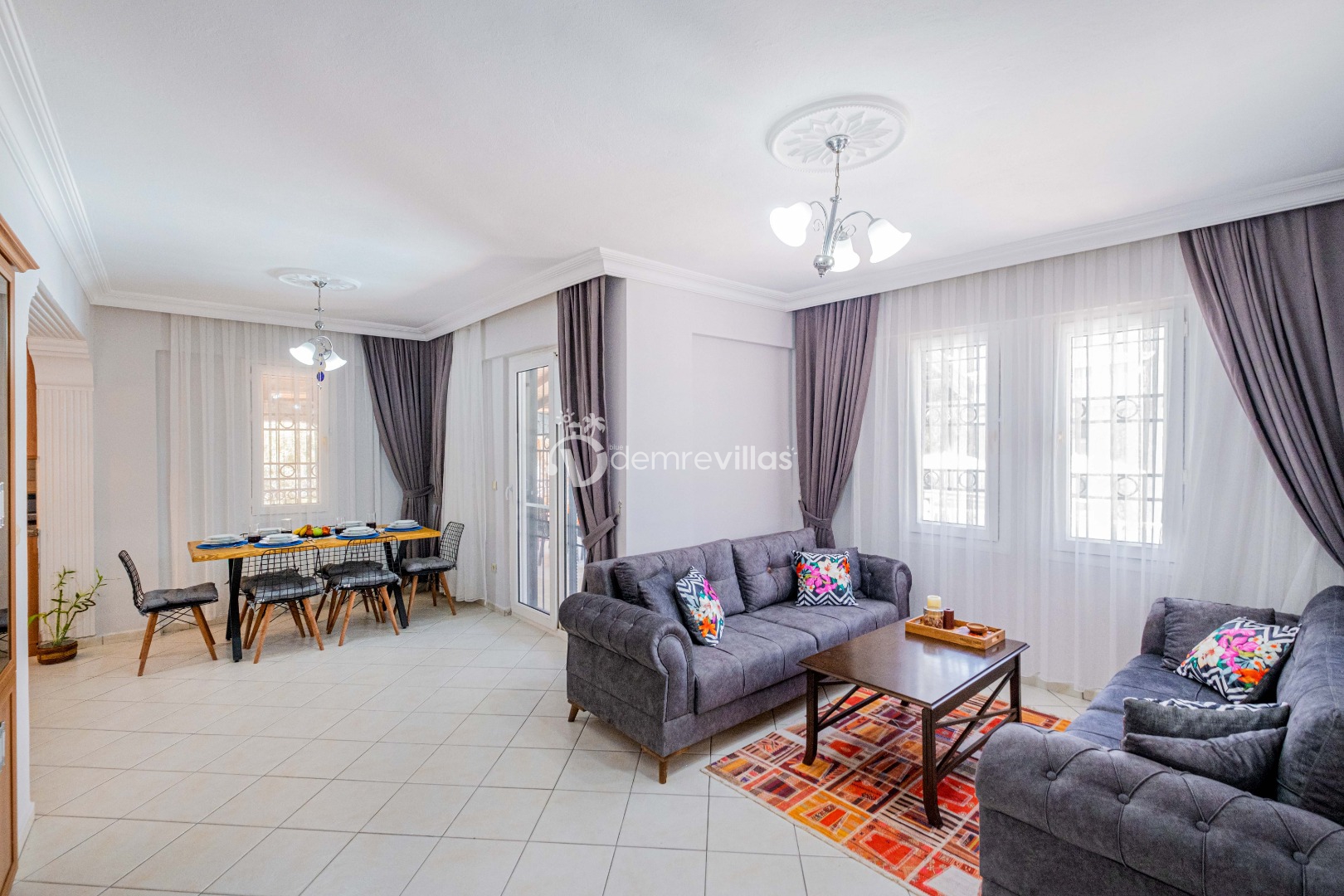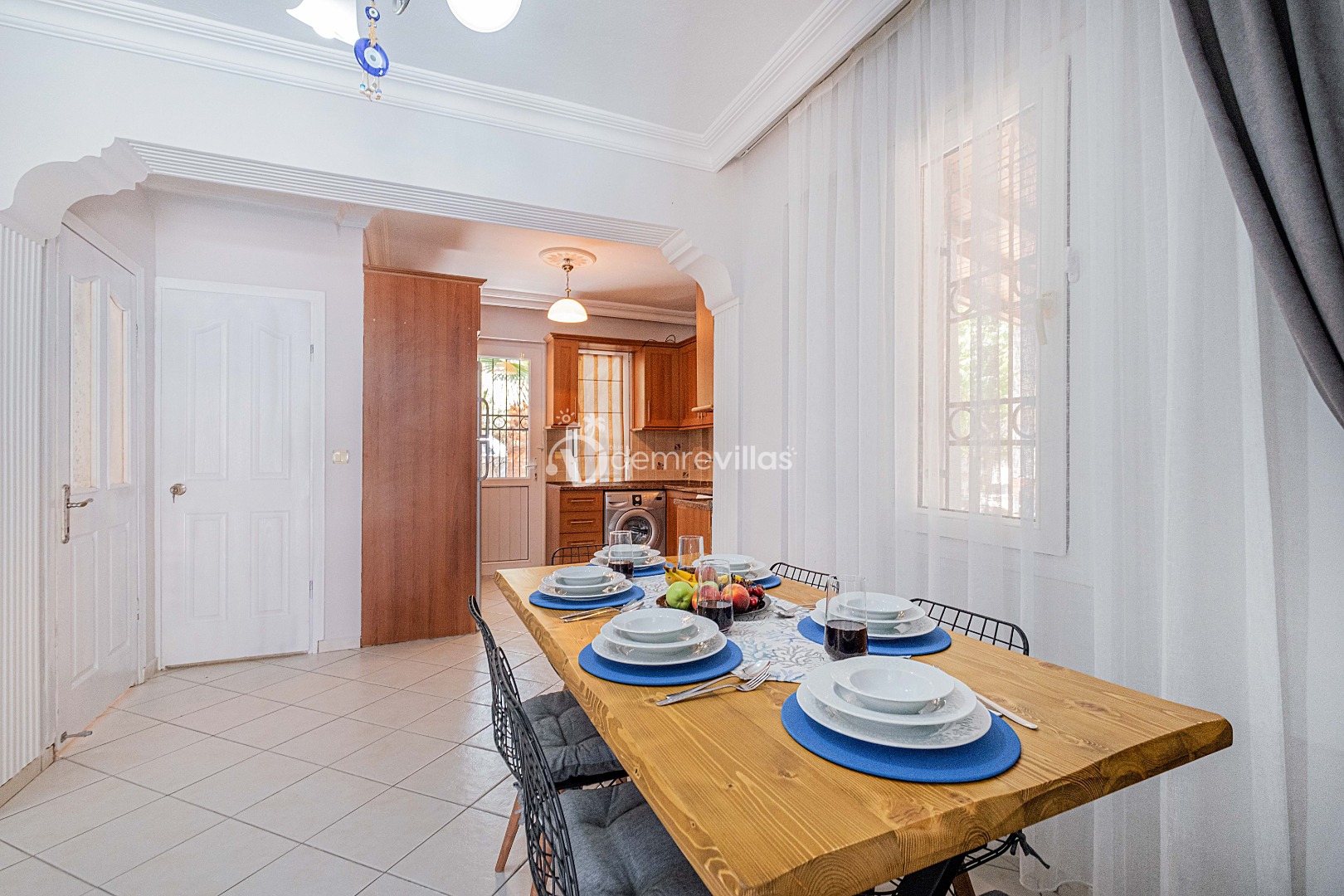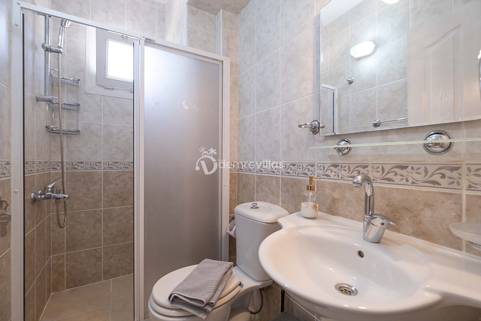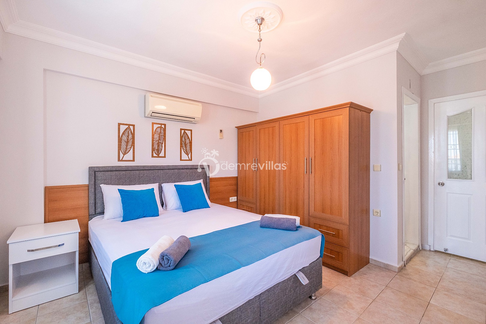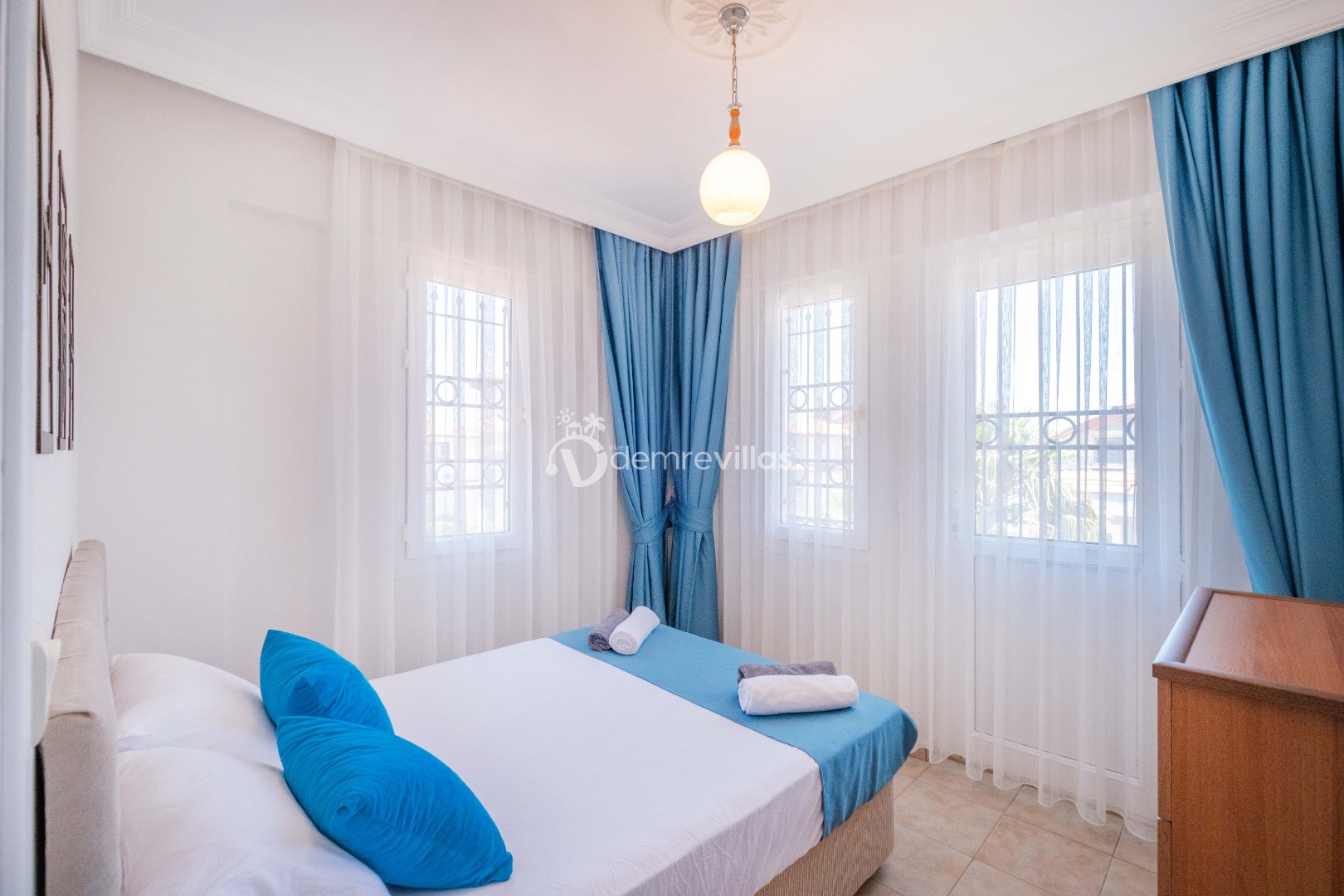 Villamız 3 katlıdır. Giriş katında salon- mutfak, WC-Duş, klima ve TV mevcuttur. İkinci kata çıktığımızda üç yatak odası bulunmaktadır. Birinci yatak odası içerisinde bir çift kişilik yatak ebeveyn banyosu ve klima; İkinci yatak odasında bir çift kişilik yatak; Üçüncü yatak odası içerisinde iki tek kişilik yatak ve klima mevcuttur. Ayrıca bu katta ortak kullanım WC-Duş da bulunmaktadır. Üçüncü kata çıktığımızda dördüncü yatak odası bulunmaktadır. Bu oda içerisinde bir çift kişilik yatak, ebeveyn banyosu ve klima mevcuttur. Böylelikle villamızda 8 kişi rahatlıkla konaklama kapasitesine sahiptir.