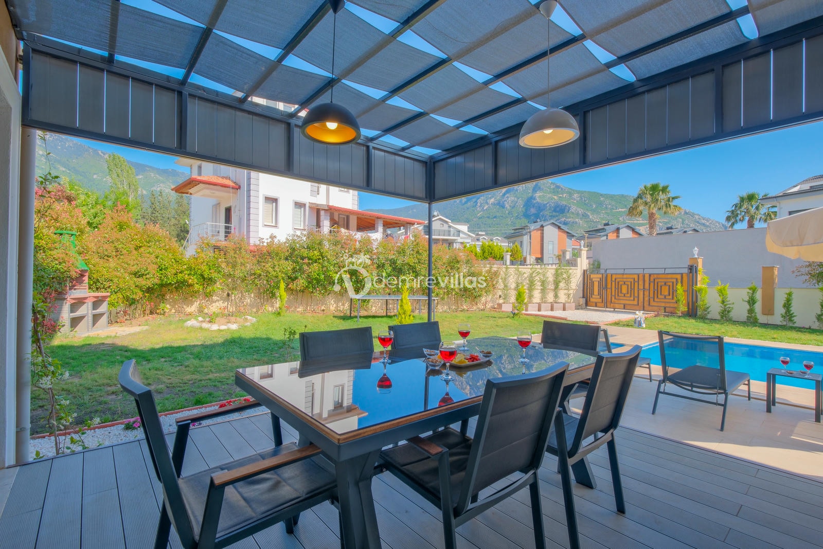 Fethiye Hisörönü mevkiinde yer alan villa, sizlere huzurlu bir konaklama deneyimi sunuyor. 3 yatak odasıyla 6 kişilik konaklama kapasitesine sahip olan villamız, geniş aileler için ideal bir tercihtir. Ferah iç mekanları ve zarif tasarımı ile göz dolduran villa, doğa manzarasına hakimdir.